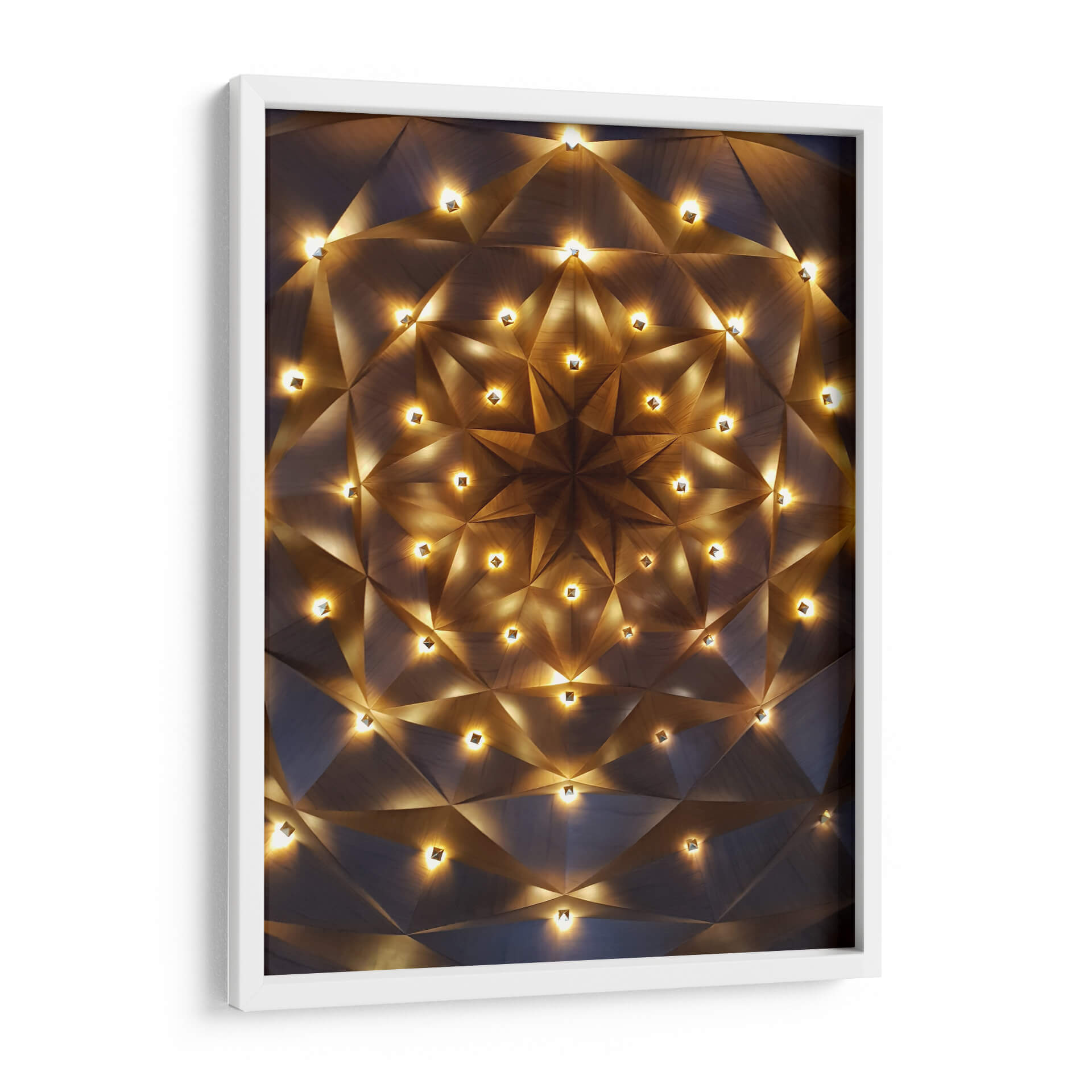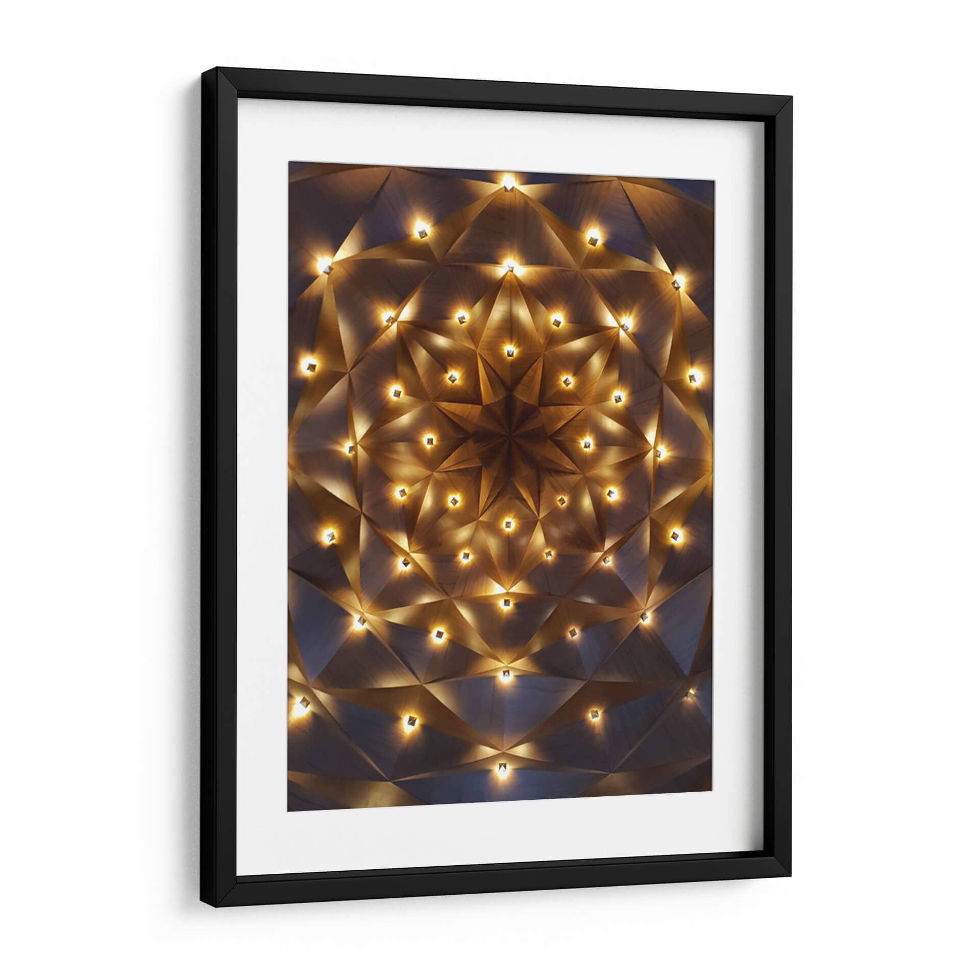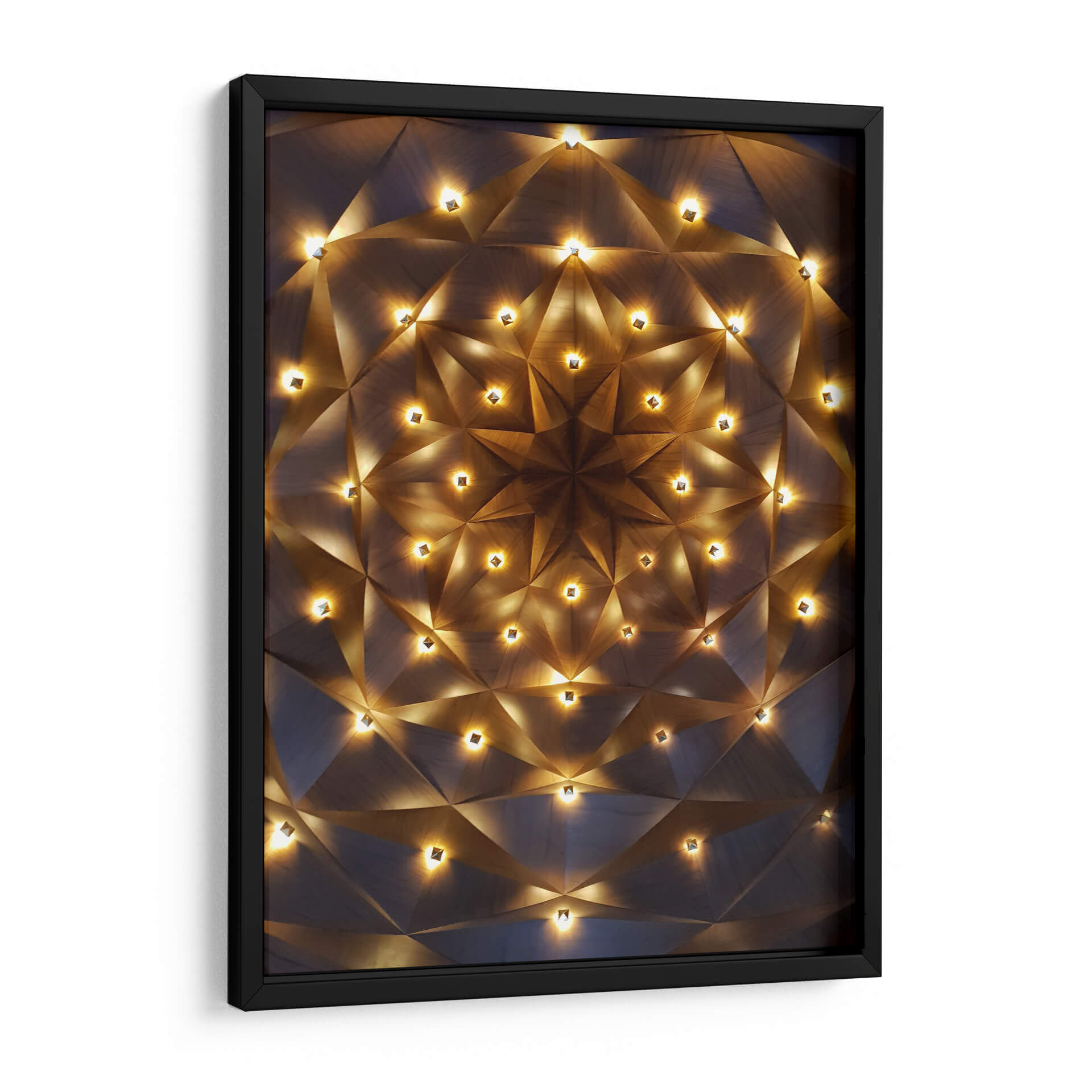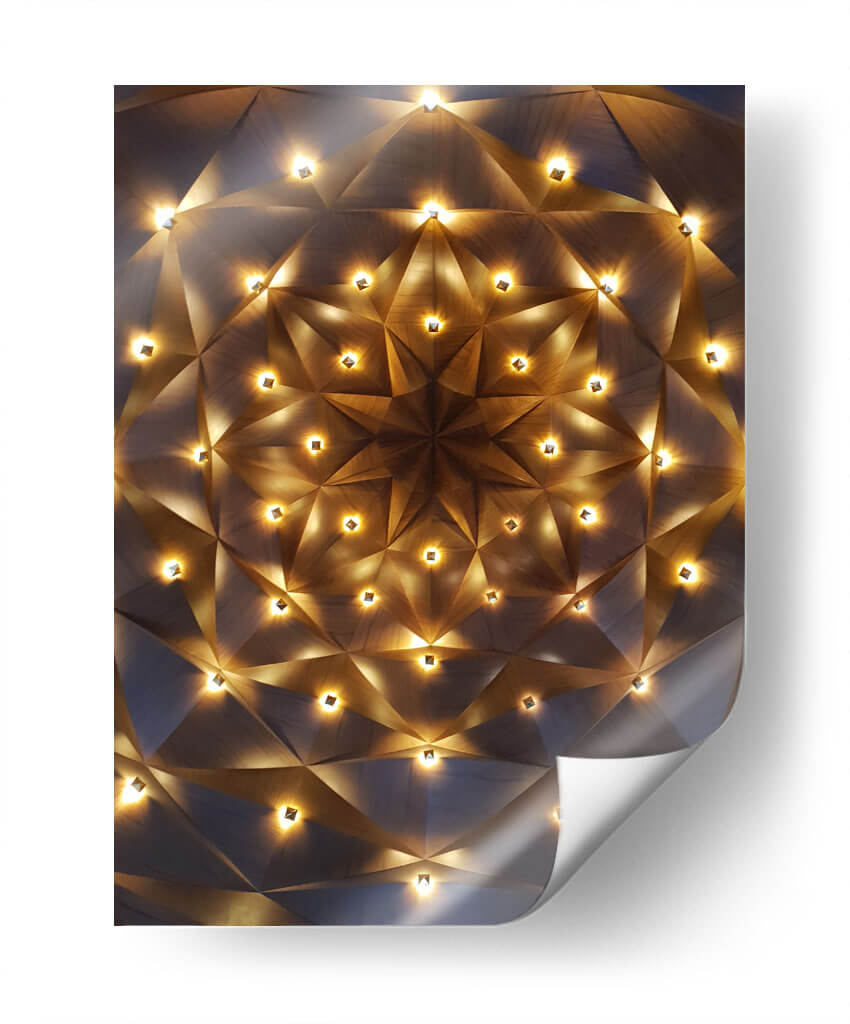 Sumérgete en la maravilla cósmica con "Techo Estelar", un cuadro decorativo que captura la esencia de un firmamento iluminado. Esta obra de arte abstracta presenta un diseño geométrico intrincado, reminiscent a un patrón fractal o una estructura arquitectónica futurista, salpicada de luces cálidas que emanan un brillo etéreo. Los tonos tierra y los contrastes de luz y sombra crean una atmósfera de misterio y sofisticación. Ideal para aquellos que buscan una pieza que combine la precisión geométrica con una iluminación ambiental cautivadora, este cuadro decorativo es perfecto para añadir un toque de elegancia moderna a tu sala de estar, estudio u oficina. Su diseño hipnótico te invitará a contemplar las profundidades del universo y la belleza de la geometría. Transforma tu espacio en un santuario de luz y forma con esta pieza única que promete ser un punto focal de conversación y admiración. Añade una dimensión celestial a tu decoración interior.