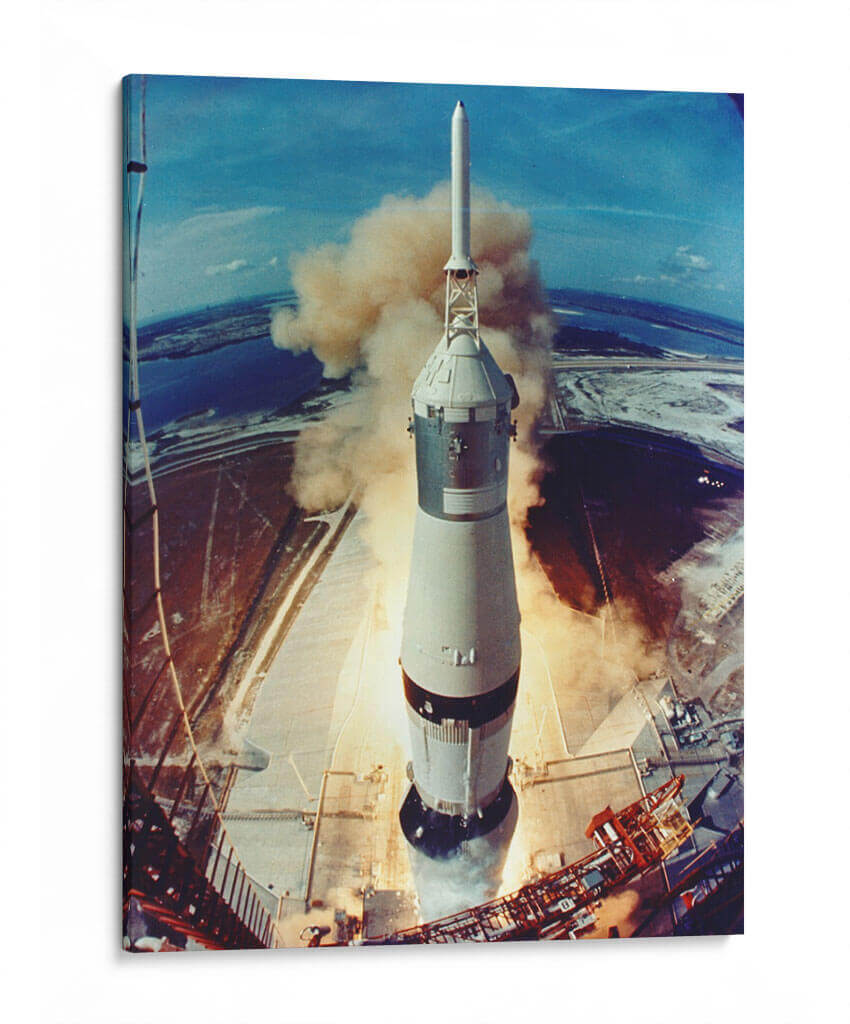 Captura la majestuosidad de la exploración espacial con este impactante cuadro decorativo 'Apollo 11'. La obra representa el icónico despegue de un cohete, una imagen que evoca determinación, progreso y el espíritu humano de conquista. Observa la potencia cruda del lanzamiento, el inmenso penacho de humo que asciende hacia el cielo azul claro, y la detallada ingeniería del vehículo espacial. La paleta de colores, dominada por tonos fríos del cielo y la tierra contrastando con el blanco y gris del cohete y el cálido ámbar del humo, crea una atmósfera de tensión y asombro. Este cuadro decorativo es perfecto para inspirar y añadir un toque de audacia a cualquier espacio, ya sea una oficina moderna, un estudio o una sala de estar. Su composición dinámica y su tema histórico lo convierten en una pieza de conversación fascinante, ideal para aquellos que admiran la ciencia, la tecnología y los grandes hitos de la humanidad. Transforma tu hogar o lugar de trabajo con esta poderosa representación de un momento decisivo en la historia.