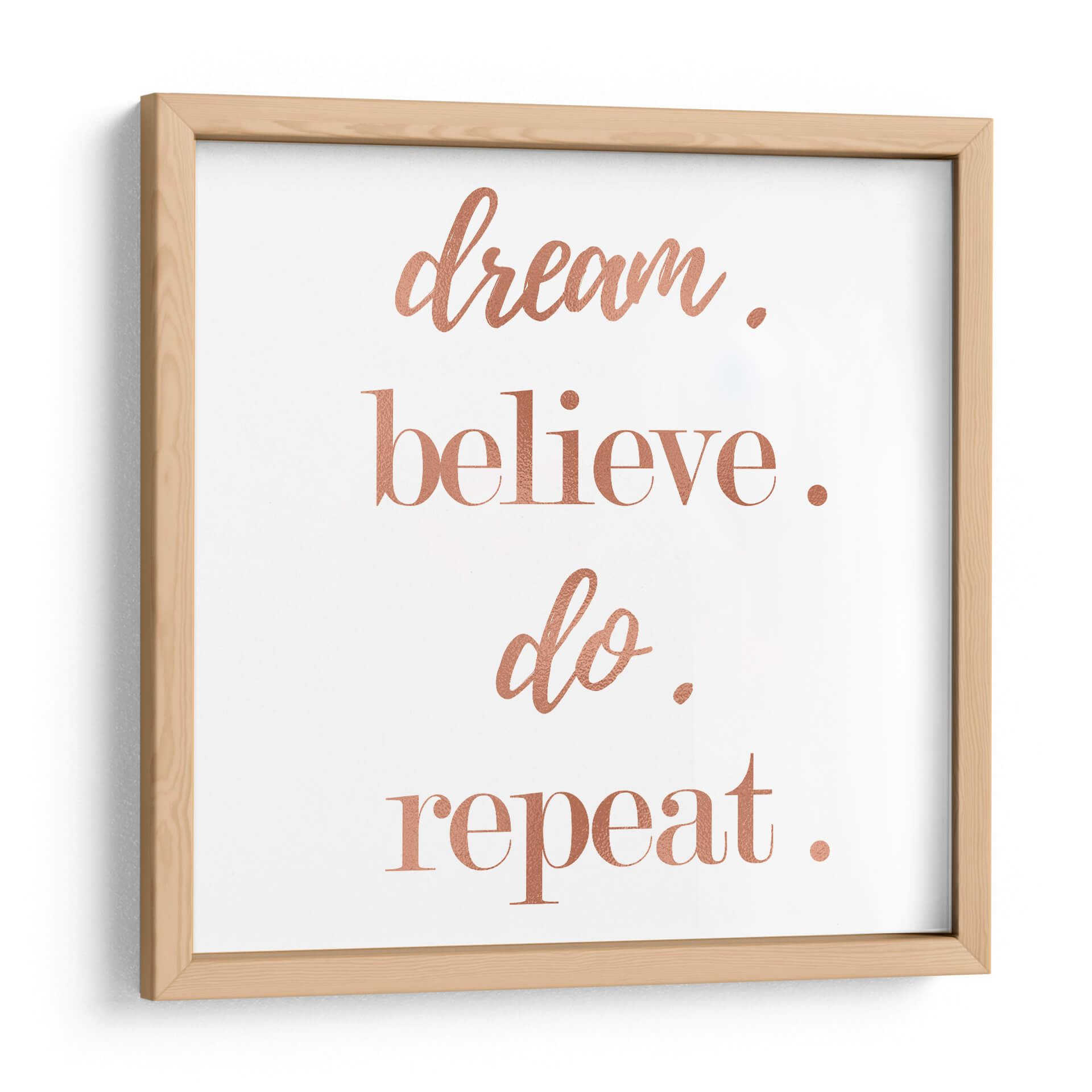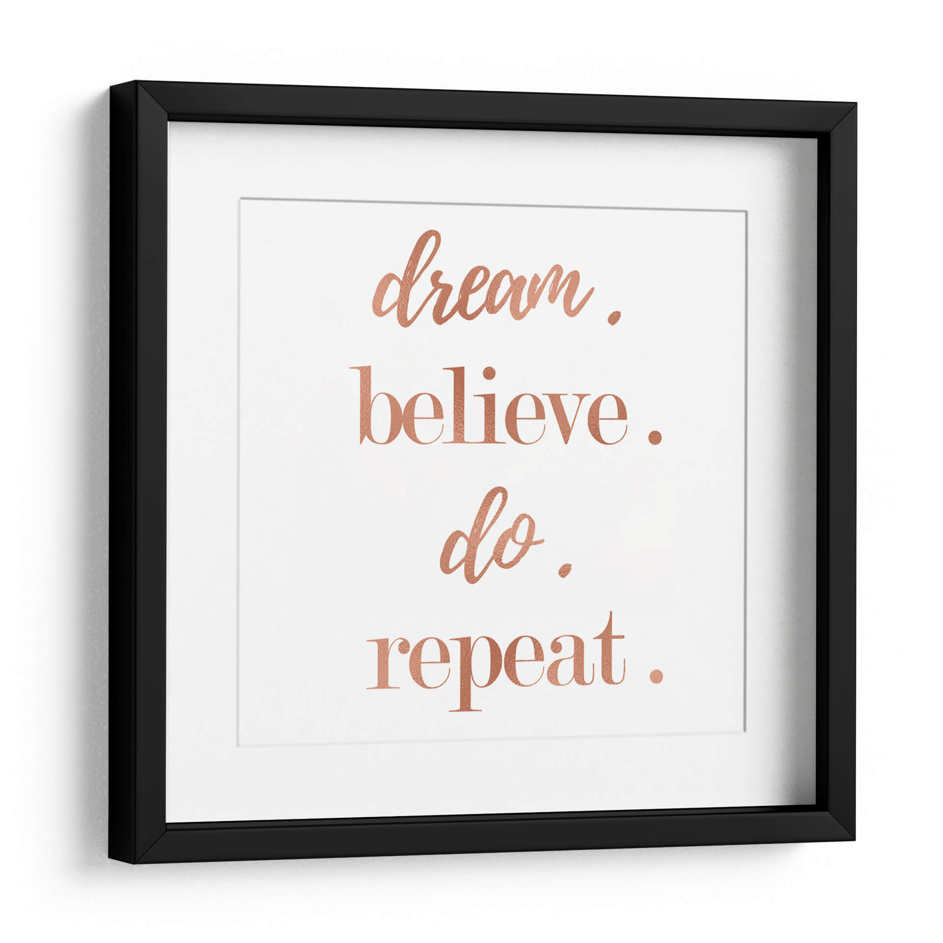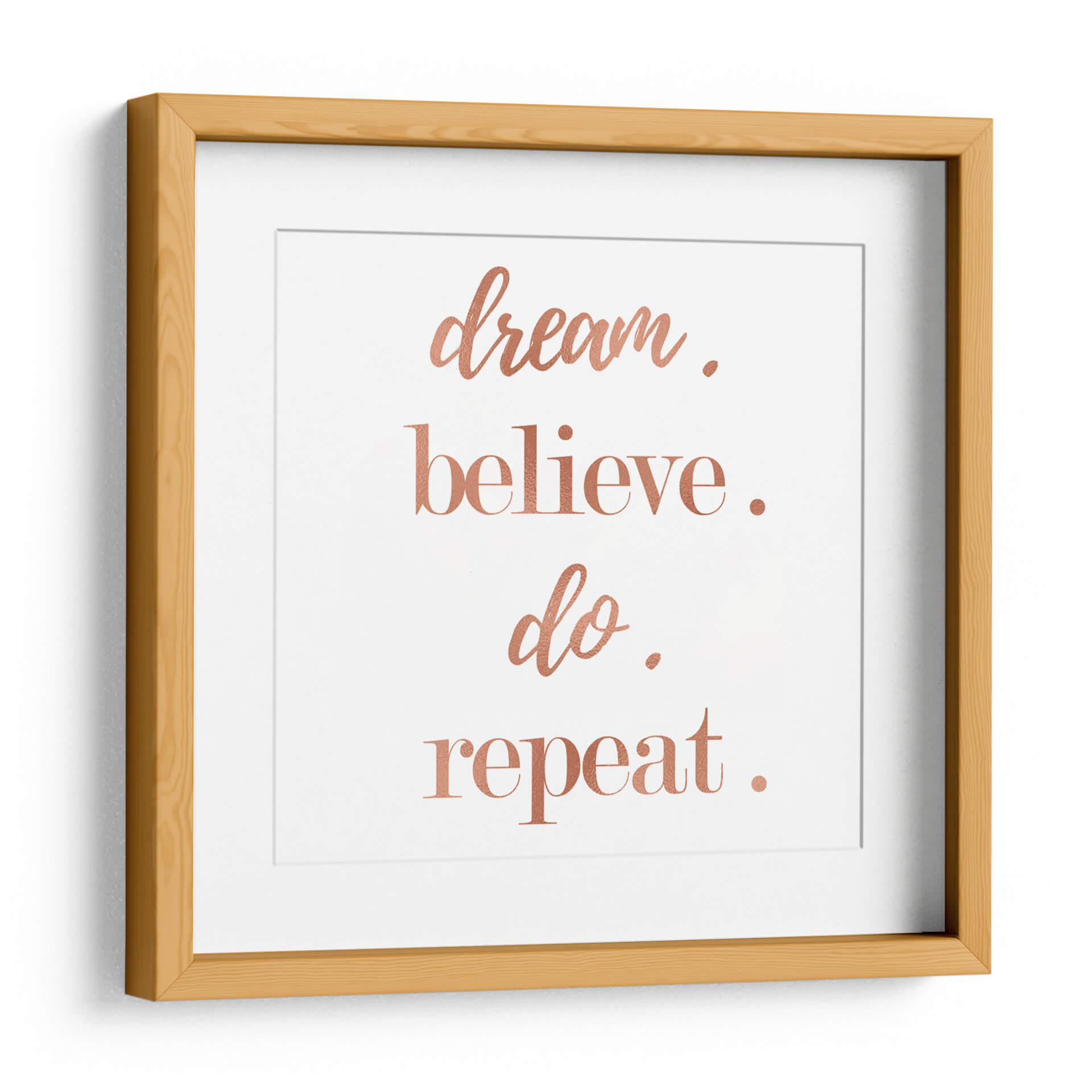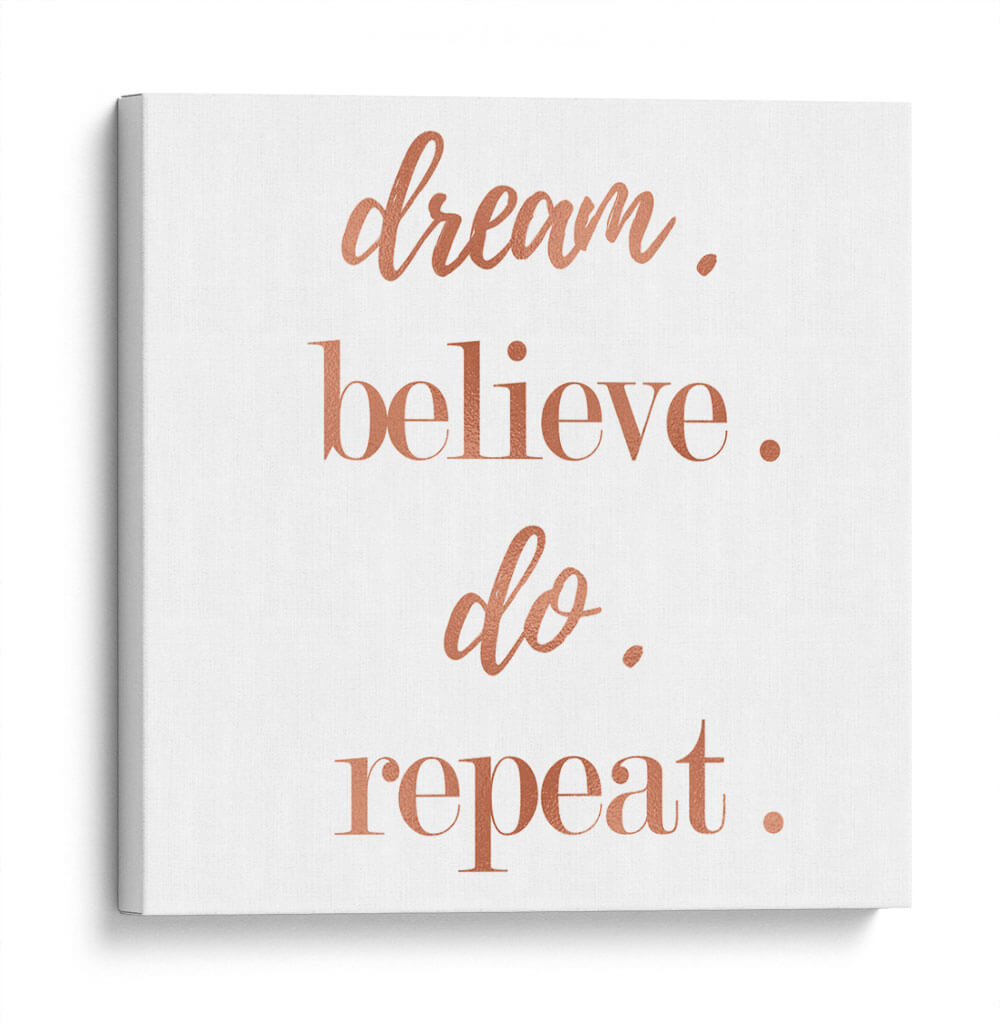 Inspira tus días con este elegante cuadro decorativo que proclama "dream. believe. do. repeat.". Diseñado con una tipografía cursiva moderna en un sofisticado tono cobre sobre un fondo blanco texturizado, este lienzo aporta un toque de motivación y positividad a cualquier espacio. Su composición minimalista y el mensaje inspirador lo convierten en la pieza perfecta para iniciar tu jornada con energía renovada. Ideal para decorar tu oficina en casa, tu dormitorio o cualquier rincón donde necesites un recordatorio constante para perseguir tus metas. Este cuadro abstracto, centrado en el poder de las palabras, no solo embellece tus paredes sino que también eleva tu espíritu. Su diseño contemporáneo se adapta a diversos estilos decorativos, desde el moderno hasta el escandinavo, añadiendo un acento de color y un mensaje significativo. Haz de este cuadro decorativo el punto focal de tu inspiración diaria.