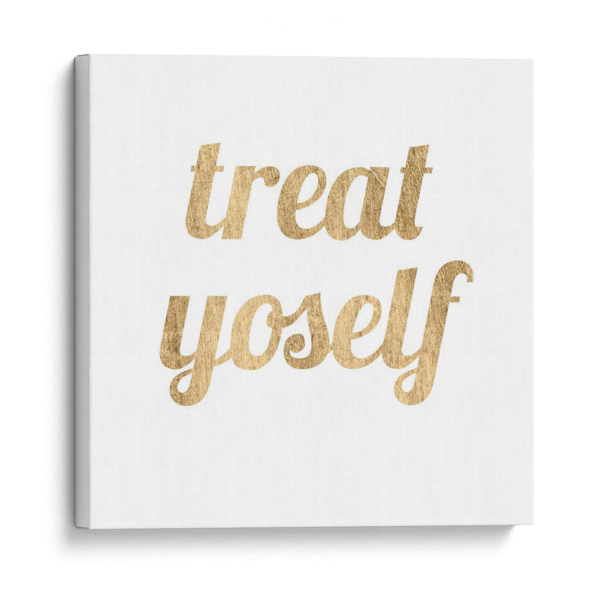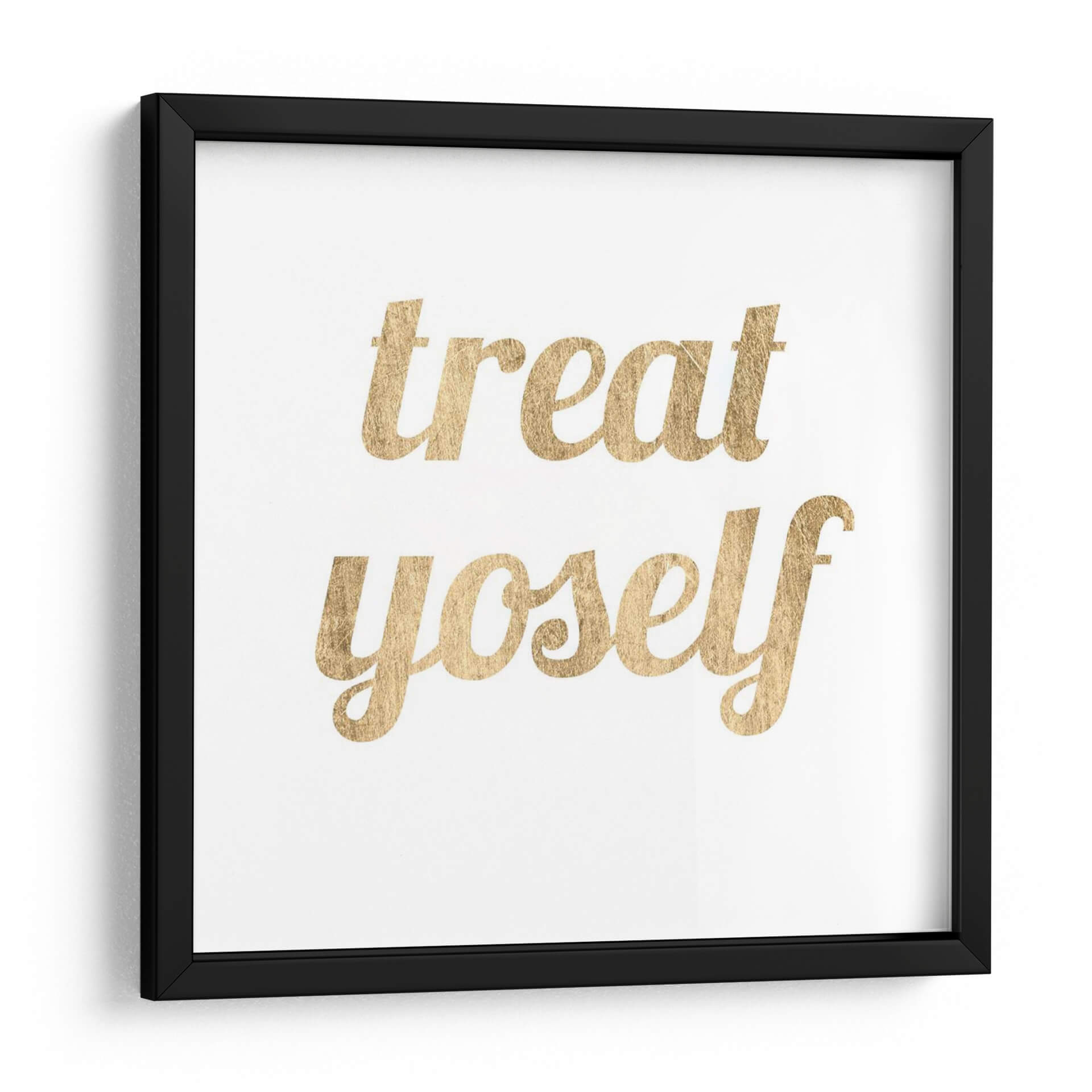 El cuadro decorativo "Cita Dorada Ix" de Anna Hambly es una pieza moderna y elegante que añade un toque de inspiración y sofisticación a cualquier espacio. La obra presenta la frase "treat yoself" (trátate a ti mismo) escrita en una tipografía cursiva dorada y brillante sobre un fondo blanco texturizado. Esta combinación de colores, con el dorado como protagonista, evoca lujo, optimismo y un sentido de auto-cuidado. La simplicidad de la composición, centrada en el mensaje motivacional, la hace versátil para diversos estilos decorativos, desde el minimalista hasta el contemporáneo o incluso un toque chic en un espacio más clásico. Es ideal para crear un ambiente positivo y alentador en tu hogar u oficina. Este cuadro es perfecto para recordarte la importancia de consentirte y celebrar tus logros diarios. Añade un brillo sutil y un mensaje poderoso a tu decoración con esta obra única.
