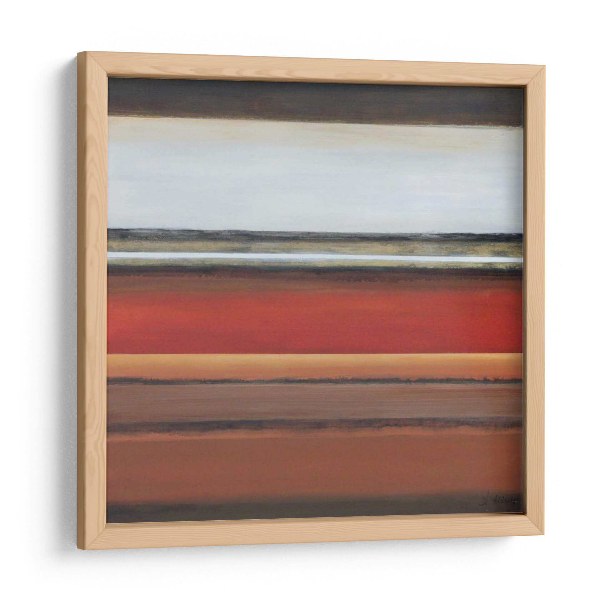 Transforma tu espacio con "Galardonado Naranja I", una obra de arte abstracto contemporáneo que irradia calidez y sofisticación. Este cuadro decorativo, creado por el talentoso artista W. Green-Aldridge, presenta una cautivadora composición de bandas horizontales en tonos tierra, naranjas vibrantes y toques sutiles de blanco y gris pálido. La paleta de colores, rica y armoniosa, evoca la serenidad de un atardecer o la profundidad de paisajes abstractos, invitando a la contemplación y al relax. Su estilo minimalista y moderno lo convierte en una pieza versátil, perfecta para añadir un toque de color y energía a salas de estar, oficinas o dormitorios. La cuidada distribución de las líneas y el equilibrio de los colores crean una atmósfera visualmente atractiva y equilibrada, que actúa como un punto focal sin abrumar el entorno. Ideal para quienes buscan un arte que combine elegancia, modernidad y una conexión emocional sutil, "Galardonado Naranja I" es más que una simple decoración; es una declaración de estilo y buen gusto que enriquecerá cualquier ambiente.