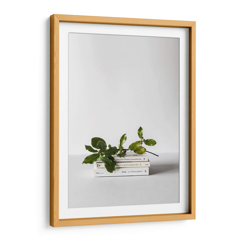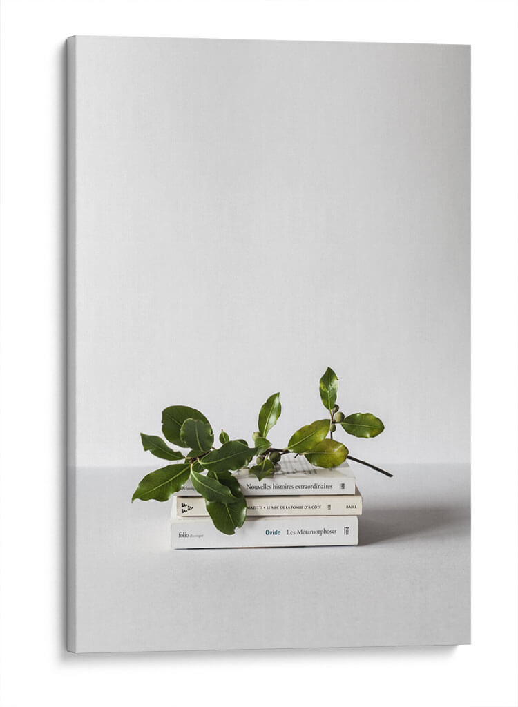 Sumérgete en la serenidad y el encanto intelectual con este cautivador cuadro decorativo titulado 'Tres libros y hojas'. Esta obra de arte visualmente serena presenta una delicada rama con hojas verdes vibrantes, elegantemente colocada sobre una pila de libros de tapa dura. La composición minimalista, con un fondo blanco y limpio, realza la belleza sutil de los elementos presentados. Los tonos verdes de la vegetación contrastan suavemente con los colores neutros de los libros, creando una atmósfera de calma y reflexión. Es una pieza ideal para espacios que buscan inspiración literaria o un toque de naturaleza tranquila. Este cuadro decorativo evoca un ambiente de estudio acogedor, una biblioteca personal o una oficina donde la lectura y el conocimiento son valorados. Su estilo contemporáneo y su estética depurada la convierten en una adición perfecta para salones modernos, dormitorios serenos o cualquier rincón que necesite una dosis de elegancia discreta. Transforma tu hogar u oficina con esta representación artística que celebra la conexión entre la naturaleza, la literatura y la belleza simple, aportando una sensación de paz y sofisticación a tu entorno.