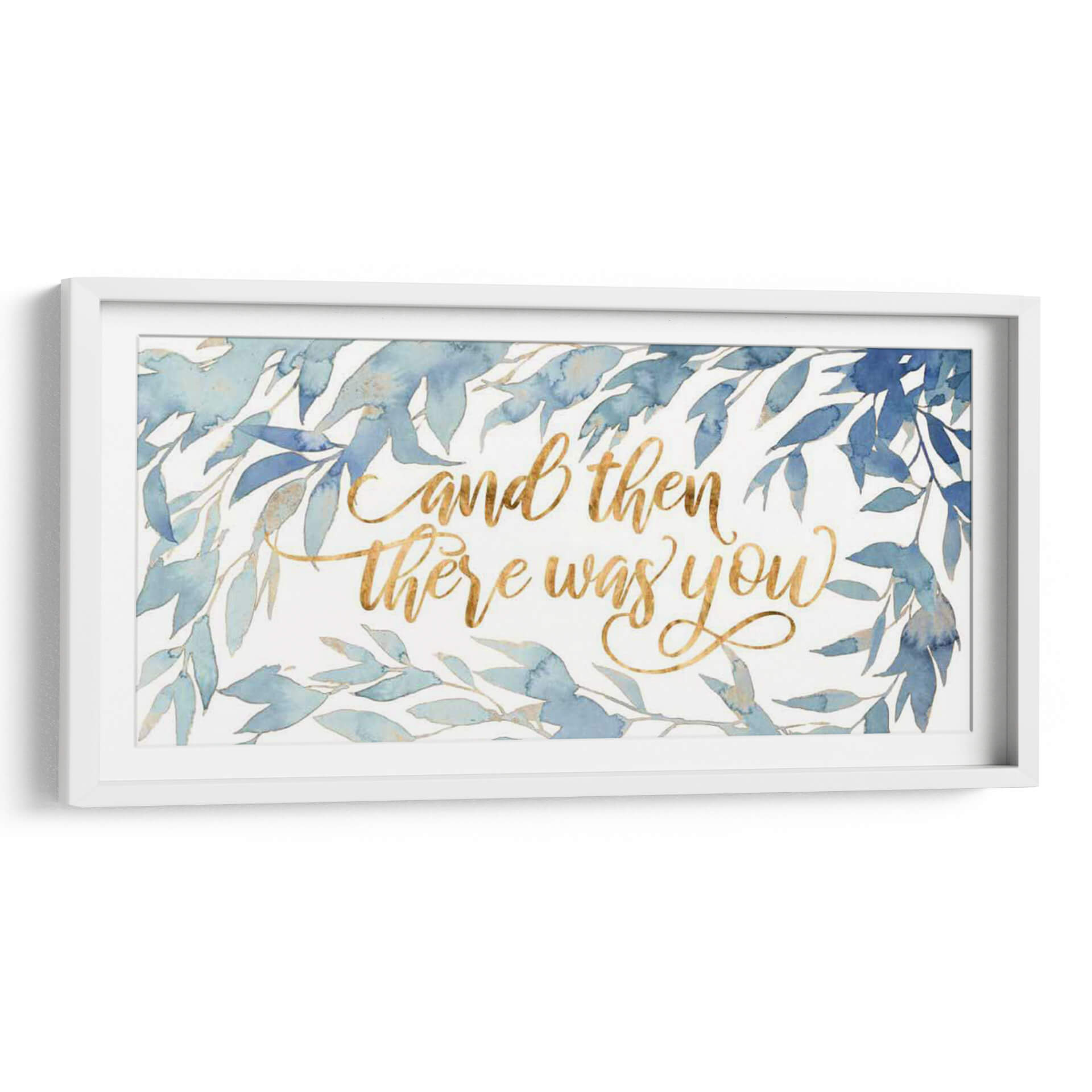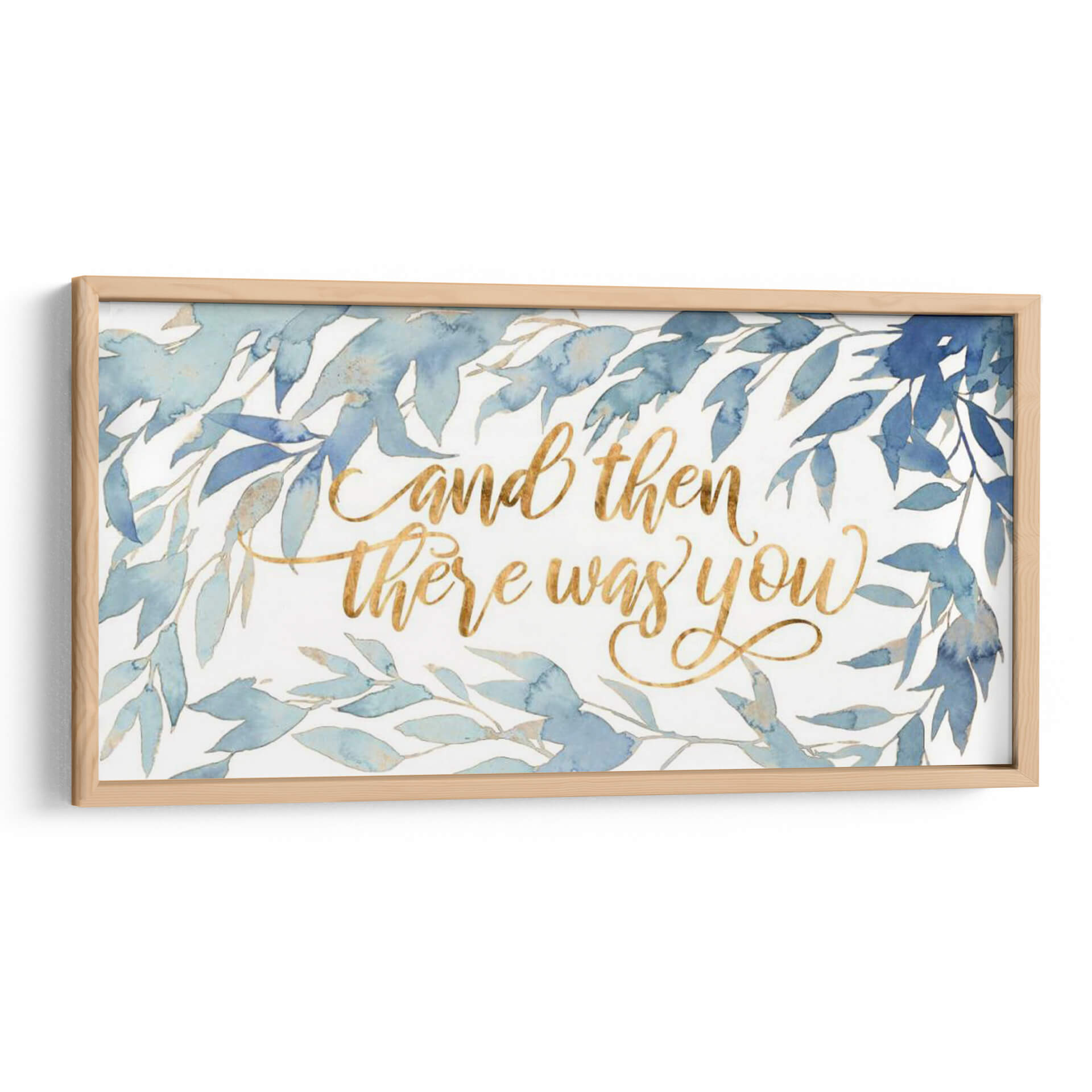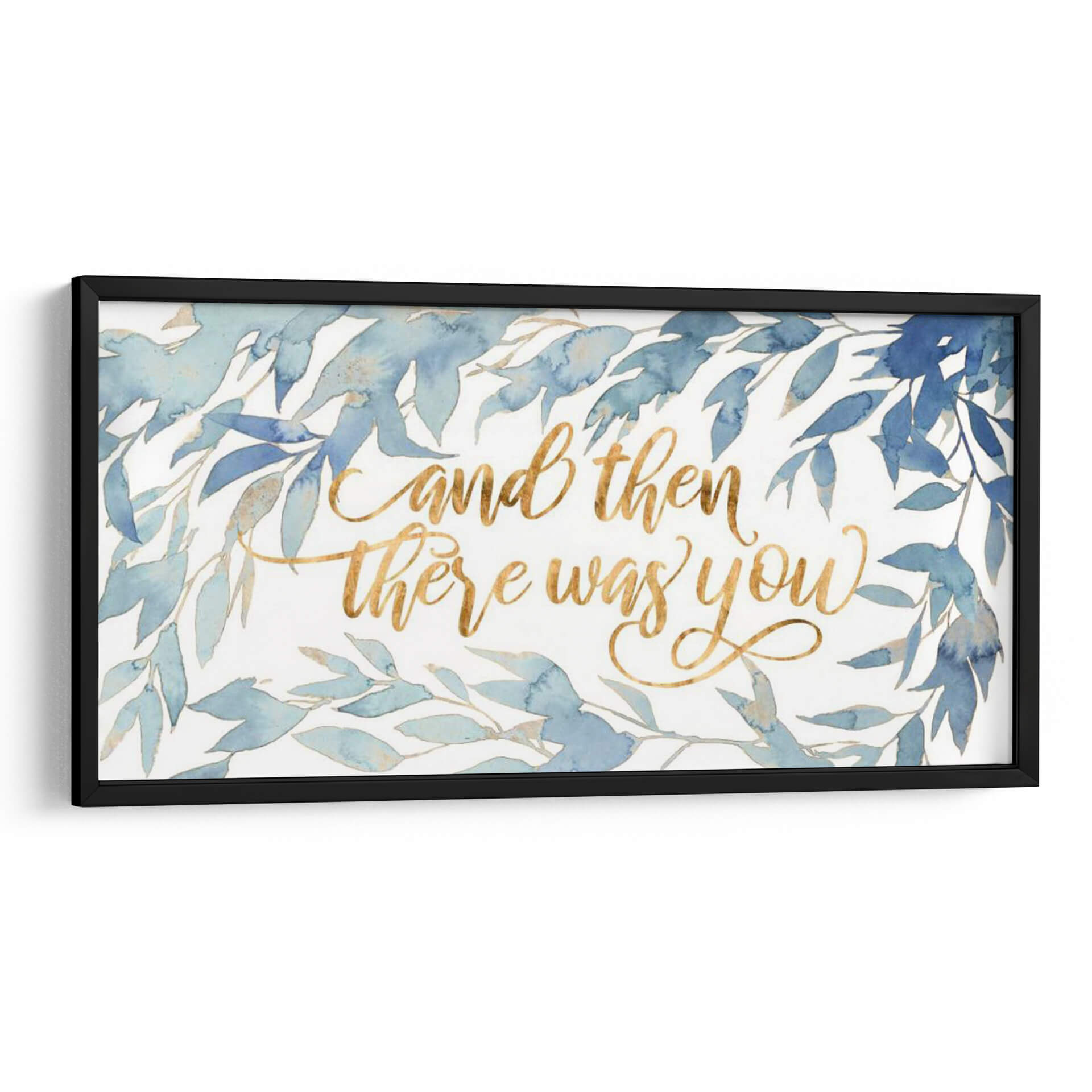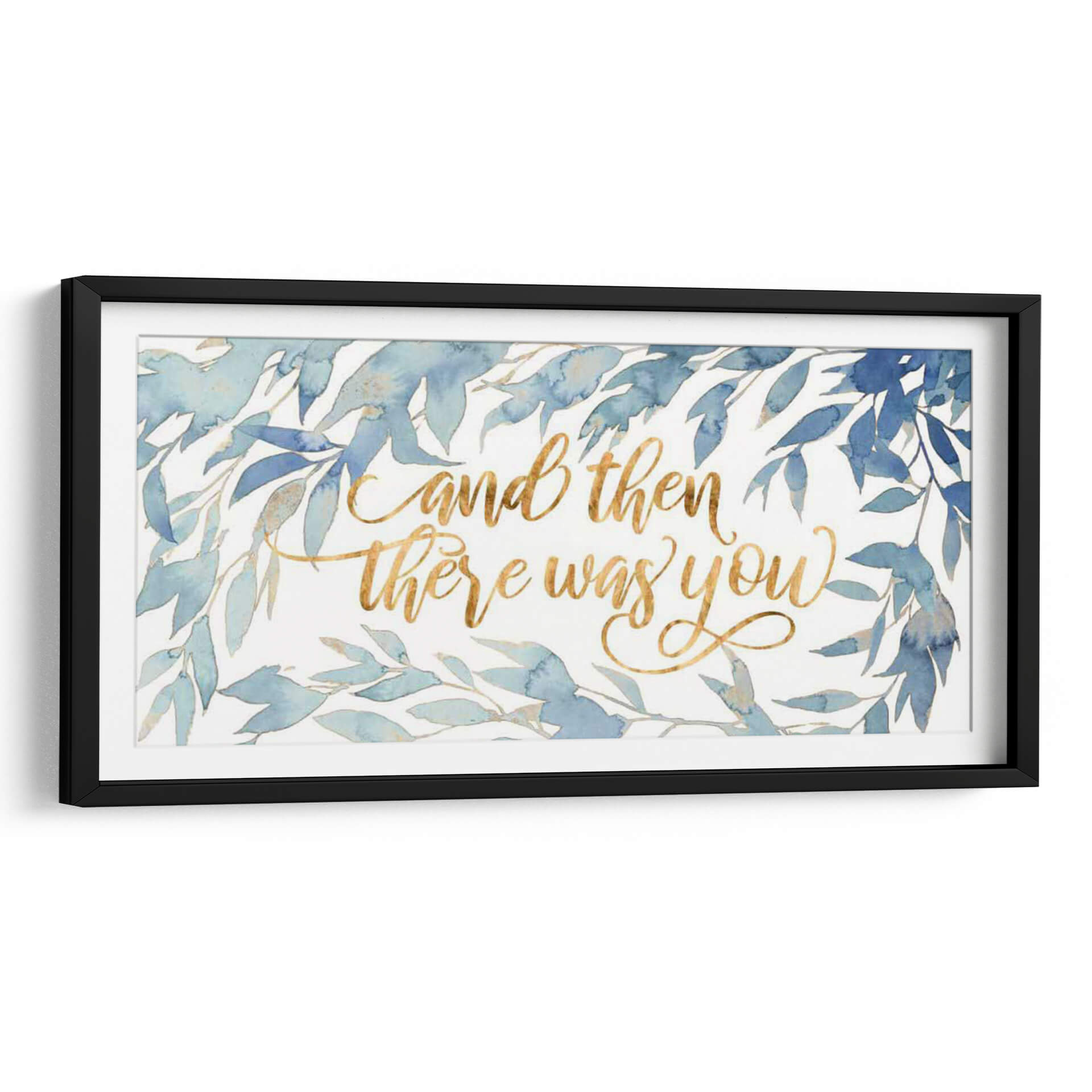 Añade un toque de romance y elegancia a tu hogar con este cautivador cuadro decorativo "Glamor Love II" de Grace Popp. La obra presenta una delicada composición de follaje en acuarela, con tonos suaves de azul y toques dorados que crean un ambiente etéreo y sofisticado. En el centro, una elegante caligrafía dorada reza "and then there was you", evocando un sentimiento de amor y conexión profunda. Este cuadro es perfecto para expresar sentimientos románticos o para celebrar momentos especiales, transformando cualquier espacio en un santuario de ternura. Su estilo abstracto y la paleta de colores serena lo hacen ideal para dormitorios, salones o cualquier rincón donde busques añadir una dosis de encanto y calidez. Imagina la suave luz reflejándose en los detalles dorados mientras esta pieza se convierte en el punto focal de tu decoración. "Glamor Love II" no es solo arte, es una declaración de amor y un recordatorio de la belleza de los momentos compartidos, un complemento perfecto para quienes aprecian el arte contemporáneo con un mensaje conmovedor.