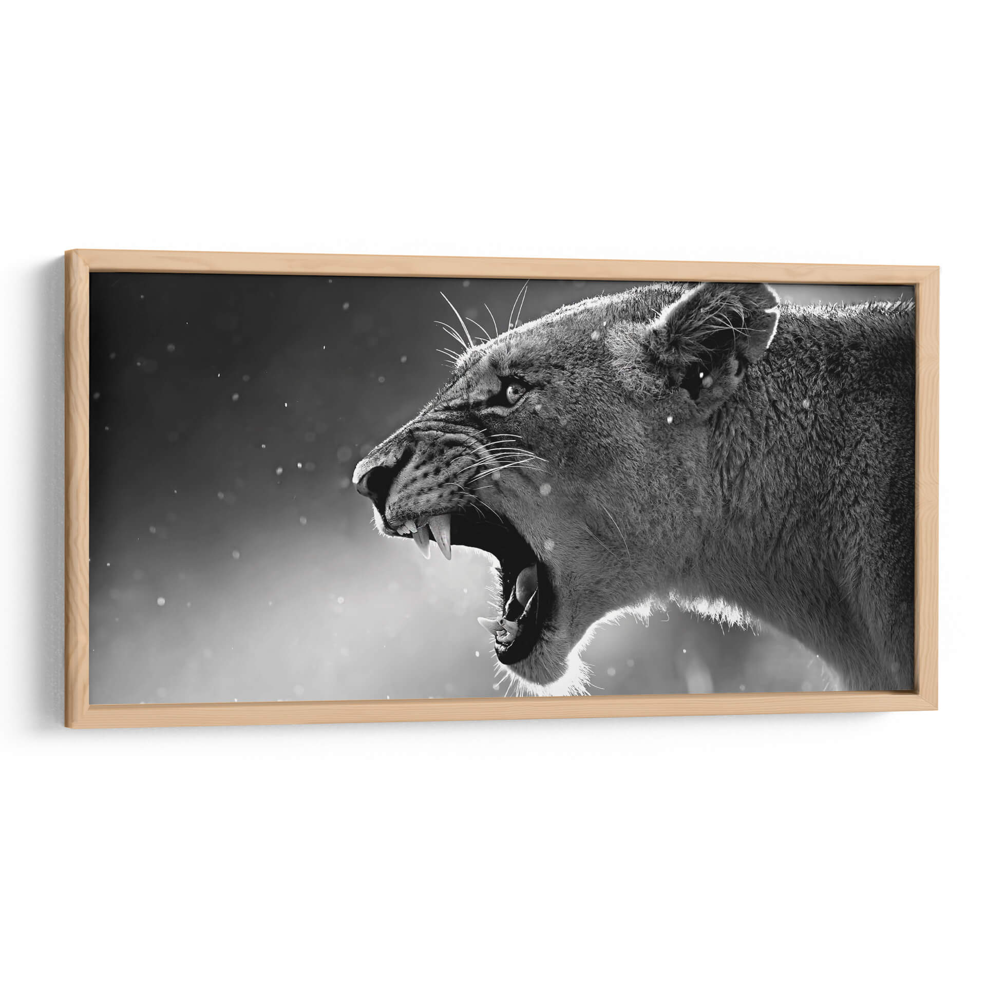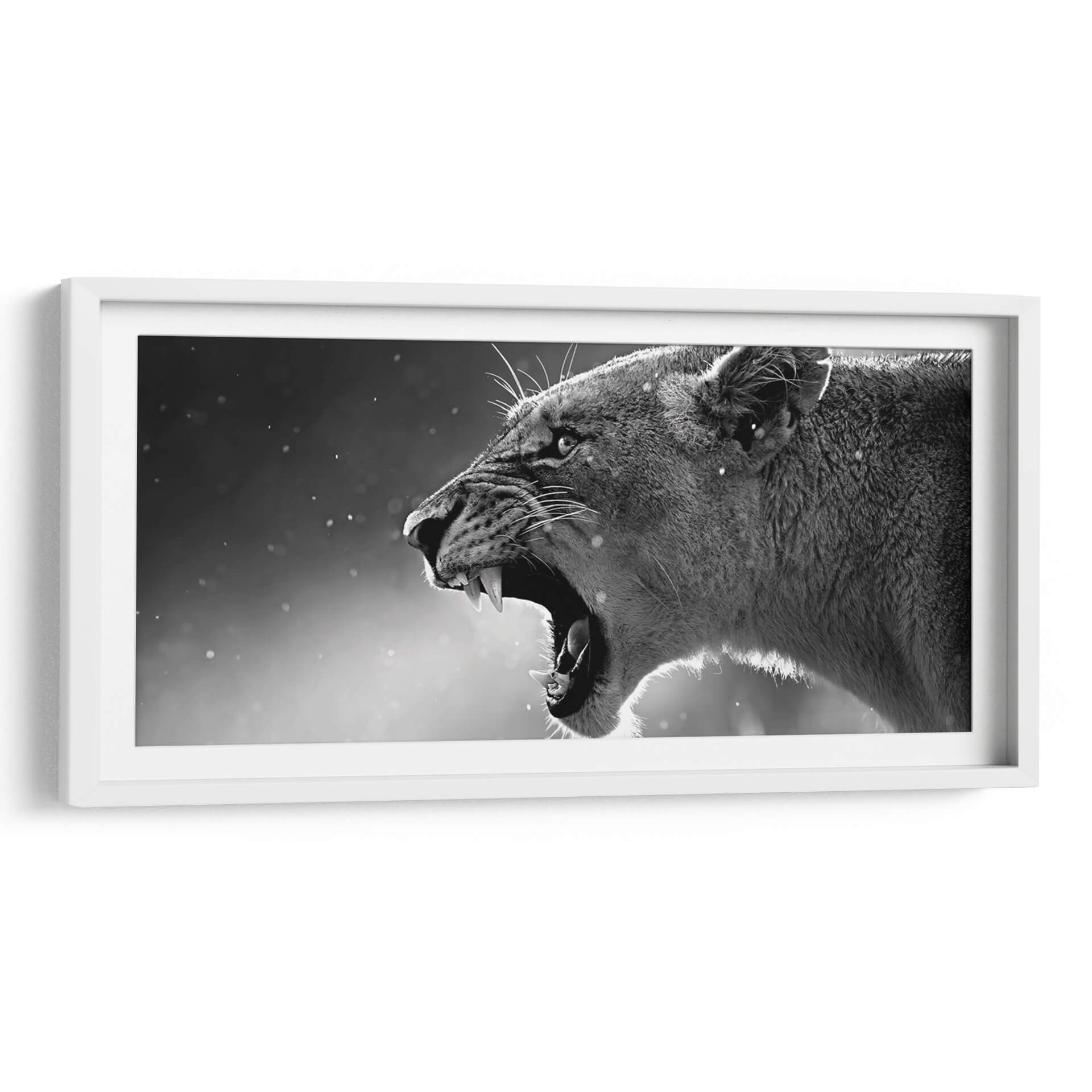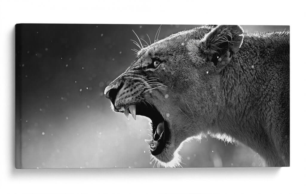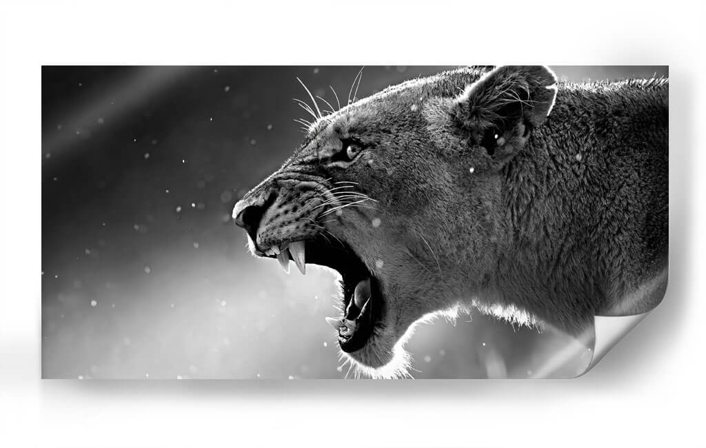 Captura la fuerza indómita y la majestuosidad de la naturaleza con este impactante cuadro decorativo de una leona rugiendo. Realizado en un dramático blanco y negro, este arte de pared evoca una poderosa energía, ideal para quienes buscan un elemento de carácter y audacia en su decoración. La leona, representada en un primer plano que resalta la intensidad de su mirada y la ferocidad de su rugido, se convierte en un punto focal cautivador para cualquier estancia. El uso del monocromo acentúa las texturas de su pelaje y la profundidad de su expresión, creando una atmósfera de respeto y admiración por esta reina de la sabana. Este cuadro decorativo es perfecto para salas de estar modernas, estudios o incluso oficinas, añadiendo un toque de sofisticación salvaje. Su diseño atemporal y su poderosa temática lo convierten en una elección excepcional para añadir carácter y una narrativa visual impactante a tu hogar. Transforma tu espacio con la fuerza y la belleza cruda de este magnífico felino, una pieza que sin duda generará conversación y admiración.