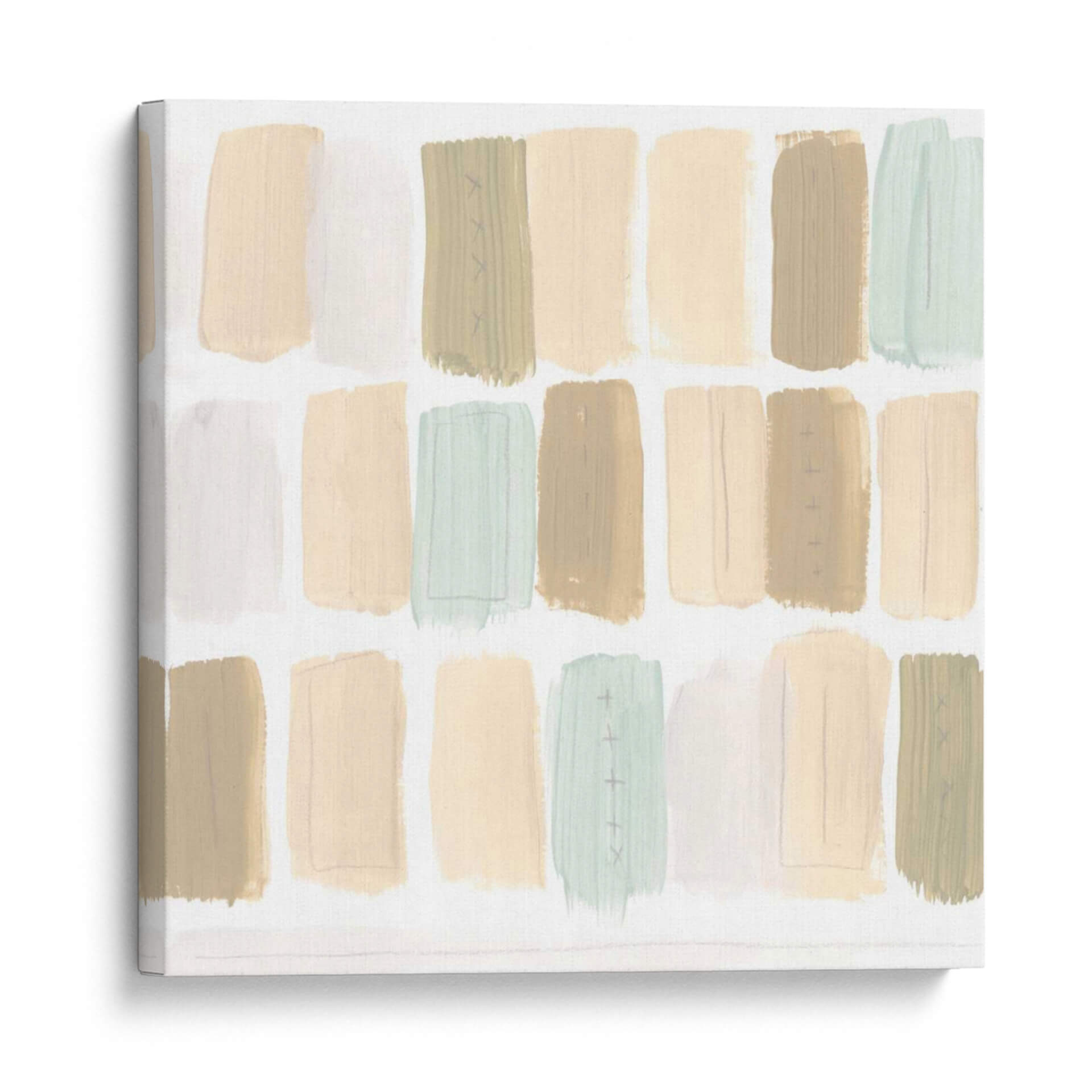 Sumérgete en la serena belleza abstracta de "Viii Intangible", una obra maestra de June Erica Vess que captura la esencia de la calma y la simplicidad. Este cuadro decorativo presenta una composición orgánica de pinceladas rectangulares, dispuestas en una cuadrícula sutil pero dinámica. La paleta de colores, dominada por tonos tierra suaves como beige, ocre y toques de verde menta pálido, evoca una sensación de tranquilidad y conexión con la naturaleza. Cada pincelada, con su textura sutil y bordes ligeramente irregulares, aporta una cualidad táctil y artesanal, sugiriendo un proceso de creación reflexivo. El estilo abstracto y minimalista de la obra la convierte en una adición versátil a cualquier espacio, desde una sala de estar moderna hasta un sereno dormitorio o una oficina profesional. "Viii Intangible" no es solo una pieza decorativa; es una invitación a la contemplación, un respiro visual que aporta equilibrio y sofisticación a tu hogar. Ideal para quienes buscan arte que inspire paz y un estilo contemporáneo sutil, esta obra se convertirá en un punto focal apreciado y una fuente constante de serenidad.