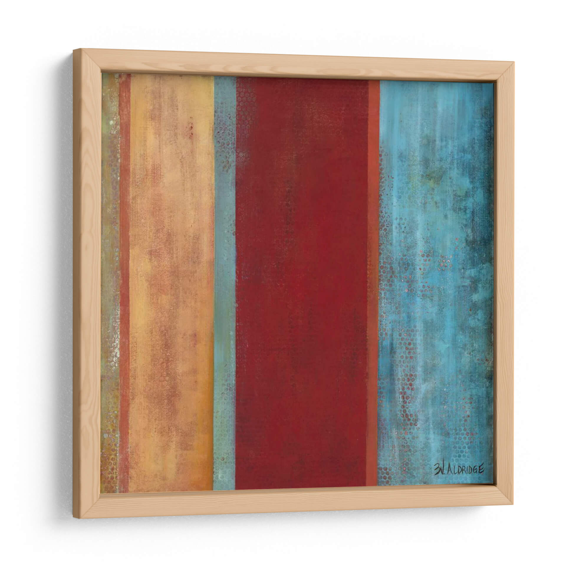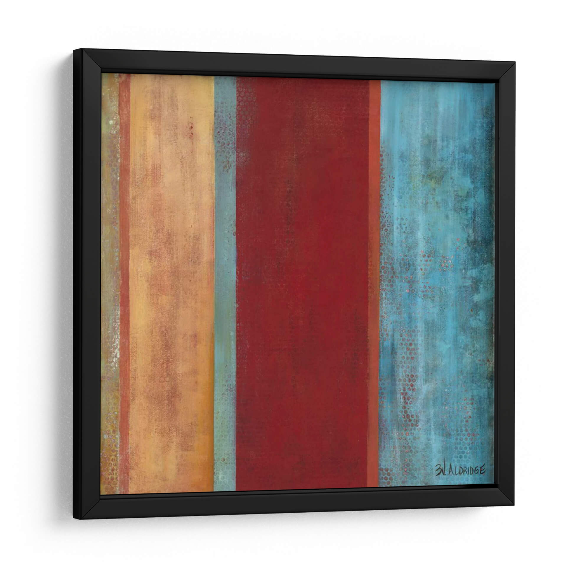 Sumérgete en la vibrante y enigmática obra de arte "Azul Viene A Través De Ii" de W. Green-Aldridge. Este cuadro decorativo abstracto se caracteriza por sus audaces franjas verticales que evocan una sensación de profundidad y movimiento. La paleta de colores, dominada por ricos tonos rojos, cálidos ocres y un enérgico azul turquesa, crea un contraste dinámico que captura la atención e invita a la contemplación. Las sutiles texturas y los efectos de desgaste añadidos a las franjas de color infunden a la pieza una cualidad orgánica y artesanal, sugiriendo capas de historia y emoción. El estilo abstracto de la obra permite una interpretación personal, convirtiéndola en un punto focal fascinante para cualquier espacio. Ideal para salas de estar modernas, oficinas o cualquier ambiente que busque una inyección de color y carácter, este cuadro decorativo es una elección audaz para quienes aprecian el arte contemporáneo con una fuerte presencia visual. Su composición vertical aporta una sensación de elevación y orden, mientras que la interacción de colores sugiere una narrativa de contrastes y armonías. Añade esta pieza única a tu colección y transforma tu hogar en una galería personal.