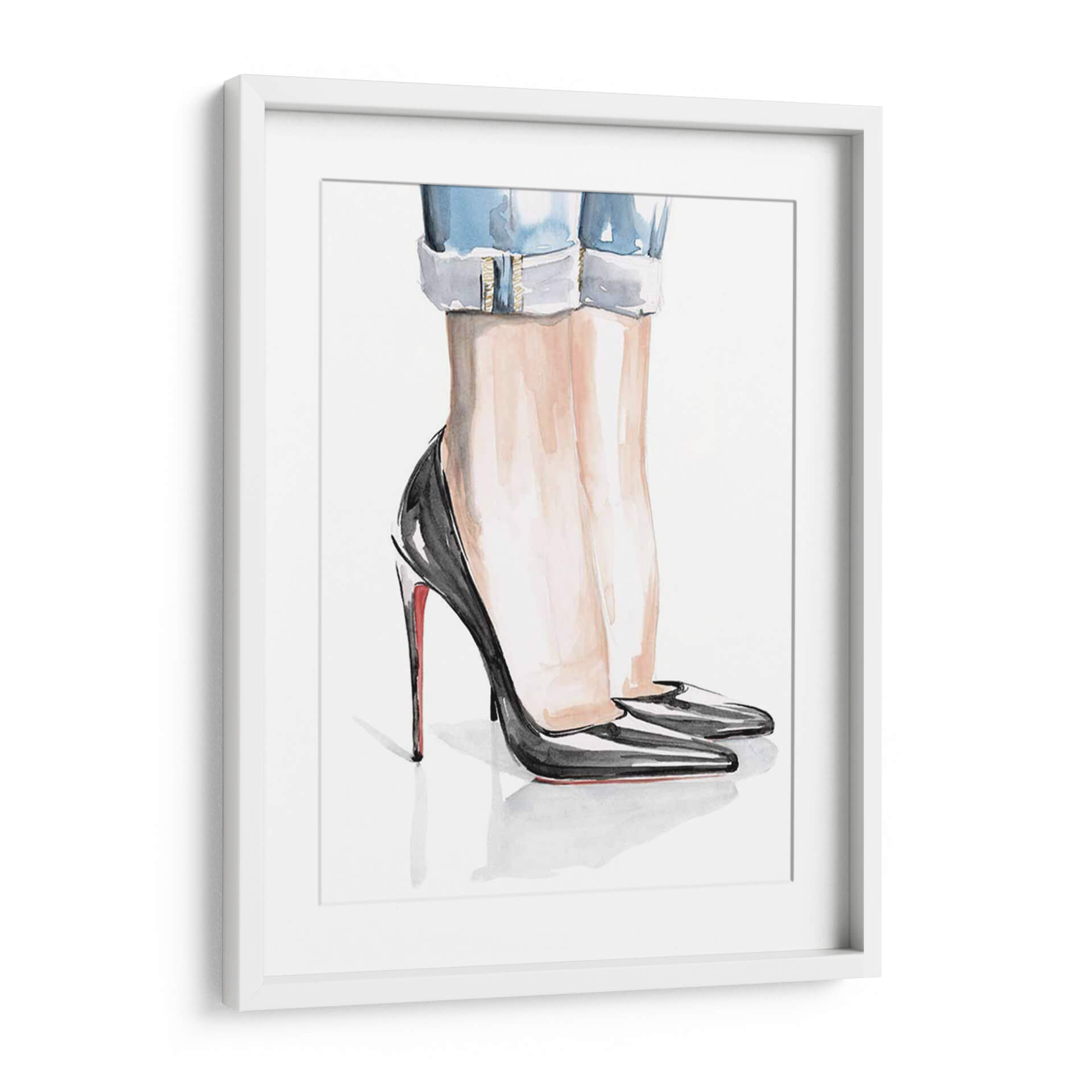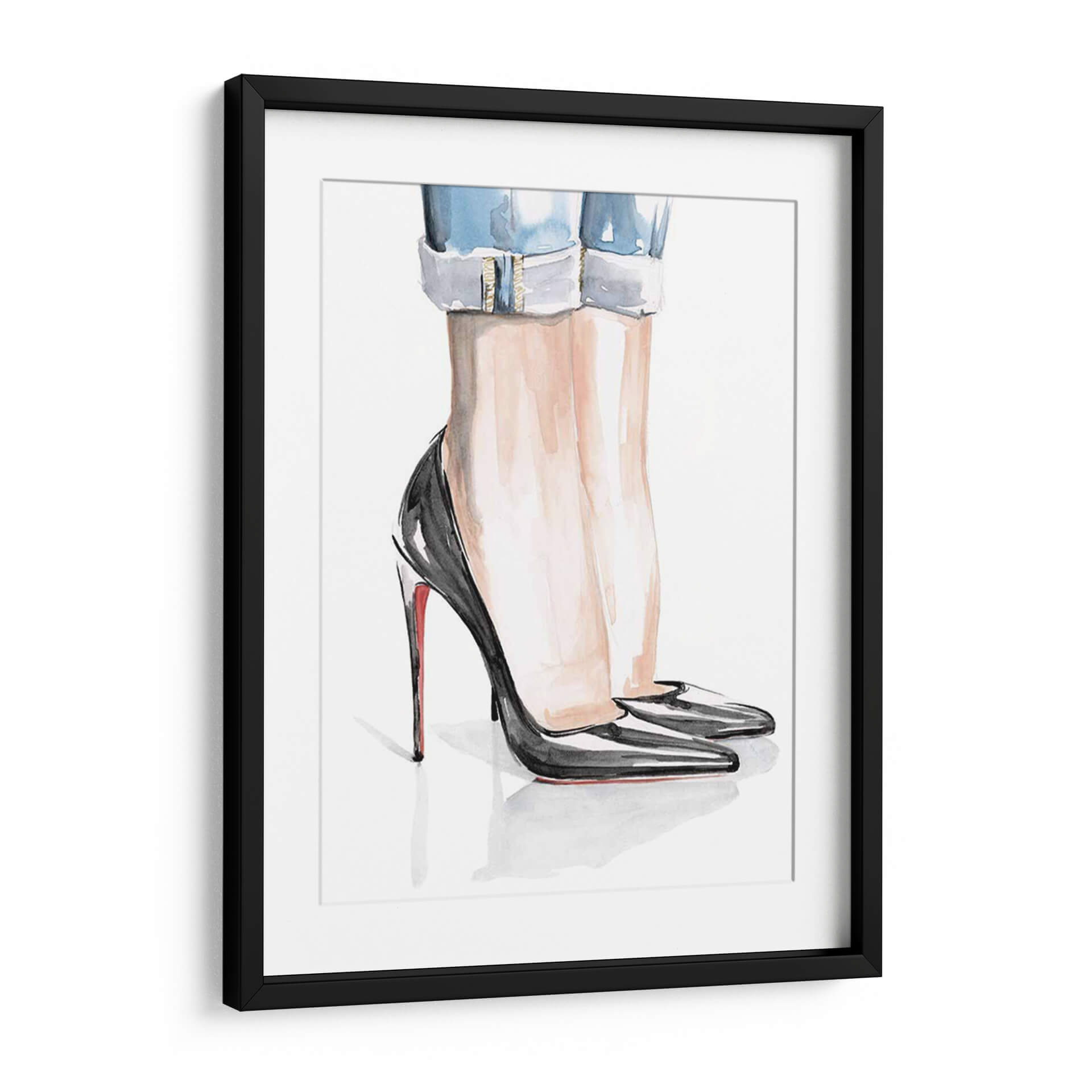 Sumérgete en la elegancia moderna con 'Casual Viernes Yo', una obra de arte que captura la esencia del estilo contemporáneo. Esta pieza, realizada con una delicada técnica de acuarela, presenta unos pies calzados con tacones negros y un toque de rojo vibrante en sus suelas, contrastando con unos pantalones vaqueros desgastados. Los tonos piel suaves y el fondo blanco puro crean una atmósfera limpia y sofisticada, resaltando la audacia del calzado. Ideal para espacios que buscan un acento de moda y personalidad, como un vestidor, un tocador o una sala de estar con un toque chic. La composición minimalista y el enfoque en los detalles de moda hacen de este cuadro decorativo una elección perfecta para quienes aprecian la elegancia en lo cotidiano. 'Casual Viernes Yo' evoca una sensación de confianza y feminidad, convirtiéndose en un punto focal que inspira y embellece cualquier ambiente, reflejando un gusto por el diseño y las tendencias actuales. Añade un toque de glamour y distinción a tu hogar u oficina con esta pieza única.