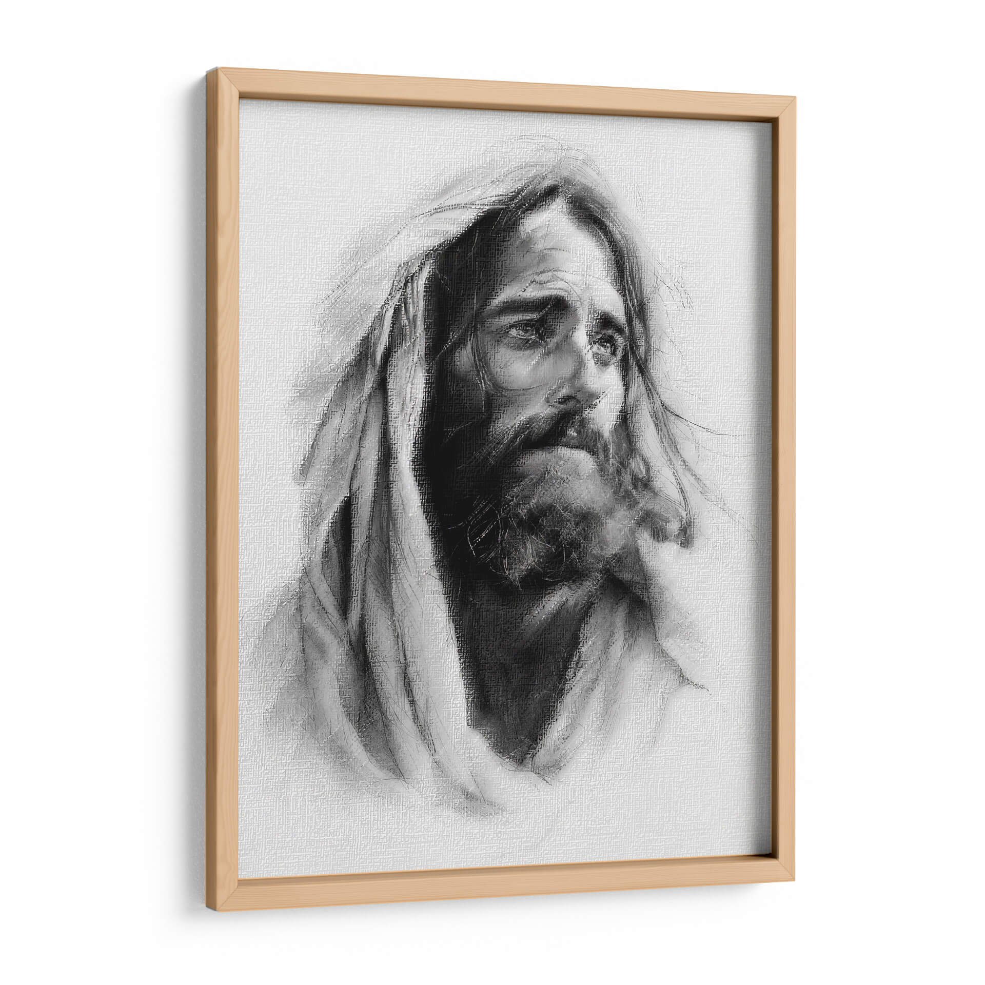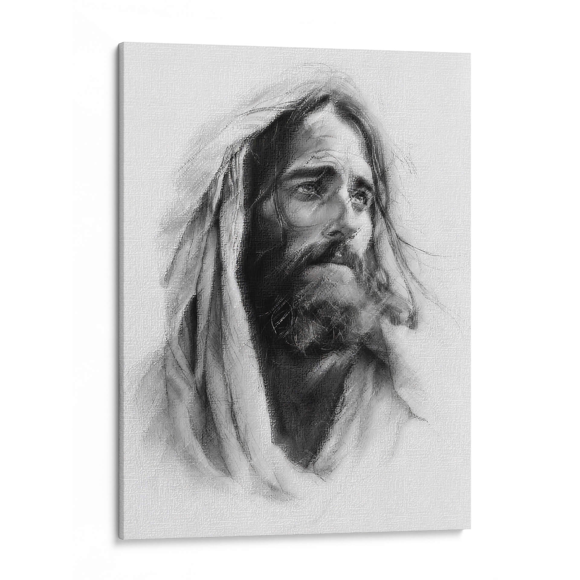 Sumérgete en la profunda emotividad de "Cristo a Lápiz", una obra de arte digital que captura la esencia espiritual con una delicadeza excepcional. Este retrato, realizado con una técnica que evoca el trazo a lápiz sobre lienzo, presenta una figura central de Cristo, cuyos ojos transmiten una mirada introspectiva y serena, invitando a la contemplación. La paleta monocromática, dominada por grises y blancos, crea una atmósfera de calma y solemnidad, resaltando la expresividad del rostro y la fluidez de la tela que lo envuelve. Cada detalle, desde la barba cuidada hasta los pliegues de la túnica, está ejecutado con maestría, aportando una textura visual rica y una sensación de profundidad. Este cuadro decorativo es perfecto para espacios que buscan un toque de reflexión y paz, como un estudio, una biblioteca o un dormitorio. Su estilo realista con toques etéreos lo convierte en una pieza versátil que puede complementar tanto decoraciones clásicas como contemporáneas, añadiendo un punto de inspiración y espiritualidad a tu hogar u oficina. Añade esta obra maestra a tu colección y siente su presencia transformadora.
