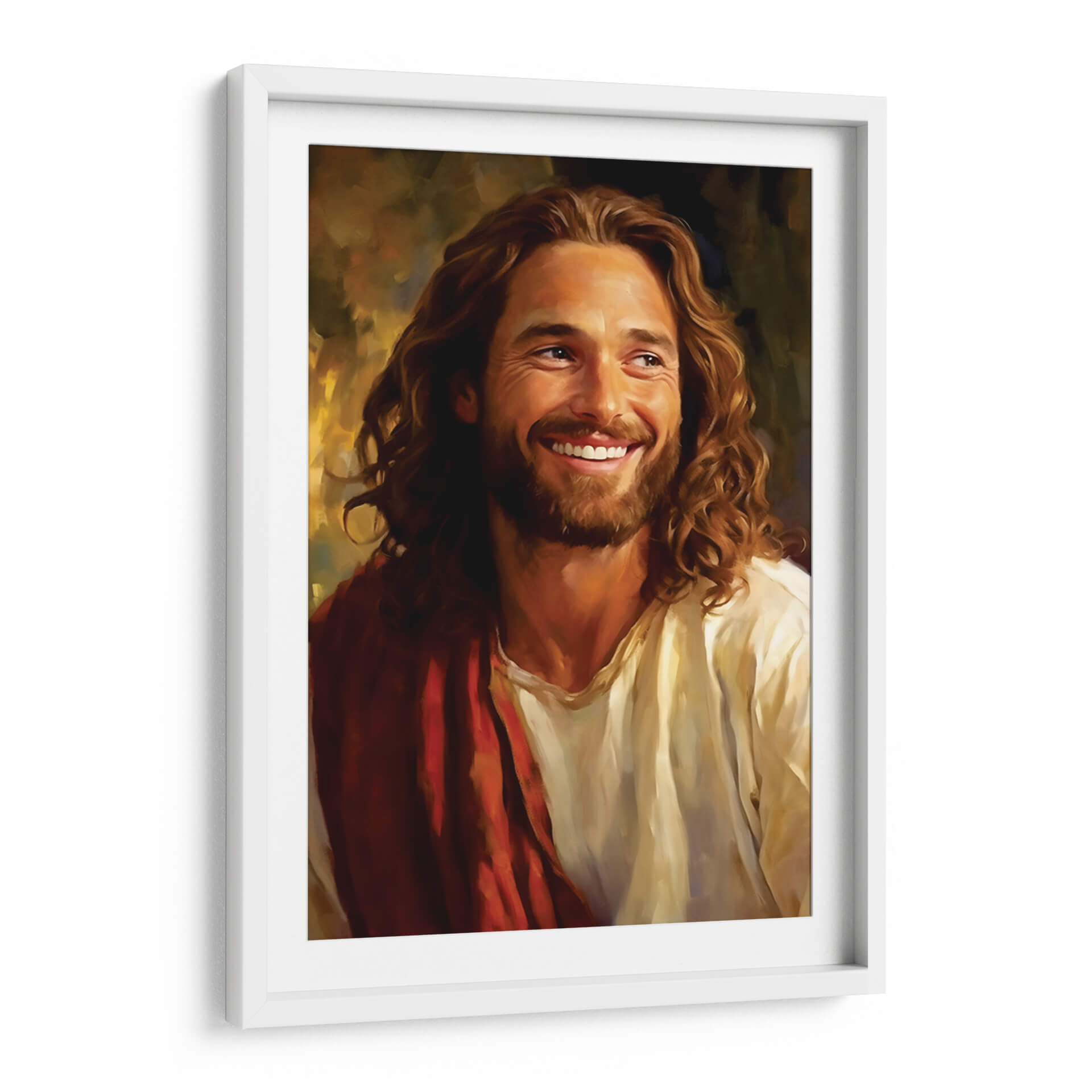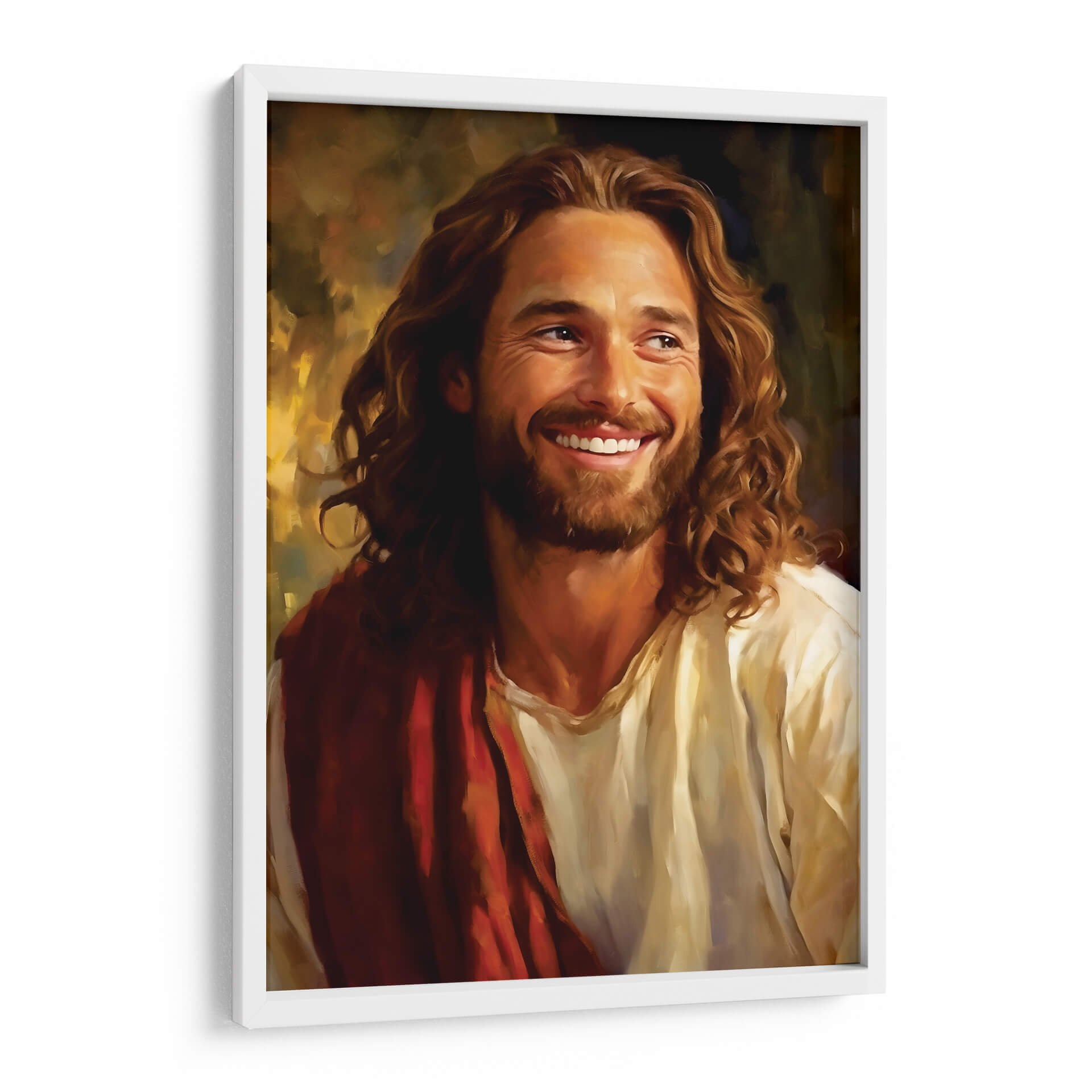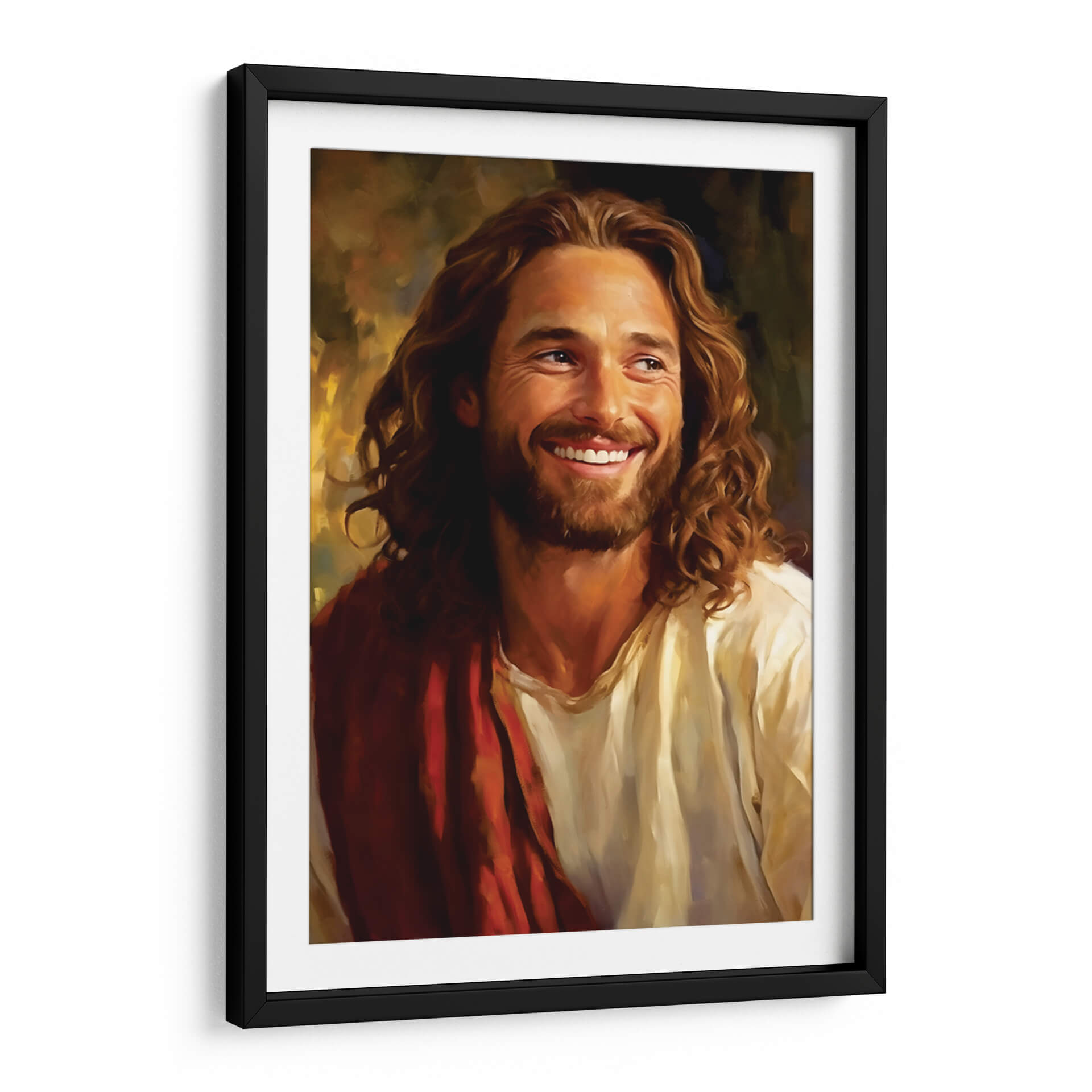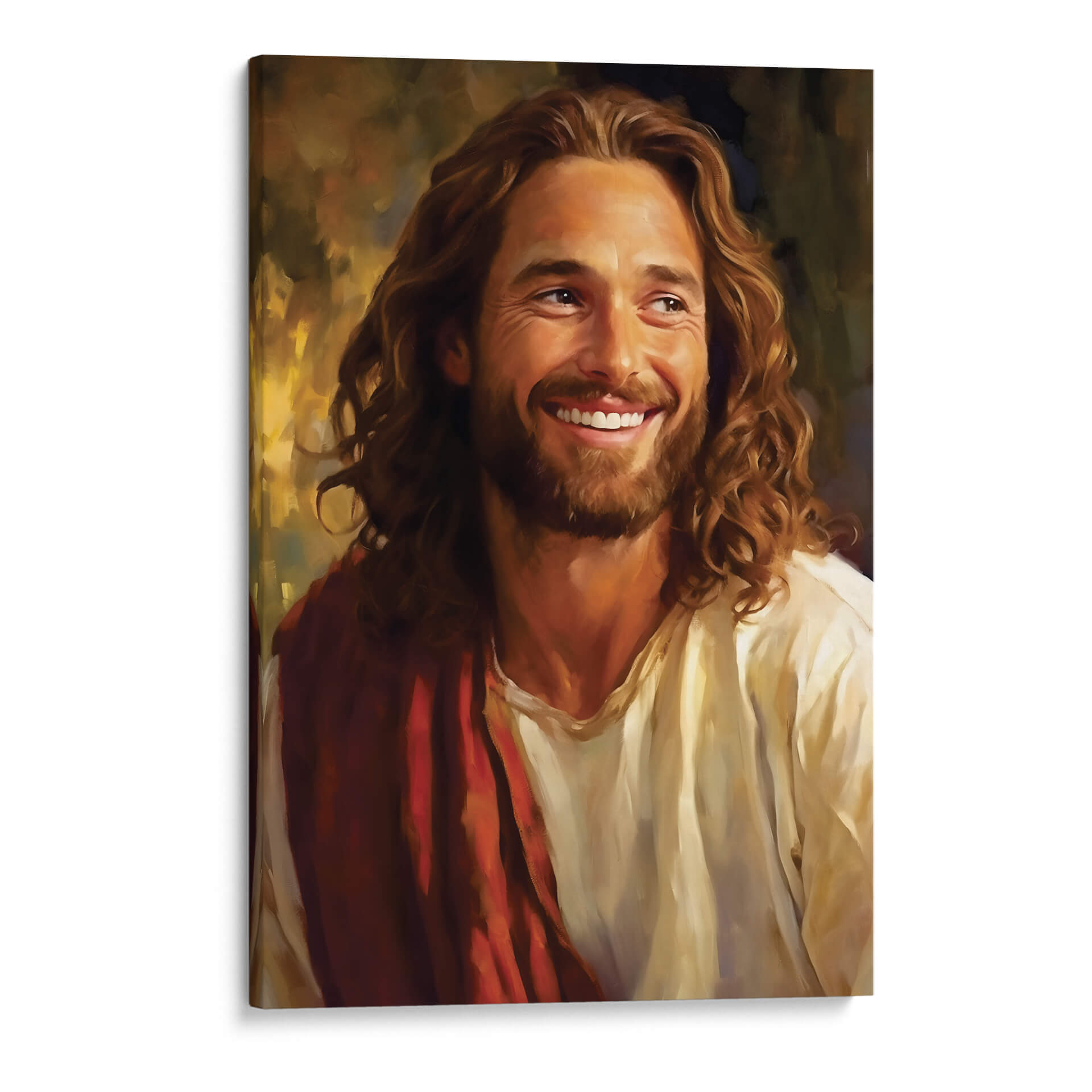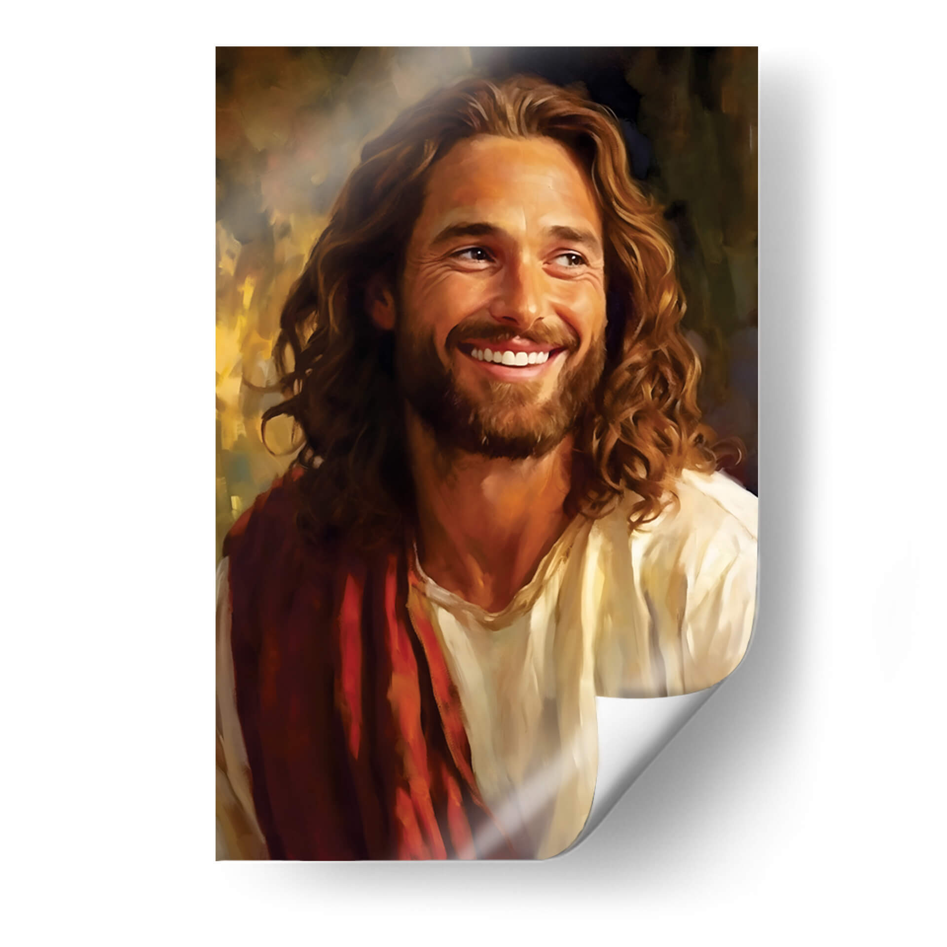 Sumérgete en la serenidad y la calidez con "Jesús Amoroso", una obra de arte cautivadora de Dav Madrid. Este cuadro decorativo presenta un retrato conmovedor de Jesús, capturado en un momento de profunda alegría y compasión, con una sonrisa radiante que ilumina la escena. La paleta de colores se centra en tonos cálidos y terrosos, con dorados y marrones que crean una atmósfera acogedora y espiritual. La técnica de pincelada, sutilmente expresionista, añade profundidad y textura, invitando al espectador a conectar emocionalmente con la imagen. La composición se centra en el rostro y la expresión del sujeto, transmitiendo un mensaje universal de amor y esperanza. Este cuadro es ideal para añadir un toque de espiritualidad y paz a tu hogar, ya sea en la sala de estar, el dormitorio o un espacio de meditación. Su estilo clásico pero fresco lo hace perfecto para complementar una variedad de decoraciones, desde lo tradicional hasta lo contemporáneo, convirtiéndose en un punto focal inspirador que eleva el espíritu y embellece cualquier ambiente. "Jesús Amoroso" no es solo una pieza decorativa, sino una fuente de consuelo y positividad para tu vida diaria.
