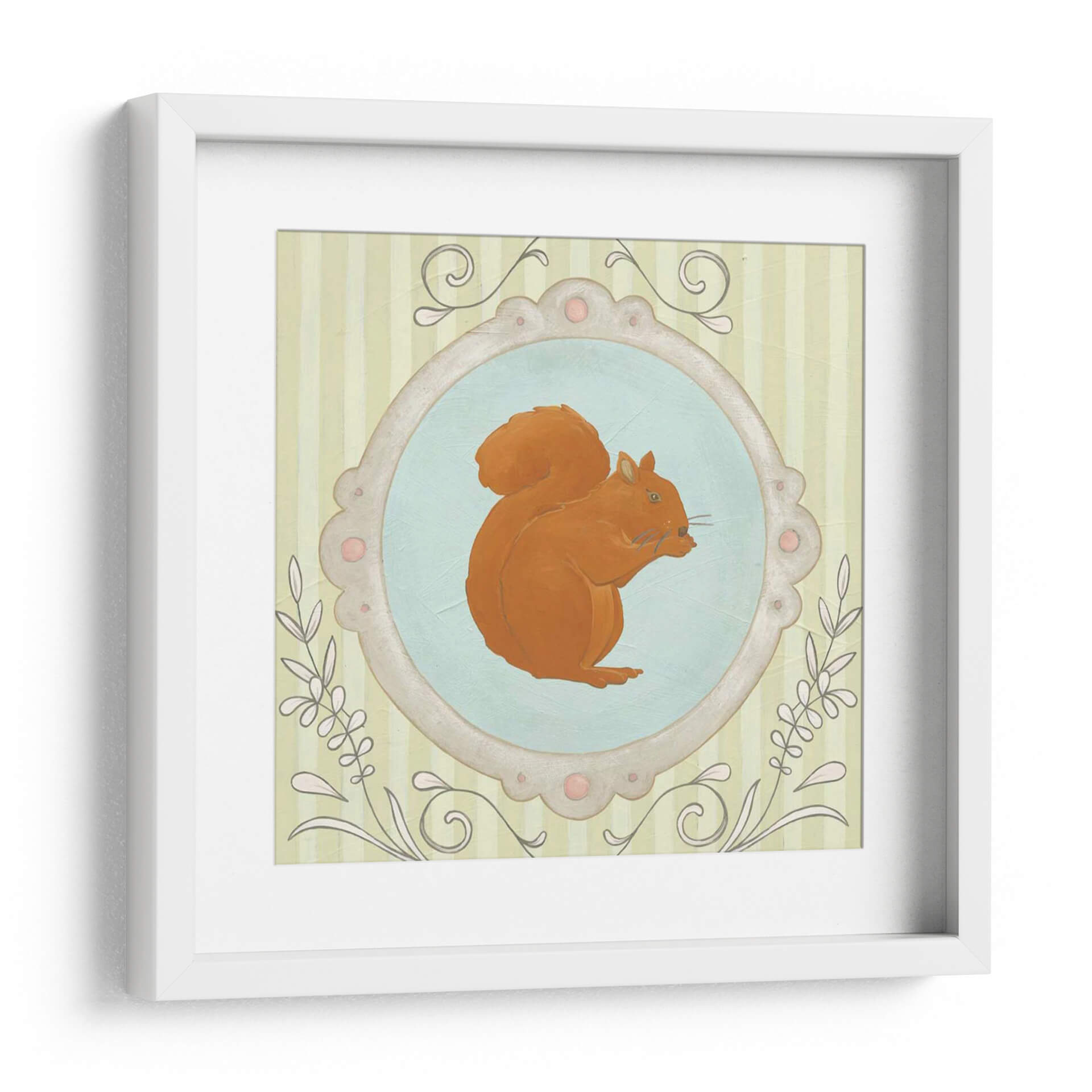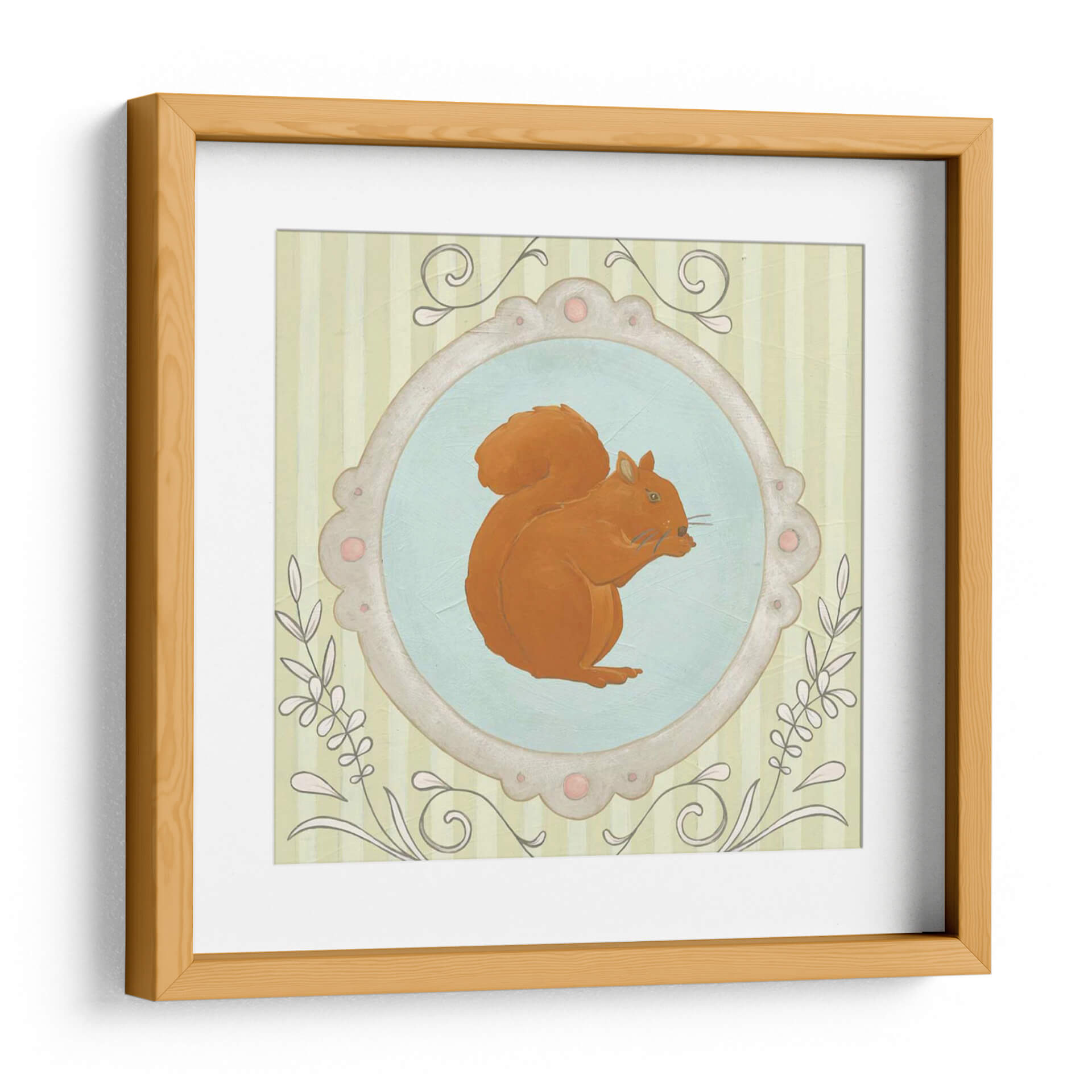 Sumérgete en la encantadora dulzura de "Bosque Del Camafeo I", una obra de arte digital que captura la inocencia y la curiosidad de la naturaleza. Esta pieza, creada por la talentosa artista June Erica Vess, presenta una ardilla anaranjada vibrante enmarcada dentro de un delicado camafeo ovalado, sobre un fondo de rayas verticales en tonos pastel de verde y amarillo. La composición evoca una sensación de nostalgia y calidez, como un recuerdo preciado o un tesoro encontrado. Los trazos suaves y la paleta de colores delicada invitan a la contemplación y a la conexión con el mundo natural. Este cuadro decorativo es perfecto para añadir un toque de encanto y serenidad a cualquier espacio, ya sea una habitación infantil, una sala de estar acogedora o un rincón de lectura tranquilo. Su estilo único y su atmósfera juguetona lo convierten en una pieza de conversación ideal, capaz de transformar cualquier pared en un foco de atención lleno de ternura y estilo. Ideal para quienes buscan arte que combine la belleza clásica con un toque contemporáneo y whimsical.