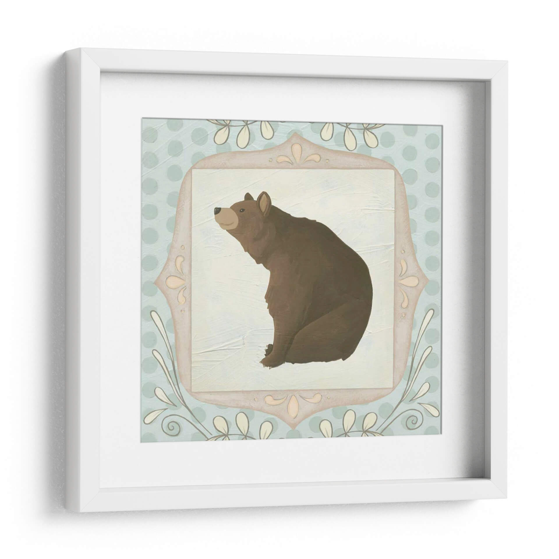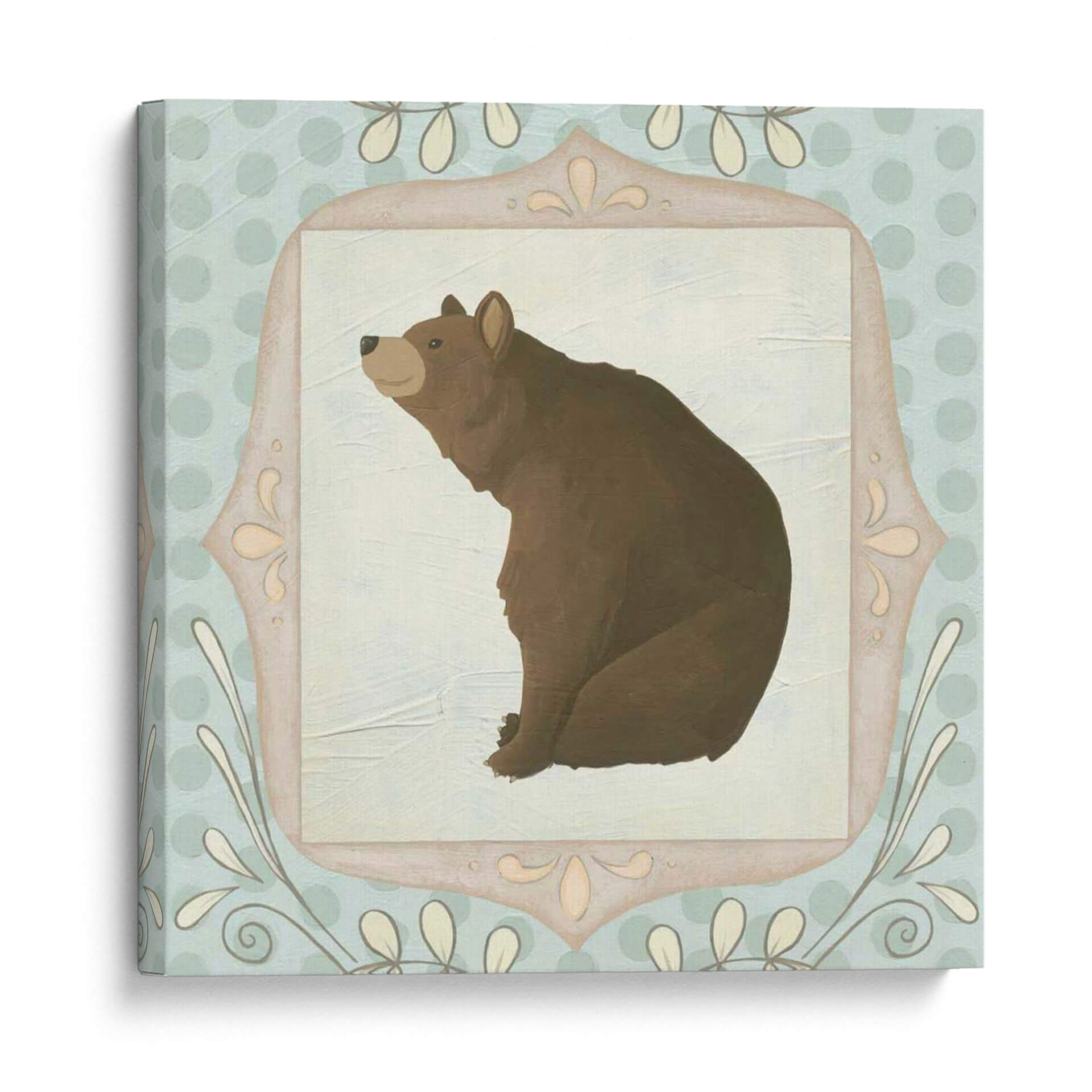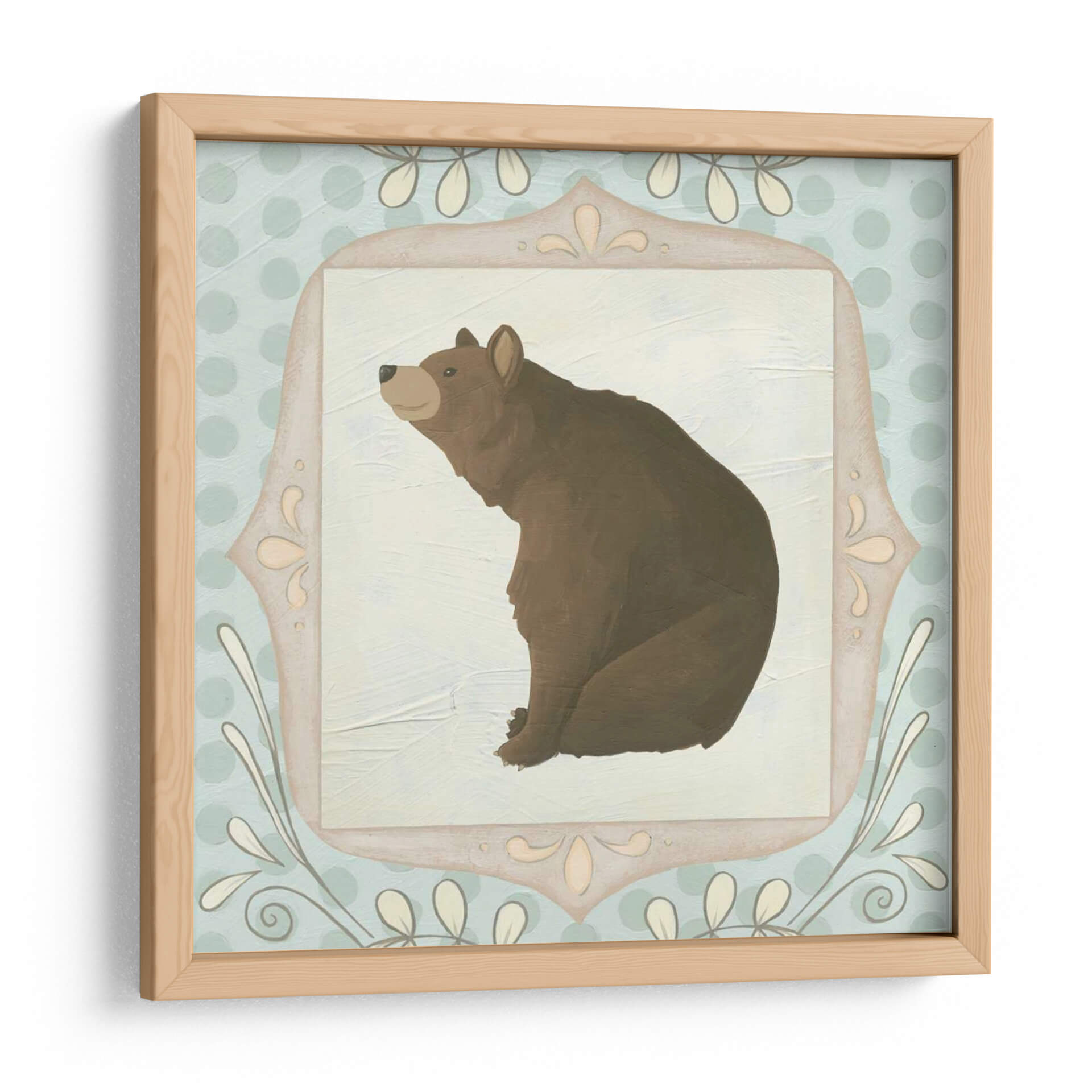 Sumérgete en la serenidad del bosque con "Bosque Del Camafeo VIII", una cautivadora obra de arte de June Erica Vess. Este cuadro decorativo presenta un oso marrón sentado, representado con trazos suaves y una paleta de colores terrosos que evocan la calma de la naturaleza. El fondo texturizado en tonos celestes y menta, salpicado de delicados puntos, junto con un marco ornamental en tonos pastel, crea una atmósfera encantadora y acogedora. La composición, con el oso como protagonista central, irradia una sensación de tranquilidad y conexión con el entorno salvaje. Ideal para añadir un toque de paz y elegancia rústica a tu sala de estar, dormitorio o estudio. Esta pieza es perfecta para amantes de la naturaleza, del arte contemporáneo o para quienes buscan infundir a sus espacios una sensación de sosiego y belleza natural. El estilo único de Vess combina lo figurativo con un toque decorativo, resultando en una obra que es a la vez llamativa y sutilmente reconfortante. Haz de "Bosque Del Camafeo VIII" el centro de atención de tu decoración y siente la armonía del bosque en tu hogar.