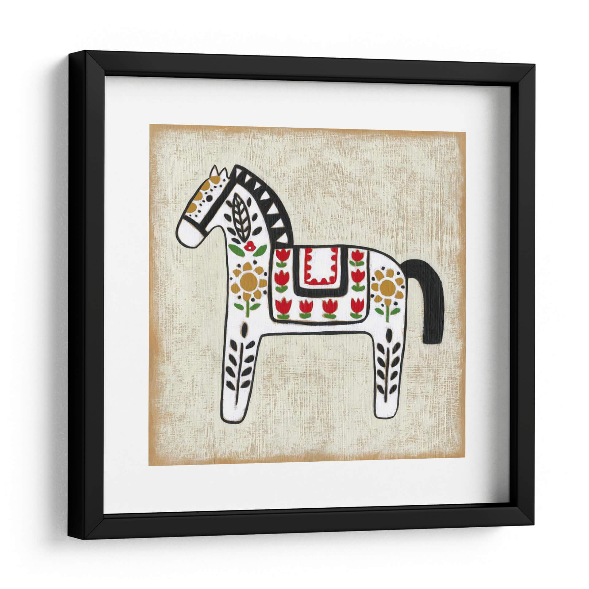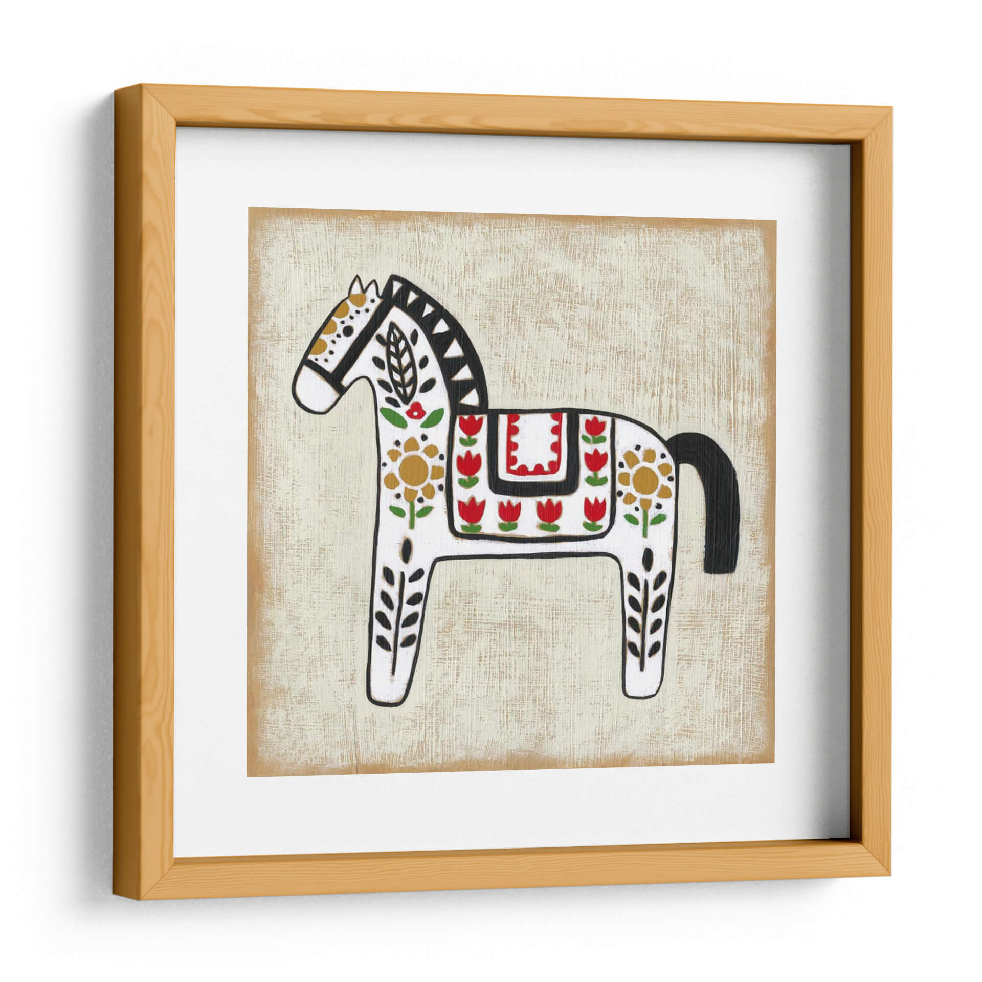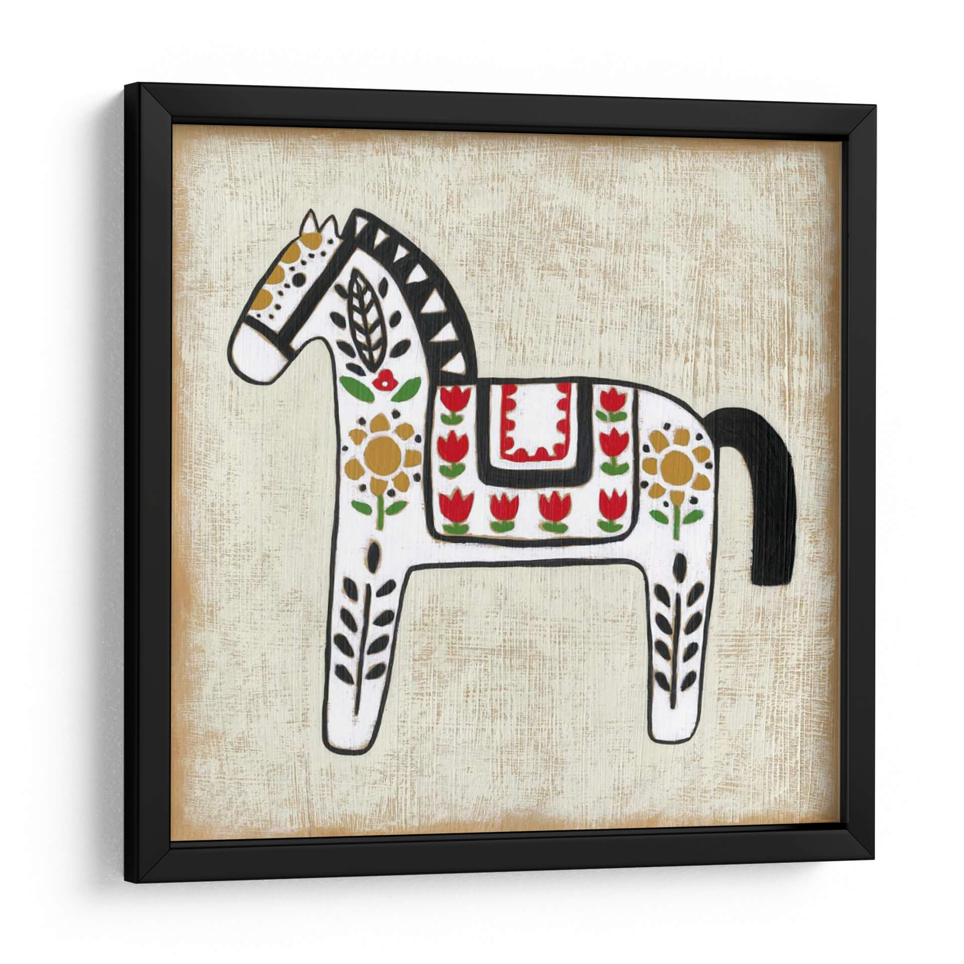 Adéntrate en el encanto rústico y la alegría sencilla con 'Canción Popular II', una obra de arte que evoca la belleza de las tradiciones populares. Este cuadro decorativo presenta un caballo estilizado, adornado con motivos florales y folclóricos en una paleta de colores vibrantes pero armoniosos. Los tulipanes rojos, girasoles amarillos y hojas verdes contrastan elegantemente con el fondo de aspecto desgastado, creando una sensación de calidez y autenticidad. El diseño, con sus líneas definidas y patrones repetitivos, posee una cualidad casi hipnótica que invita a la contemplación. La figura central del caballo, con su mirada serena, transmite una sensación de nobleza y tranquilidad. "Canción Popular II" es ideal para añadir un toque de carácter y color a cualquier espacio, desde una sala de estar acogedora hasta una cocina de estilo campestre o incluso una habitación infantil. Su estilo único lo convierte en un punto focal encantador, capaz de iniciar conversaciones y evocar recuerdos de tiempos pasados o de una conexión con la naturaleza. Esta pieza es perfecta para quienes buscan decorar su hogar u oficina con arte que irradie optimismo y un espíritu libre, un verdadero homenaje a la artesanía y la belleza perdurable.