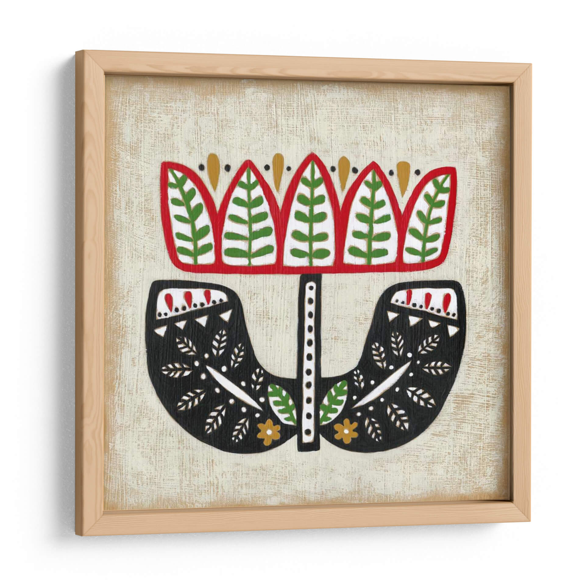 Celebra la vitalidad y el encanto folclórico con "Canción Popular Iv", una cautivadora obra de arte de Chariklia Zarris. Esta pieza evoca una sensación de alegría rústica y un estilo artesanal distintivo, perfecta para añadir un toque de personalidad a cualquier espacio. La composición presenta una flor estilizada con pétalos rojos vibrantes y un interior detallado con hojas verdes, todo ello enmarcado por una base de color negro profundo adornada con motivos delicados y pequeñas flores amarillas. El fondo texturizado, de un suave color crema con vetas que simulan madera desgastada, aporta calidez y un aire bohemio. "Canción Popular Iv" es ideal para crear un punto focal acogedor en una sala de estar, infundir energía en un comedor o añadir un toque de color y originalidad a un dormitorio. Su diseño audaz y su paleta de colores contrastantes la convierten en una elección versátil para decoraciones modernas, rústicas o eclécticas. Descubre la belleza de este cuadro decorativo y transforma tu hogar en un reflejo de tu estilo único. Es una pieza que invita a la conversación y añade una dimensión artística inigualable a tu decoración.
