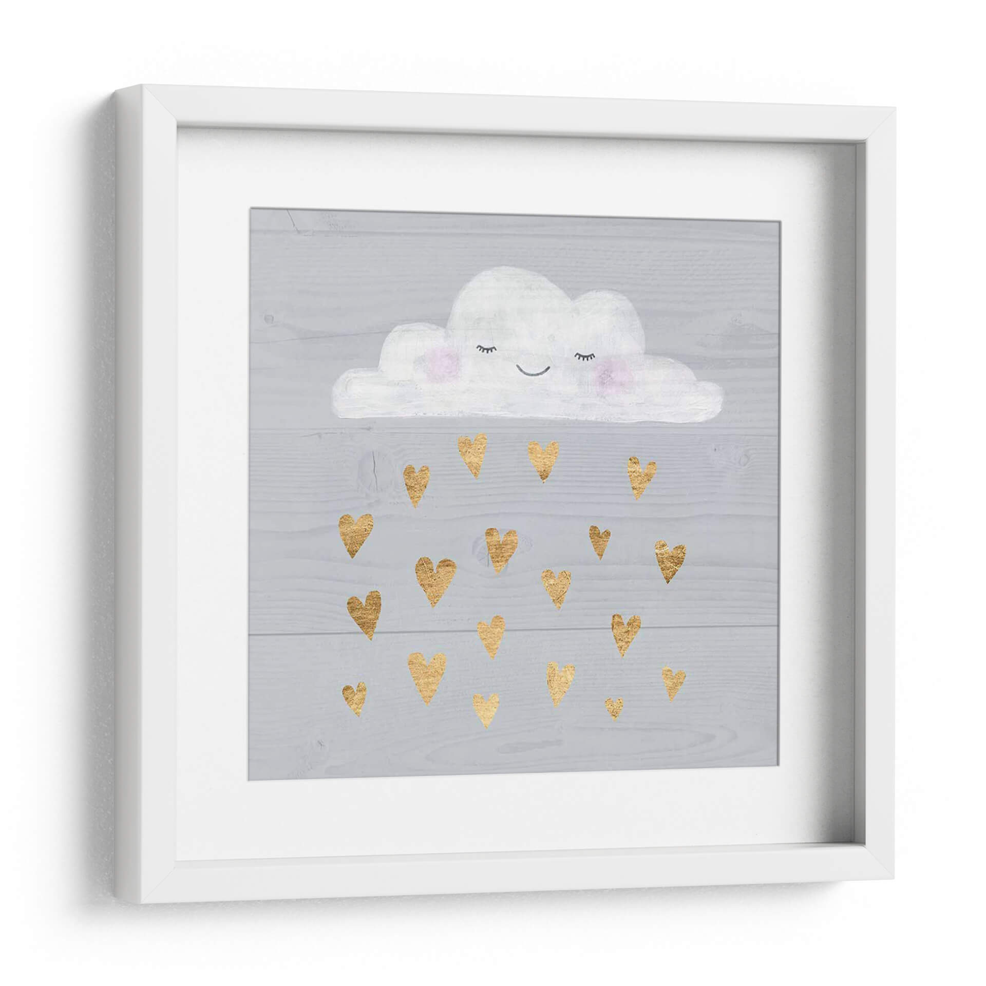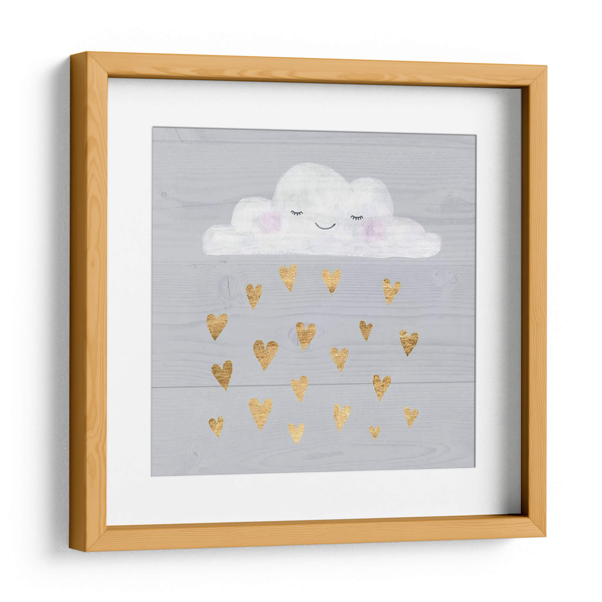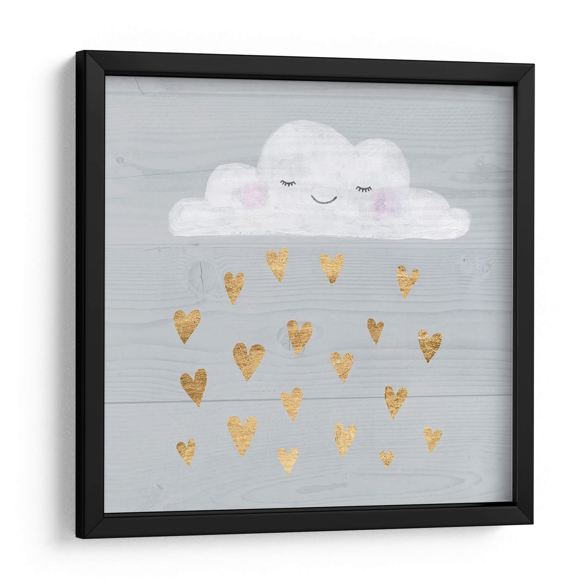 Sumérgete en la ternura y la dulzura con "Dulces Sueños III", una obra de arte que captura la inocencia y la calidez. Esta pieza presenta una encantadora nube sonriente, con mejillas sonrosadas, de la cual caen delicadamente corazones dorados. El fondo, que simula una textura de madera en tonos grises suaves, aporta un toque rústico y sereno a la composición. Los dorados vibrantes de los corazones contrastan maravillosamente con el gris neutro, creando un punto focal lleno de brillo y positividad. El estilo es tierno y soñador, evocando sentimientos de amor, paz y felicidad. "Dulces Sueños III" es ideal para añadir un toque de encanto y tranquilidad a habitaciones infantiles, dormitorios principales o cualquier espacio que necesite una dosis de alegría y serenidad. Esta pieza decorativa es perfecta para quienes buscan arte con alma, capaz de transformar un ambiente y transmitir emociones positivas, convirtiéndose en un recordatorio constante de los momentos más dulces de la vida. Un cuadro que ilumina y acaricia, invitando a la ensoñación.