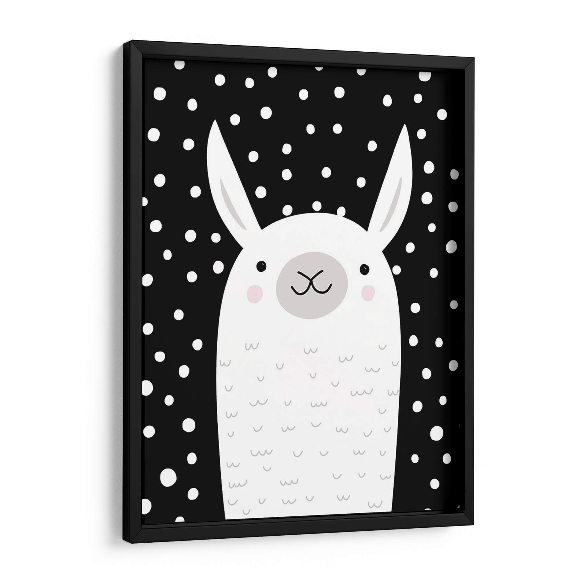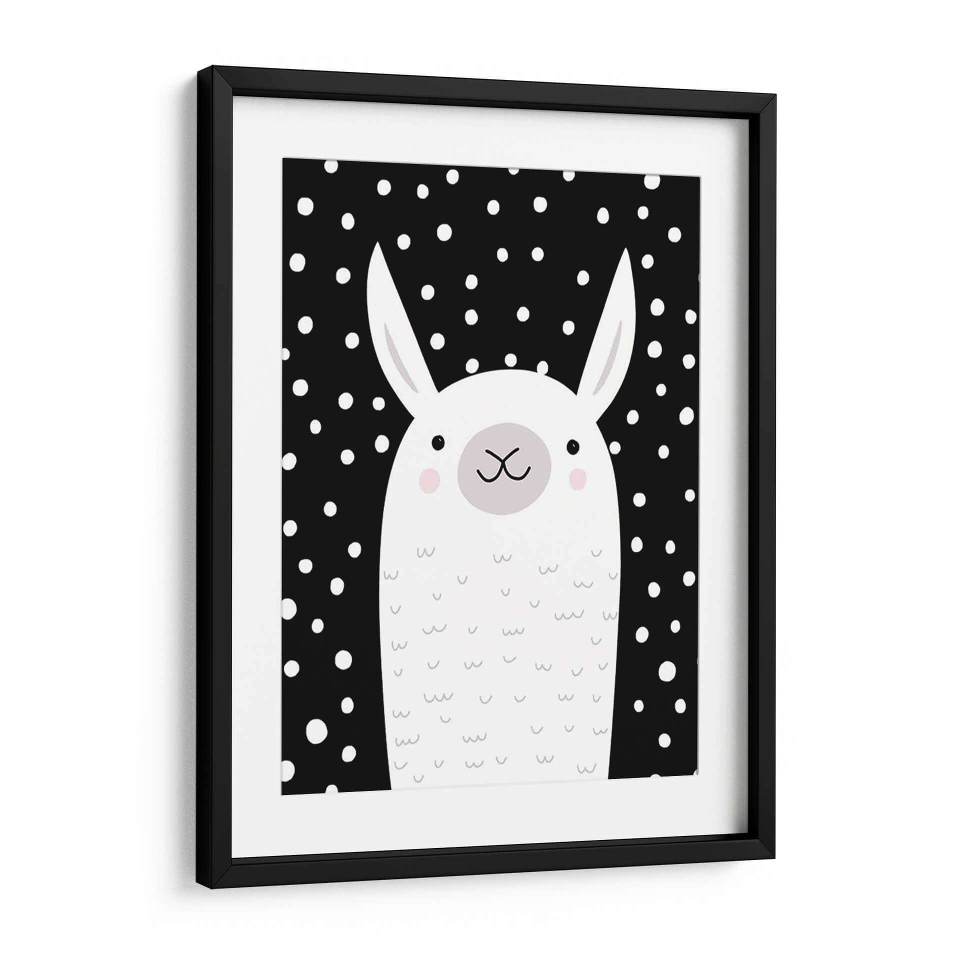 Transforma cualquier espacio con este encantador cuadro decorativo 'Mezclar Y Combinar Animales Vi' de Victoria Borges. La obra presenta un diseño audaz y minimalista, centrado en la figura de una llama blanca sobre un fondo negro salpicado de lunares blancos. Los suaves toques de color rosa en las mejillas y el rostro gris de la llama añaden una calidez inesperada a la composición monocromática. El estilo lúdico y la expresión amable del animal invitan a una sonrisa, creando una atmósfera de alegría y sencillez. Esta pieza es perfecta para añadir un toque de personalidad y diversión a habitaciones infantiles, salas de estar modernas, o incluso oficinas que buscan un ambiente más relajado y creativo. La técnica de ilustración digital se combina con una estética contemporánea para crear una obra que es a la vez llamativa y fácil de integrar en diversas decoraciones. Ideal para quienes buscan arte que celebre la naturaleza con un giro artístico único y moderno, este cuadro decorativo es una elección excepcional para inyectar carácter y estilo en tu hogar.