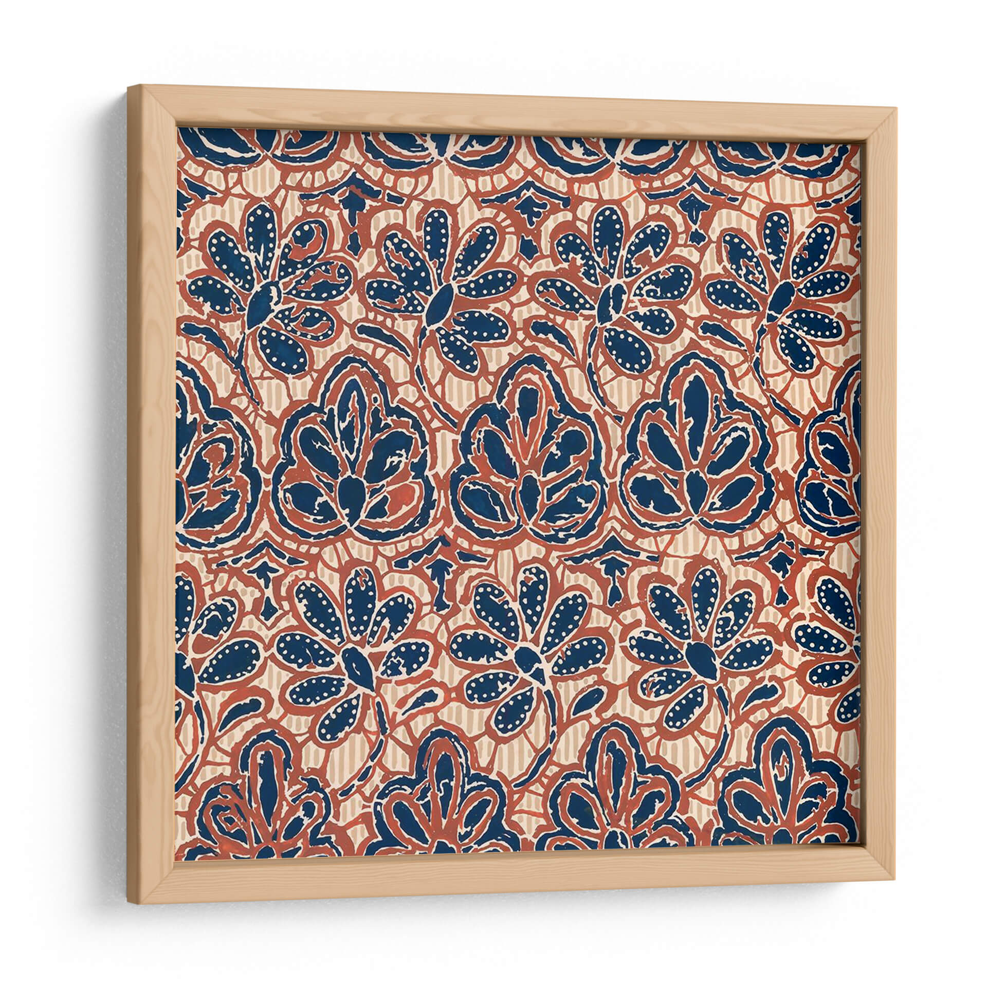 Adéntrate en la riqueza cultural de "Batik III Indonesio", una obra de arte que captura la esencia del arte tradicional con un toque contemporáneo. Este cuadro decorativo presenta un intrincado patrón floral en tonos tierra y azul índigo, evoca la calidez de la artesanía indonesia. Las flores estilizadas y los motivos ornamentales, delineados con un trazo audaz, crean una textura visual cautivadora sobre un fondo que recuerda a las telas artesanales. La composición, repetitiva y armoniosa, genera una sensación de orden y fluidez, perfecta para añadir un toque de sofisticación natural a cualquier estancia. Ideal para espacios que buscan una conexión con la naturaleza y las tradiciones, este lienzo es un acento perfecto para salones, dormitorios o estudios que deseen una atmósfera serena pero con carácter. La paleta de colores, inspirada en la tierra y el cielo nocturno, aporta profundidad y calidez, integrándose fácilmente en diversas decoraciones. Descubre la belleza atemporal de "Batik III Indonesio" y transforma tu hogar en un santuario de estilo y cultura.