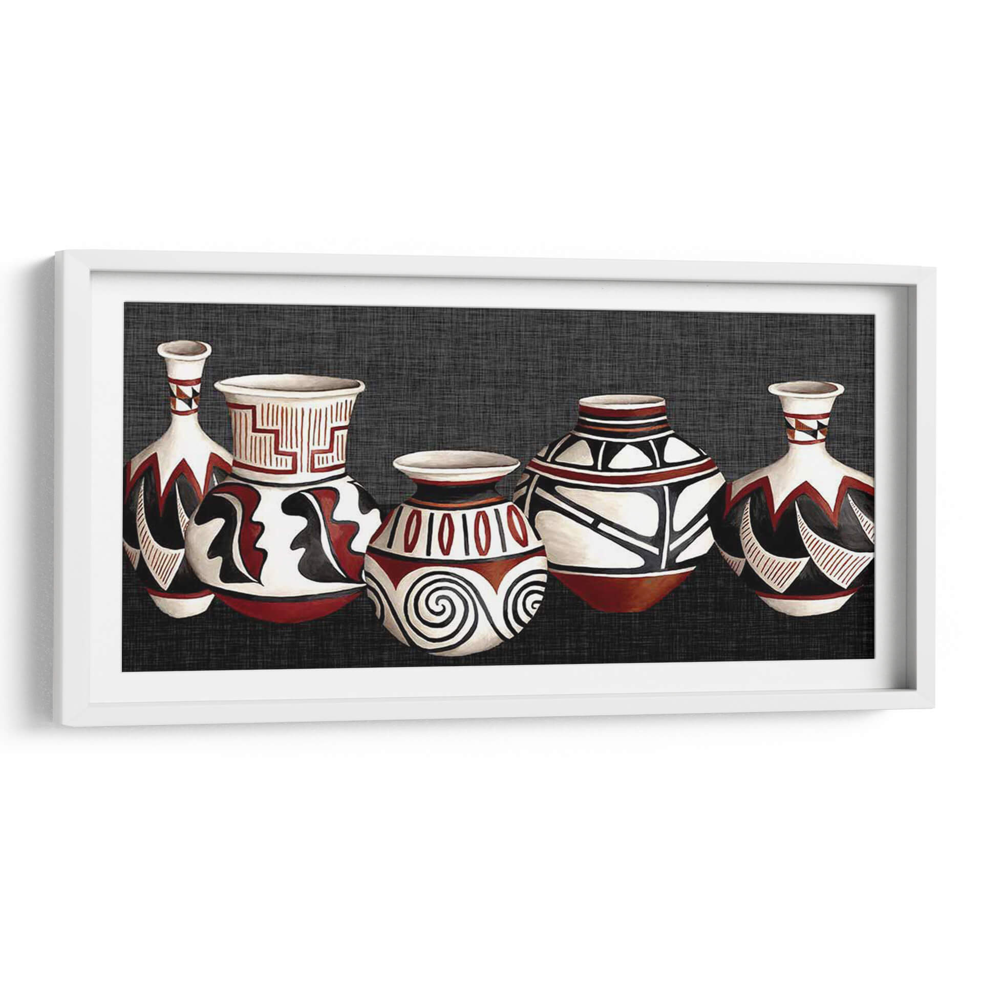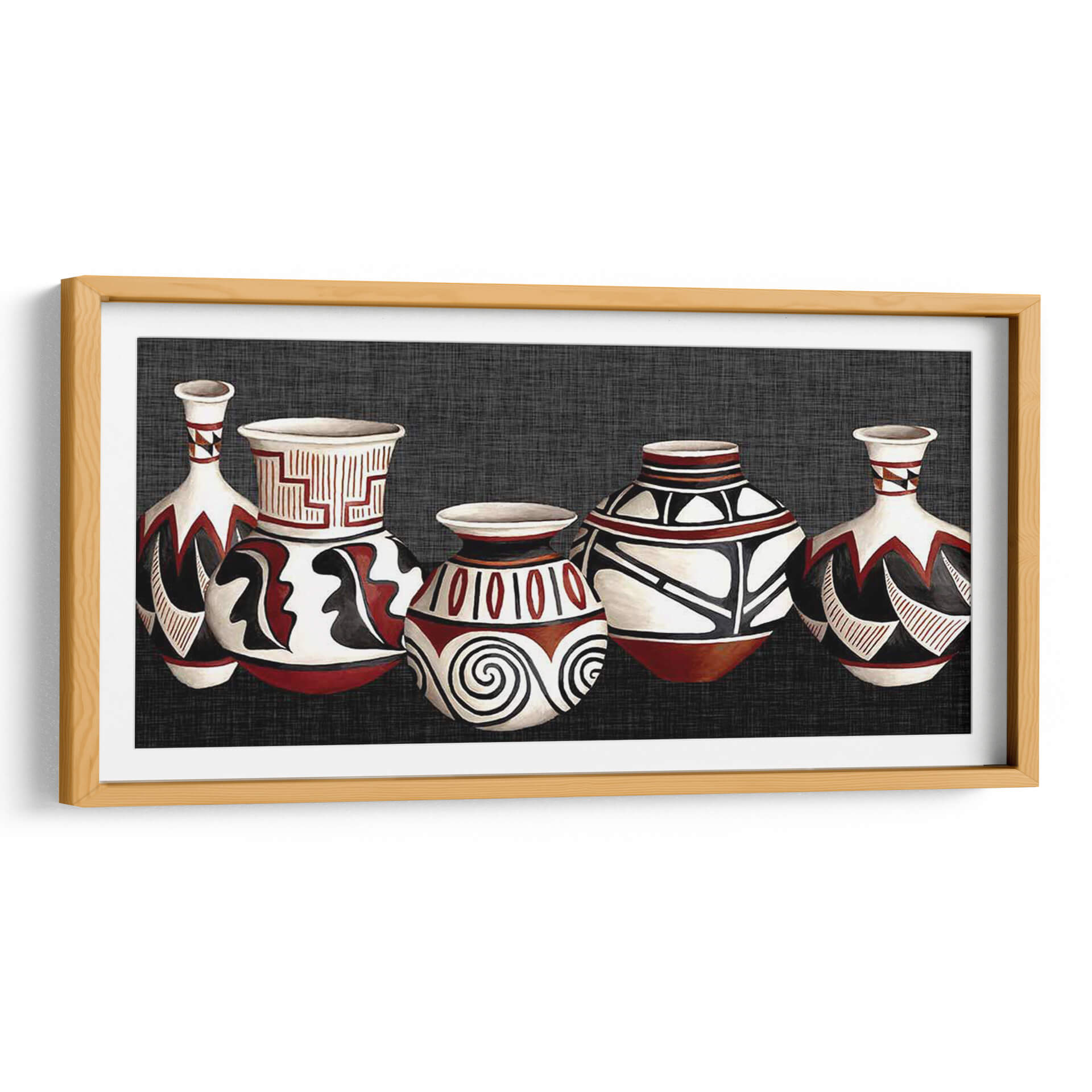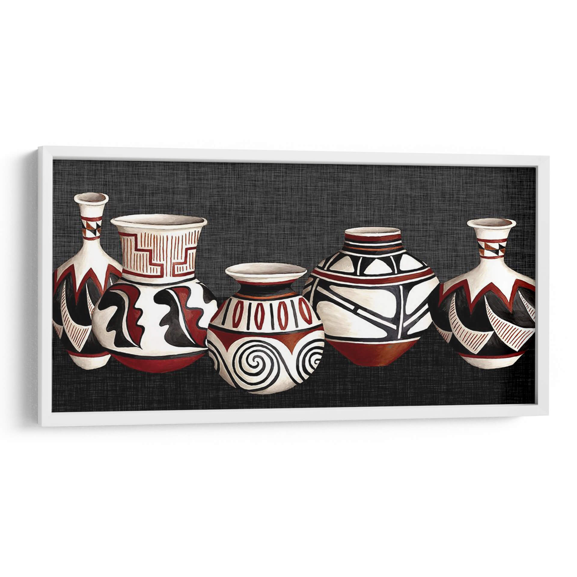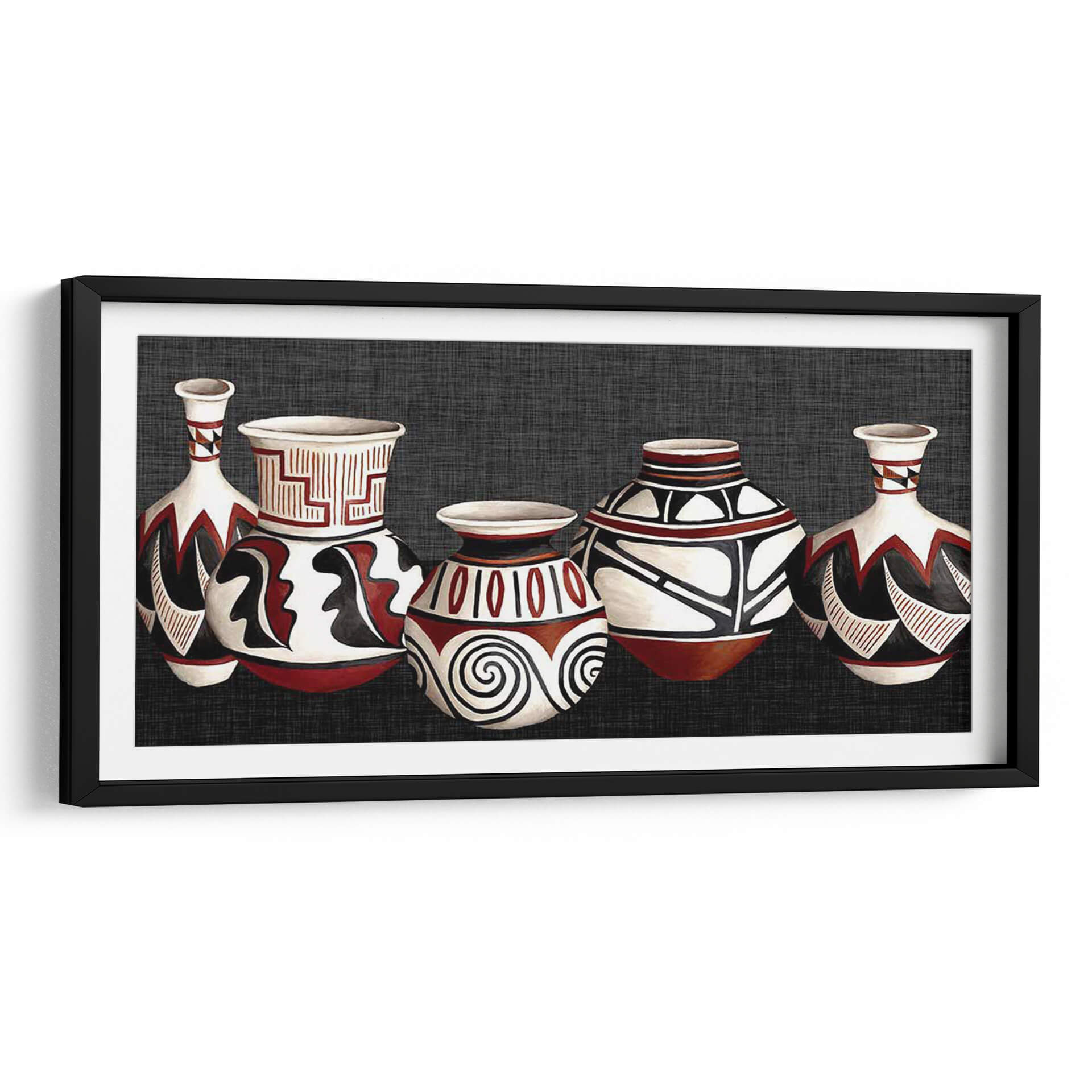 Sumérgete en la rica herencia cultural con "Cerámica Mexicana", una obra de arte decorativo que captura la esencia de la artesanía tradicional. Esta pieza presenta una cautivadora colección de vasijas, cada una adornada con intrincados patrones geométricos y motivos abstractos en una paleta de colores cálidos y terrosos, contrastando con el negro profundo del fondo. Los tonos rojos, blancos y marrones se entrelazan para crear una composición visualmente impactante que evoca autenticidad y calidez. El estilo detallado y la disposición equilibrada de las vasijas aportan un toque de sofisticación rústica, ideal para espacios que buscan una conexión con la historia y la identidad cultural. Este cuadro decorativo es perfecto para añadir carácter y un punto focal único a salas de estar, comedores o estudios, creando un ambiente acogedor y lleno de significado. Su diseño atemporal lo convierte en una elección excepcional para quienes aprecian el arte con alma y la belleza de las tradiciones artesanales.