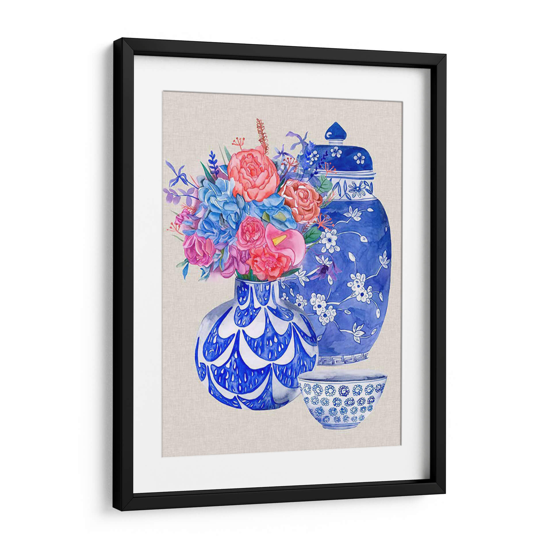 Embárcate en un viaje visual con "Delft Blue Vases I", una exquisita obra de arte de Melissa Wang que captura la elegancia atemporal de la cerámica china y la delicadeza de un vibrante ramo de flores. Esta pieza, caracterizada por su estilo de acuarela, presenta jarrones en el icónico azul de Delft, adornados con intrincados patrones florales y motivos geométricos, que contrastan maravillosamente con la explosión de color del arreglo floral. Los tonos rosados, corales y azules de las flores estallan contra el fondo neutro, creando un punto focal cautivador. La composición, con su juego de formas curvas y detalles delicados, evoca una sensación de calma y sofisticación. Ideal para espacios que buscan un toque de clasicismo moderno, este cuadro decorativo es perfecto para añadir serenidad a un dormitorio, un toque de distinción a una sala de estar o un acento de color vibrante a una oficina. "Delft Blue Vases I" no es solo una decoración; es una invitación a la belleza, la tradición y la expresión artística contemporánea, perfecta para quienes aprecian el arte que narra historias y evoca emociones.
