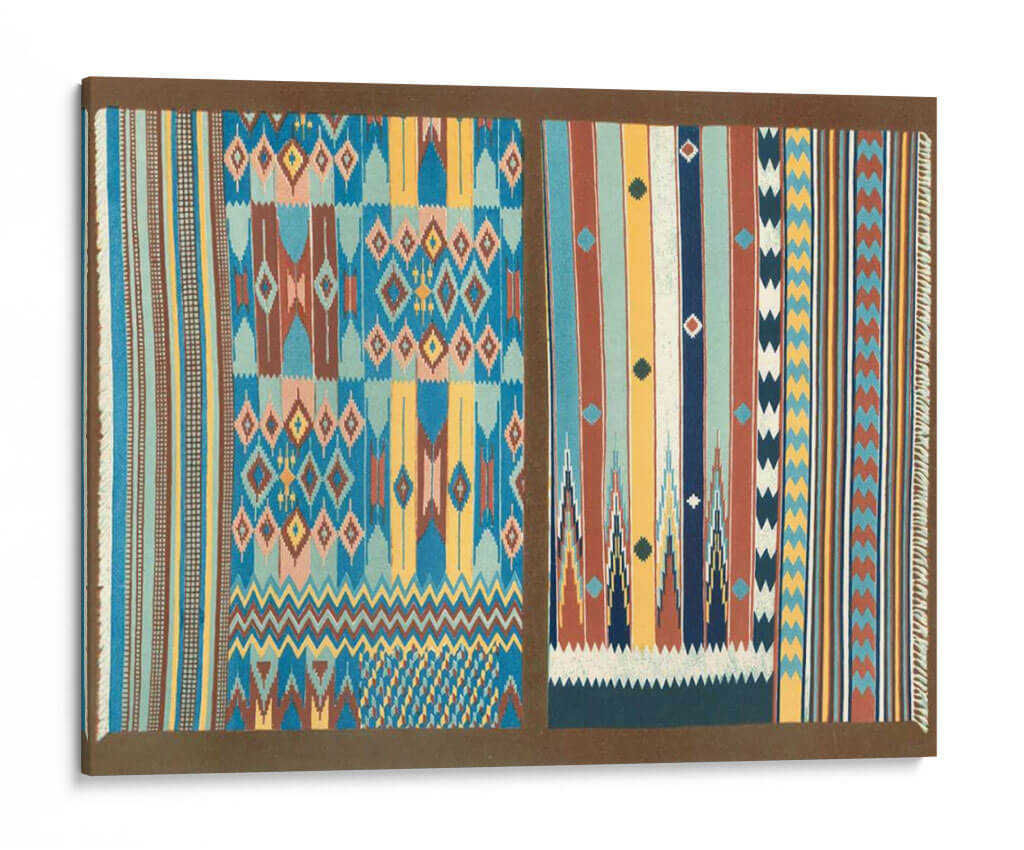 Sumérgete en la rica tradición textil de la India con este vibrante cuadro decorativo. La obra 'Diseño de Alfombras de la India' de J.B. Waring es una celebración de patrones geométricos intrincados y una paleta de colores audaz que evoca la calidez y la energía de la cultura oriental. Cada sección del diseño presenta una composición única, desde las bandas verticales con motivos de diamantes y zigzags hasta las franjas de colores vivos que recuerdan a las textiles artesanales. Los tonos tierra, azules profundos, amarillos solares y rojos cobrizos se entrelazan para crear una pieza visualmente cautivadora que aportará carácter y un toque exótico a cualquier espacio. Este cuadro decorativo es ideal para salones, comedores o estudios que buscan un acento de color y un punto de interés cultural. Su estilo, que fusiona la precisión geométrica con la vitalidad de los diseños tradicionales, lo convierte en una adición excepcional para interiores contemporáneos o de inspiración étnica. Transforma tu hogar con la belleza atemporal de los diseños indios y añade un toque de arte único y lleno de historia.