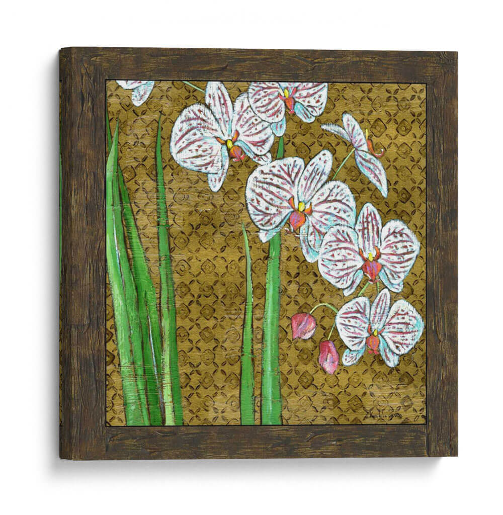 Sumérgete en la belleza exótica de "Exótico Jardín II", una obra de arte cautivadora que trae la delicadeza de las orquídeas a tu espacio. La pieza presenta un vibrante despliegue de orquídeas blancas con intrincados detalles en tonos rojizos y azules, contrastando elegantemente con el fondo texturizado en tonos dorados y ocres. Las hojas verdes intensas aportan un toque de frescura y vitalidad, creando una composición equilibrada y armoniosa. El estilo artístico, que combina elementos botánicos realistas con una pincelada expresiva, evoca una sensación de calma y sofisticación. Esta obra es perfecta para quienes buscan añadir un elemento de naturaleza refinada a su decoración, ya sea en un salón moderno, un dormitorio sereno o una oficina que necesite un toque de color y vida. "Exótico Jardín II" no es solo una decoración, sino una invitación a la contemplación y al disfrute de la belleza floral en su máxima expresión, capturada magistralmente por Chariklia Zarris. Su riqueza cromática y detalle la convierten en un punto focal ideal para cualquier ambiente, aportando elegancia y un aire de tranquilidad atemporal.