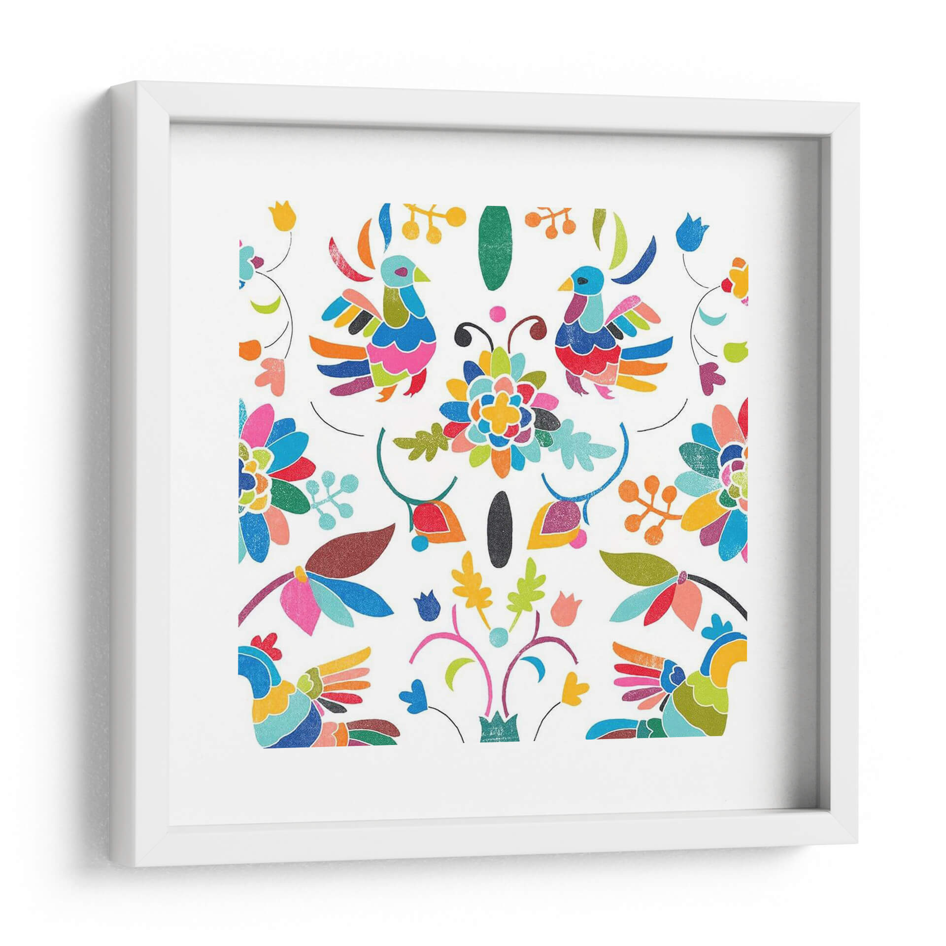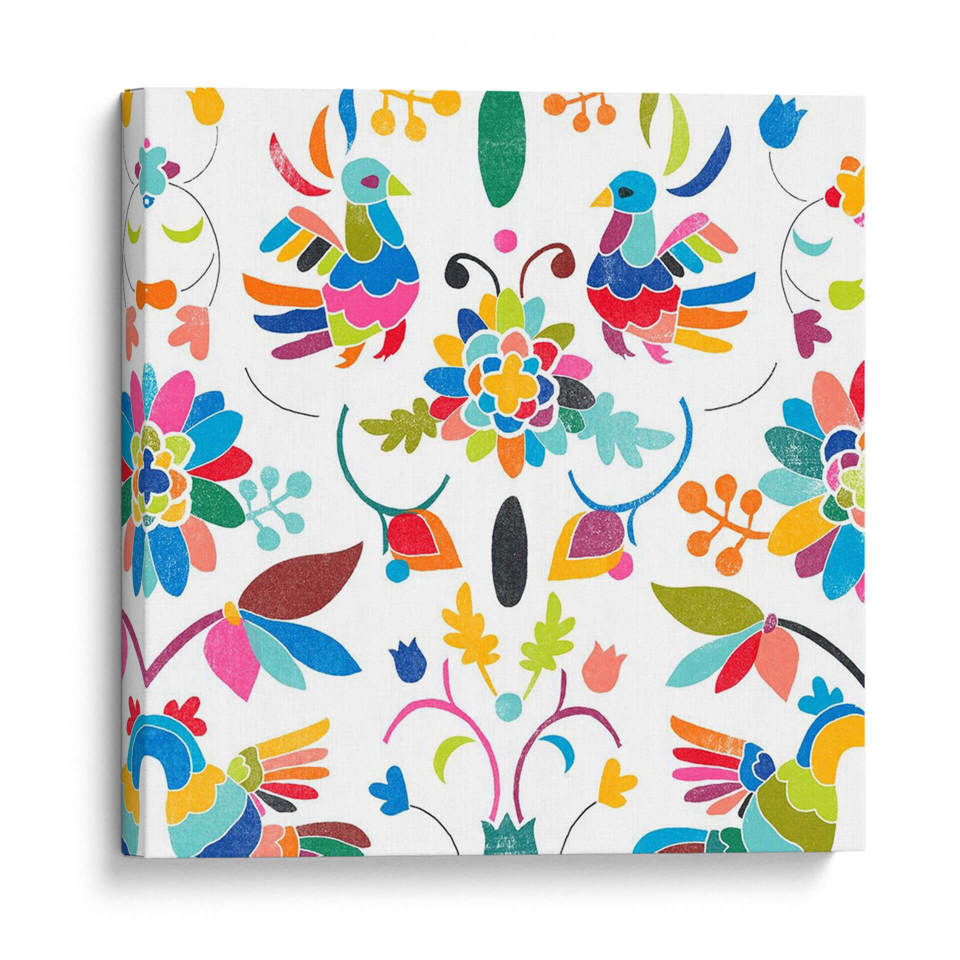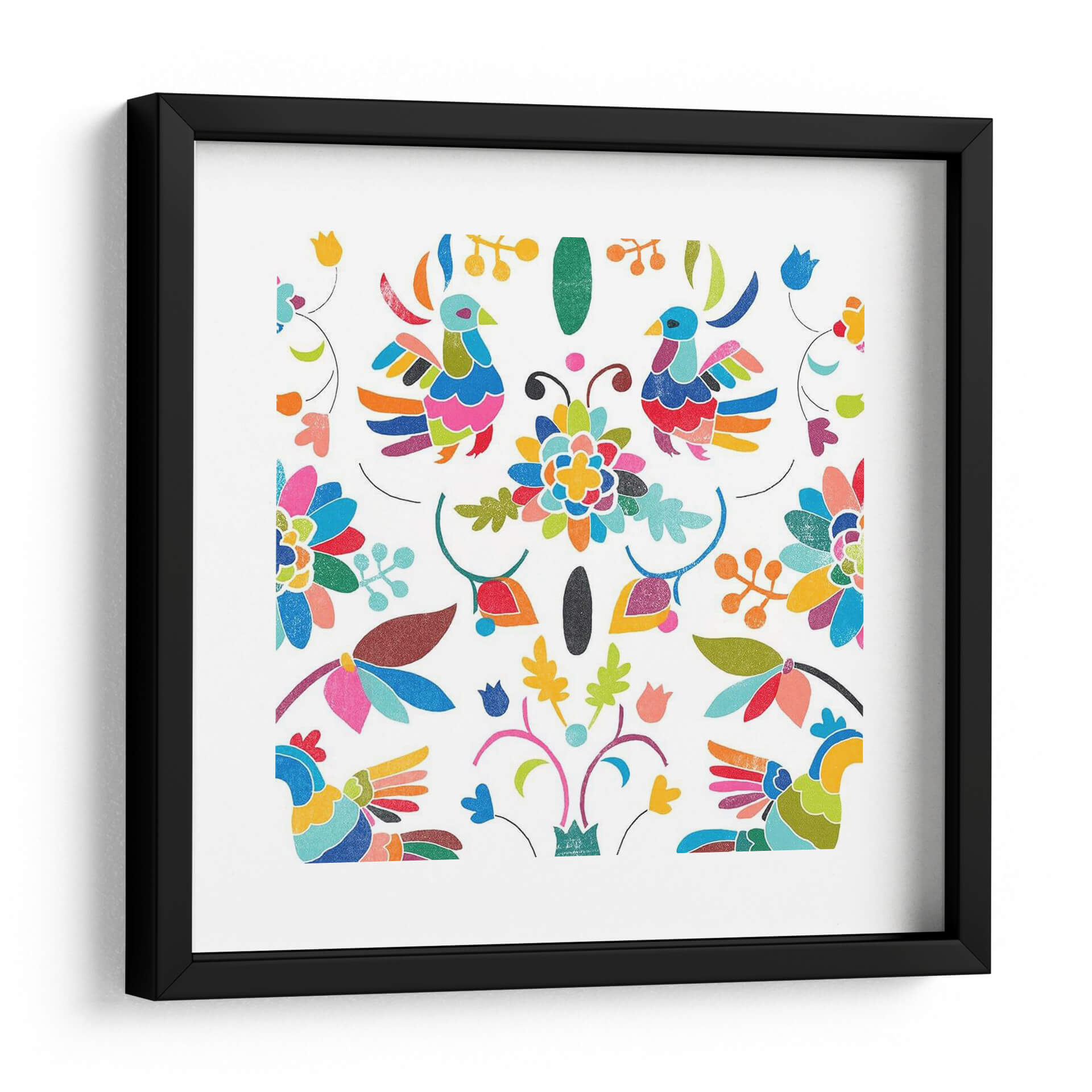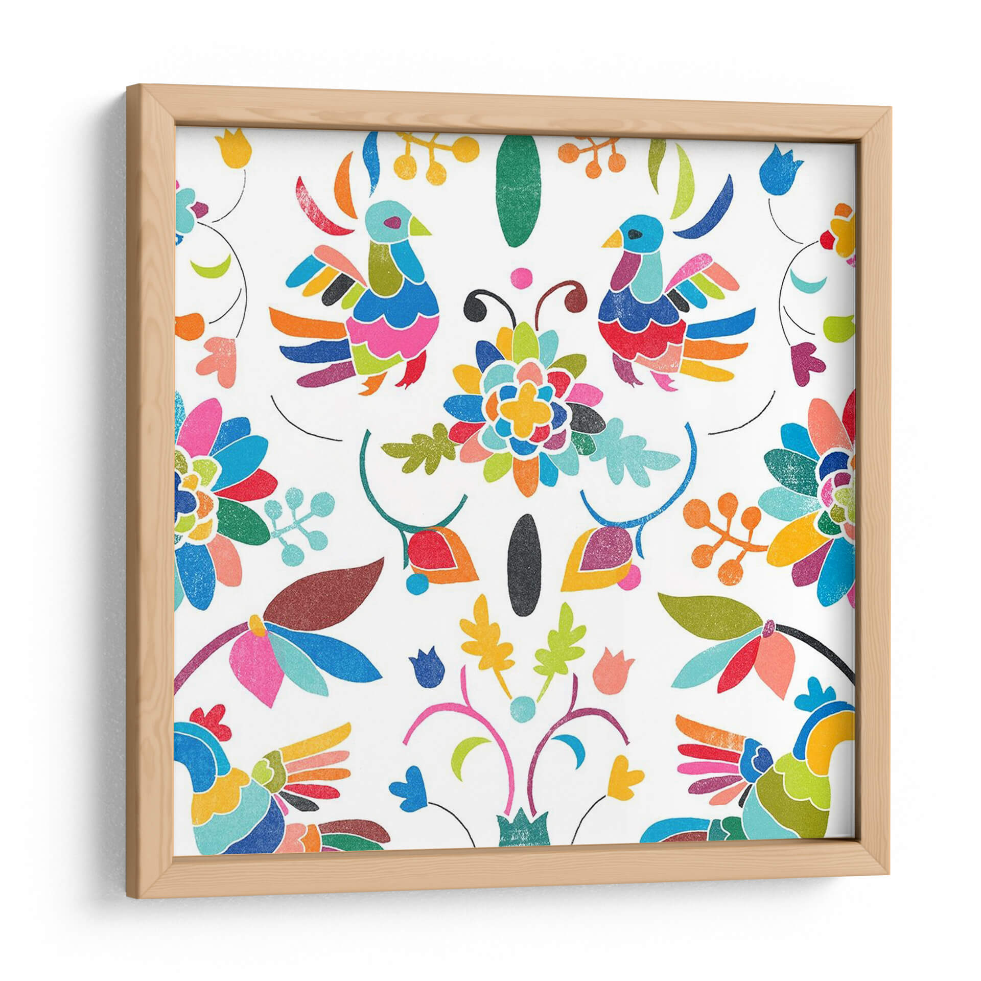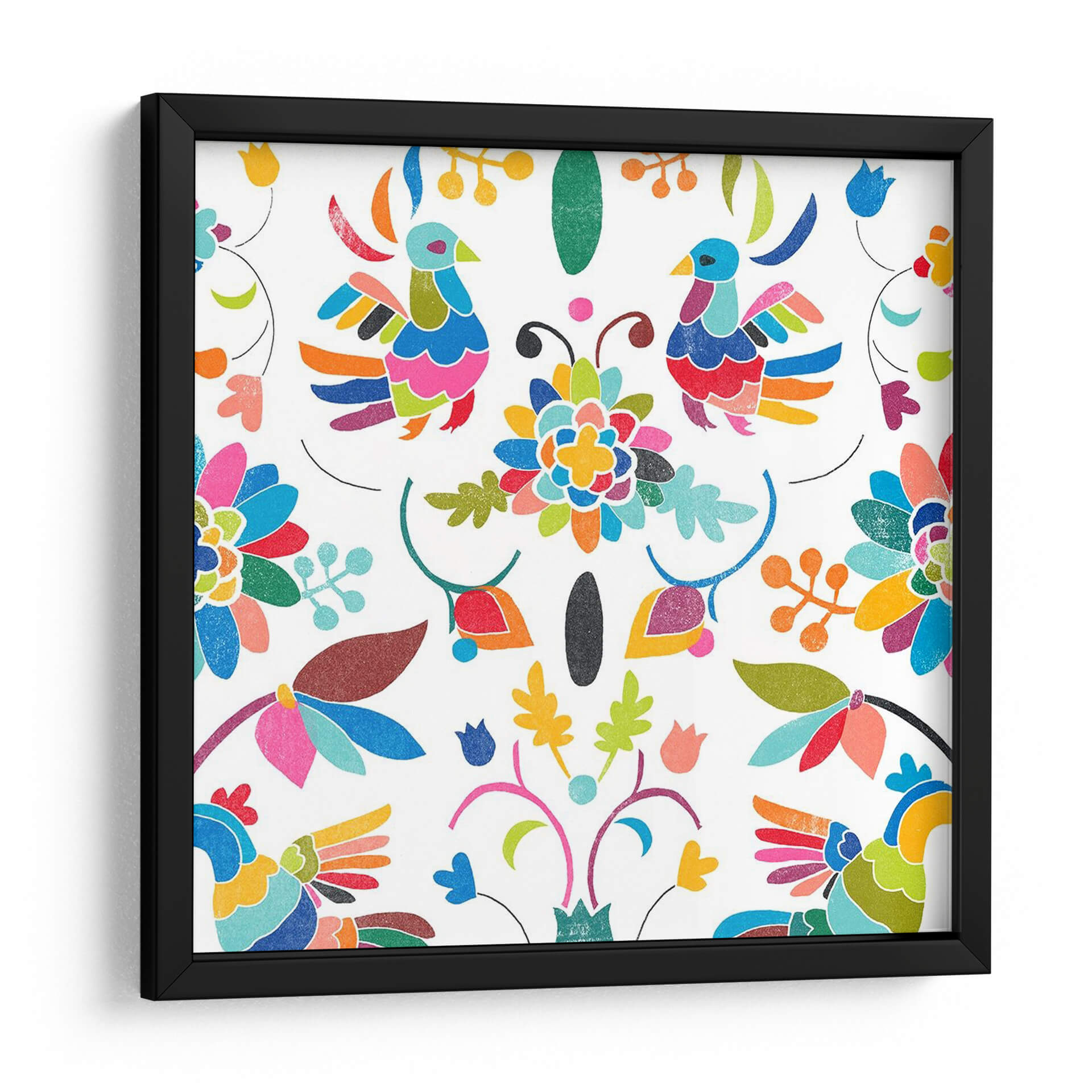 Sumérgete en la vibrante y alegre obra de arte "Folklorica II" de June Erica Vess. Este cautivador cuadro decorativo es una explosión de color y fantasía, presentando un diseño intrincado con aves estilizadas y motivos florales que evocan la riqueza del folclore y la artesanía popular. La paleta de colores es exuberante y audaz, con tonos vibrantes de azul, rosa, naranja, amarillo y verde que danzan sobre un fondo blanco nítido, creando un contraste dinámico y lleno de vida. Cada elemento, desde las plumas detalladas de las aves hasta los pétalos de las flores, está ejecutado con un estilo que recuerda a las técnicas de grabado o estampado, aportando una textura visual única y un encanto artesanal. La composición, aunque detallada, mantiene un equilibrio visual armonioso, distribuyendo los elementos de forma rítmica y atractiva. "Folklorica II" es una pieza perfecta para inyectar personalidad y un toque de optimismo en cualquier espacio. Ideal para salones modernos, recibidores o incluso para dar vida a una oficina, este cuadro decorativo transformará tus paredes en una galería de arte llena de alegría y carácter. Su estilo único lo convierte en un punto focal que atrae miradas y genera conversaciones, una invitación a celebrar la belleza de lo cotidiano a través del arte.