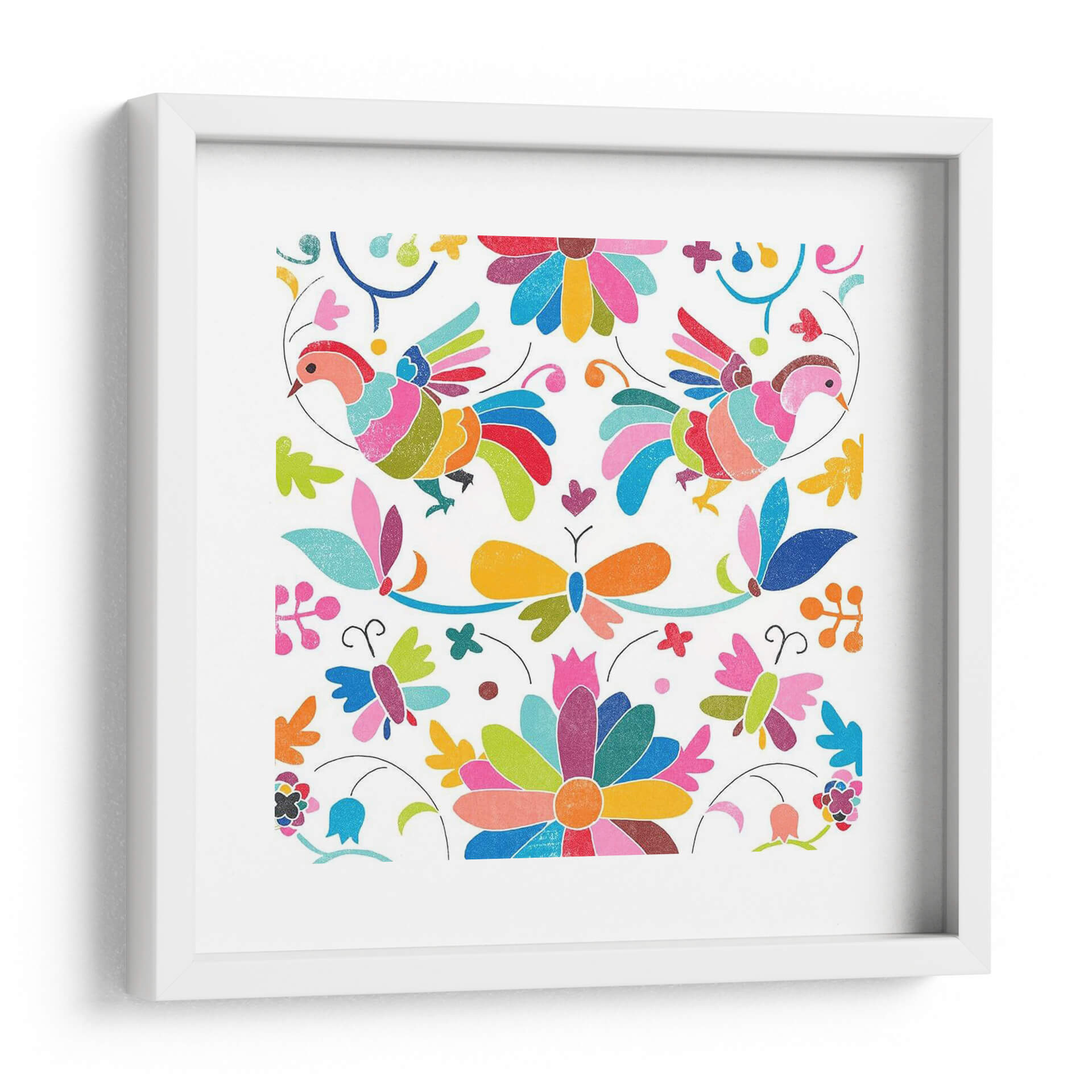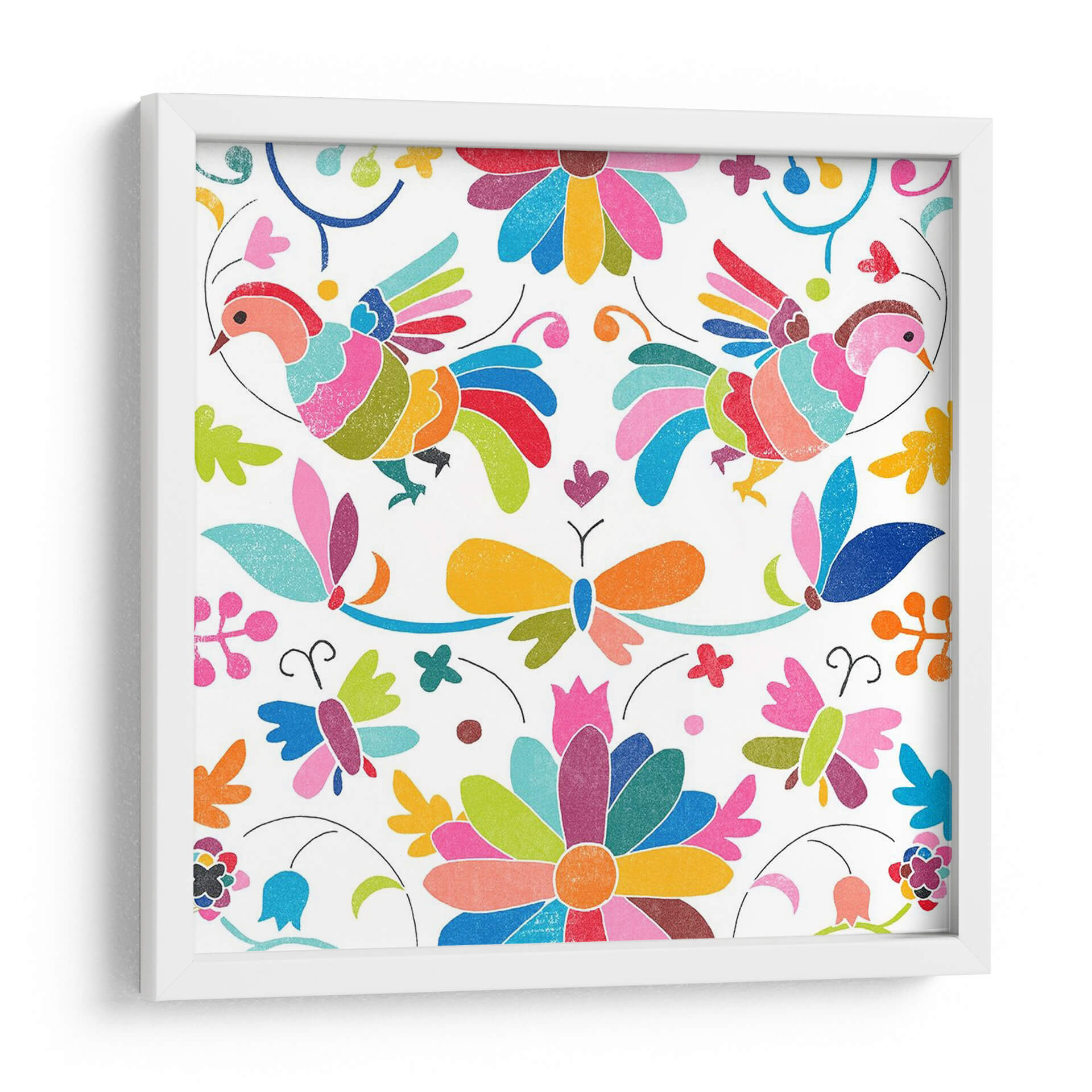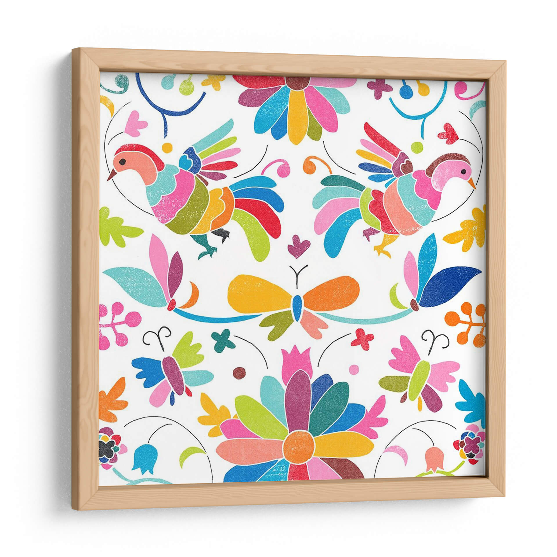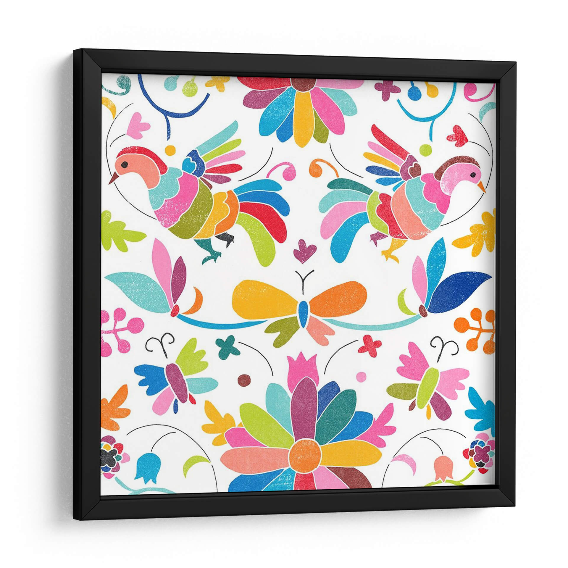 Sumérgete en la alegría y la vitalidad de "Folklorica Iv", una obra de arte cautivadora de June Erica Vess que irradia un espíritu lúdico y festivo. Este cuadro decorativo presenta un diseño vibrante y lleno de color, inspirado en la rica tradición folclórica, con representaciones estilizadas de pájaros y mariposas en pleno vuelo, rodeados de flores exuberantes y elementos botánicos juguetones. La paleta de colores es una explosión de alegría, con tonos intensos como el rojo, azul, verde, amarillo y rosa, que crean un contraste dinámico sobre un fondo blanco limpio. Cada elemento está ejecutado con trazos audaces y texturas sutiles, que le confieren una profundidad y un carácter únicos. La composición, aunque simétrica y armoniosa, está llena de movimiento y energía, invitando a la contemplación y al disfrute visual. "Folklorica Iv" es la pieza perfecta para inyectar vida y personalidad a cualquier espacio, desde una sala de estar moderna hasta un dormitorio acogedor o una oficina creativa. Su diseño alegre y optimista es ideal para aquellos que buscan añadir un toque de color y un aire de celebración a su decoración, creando un ambiente positivo y estimulante. Transforma tu hogar con este cuadro decorativo que celebra la belleza de la naturaleza y la cultura popular de una manera contemporánea y artística.