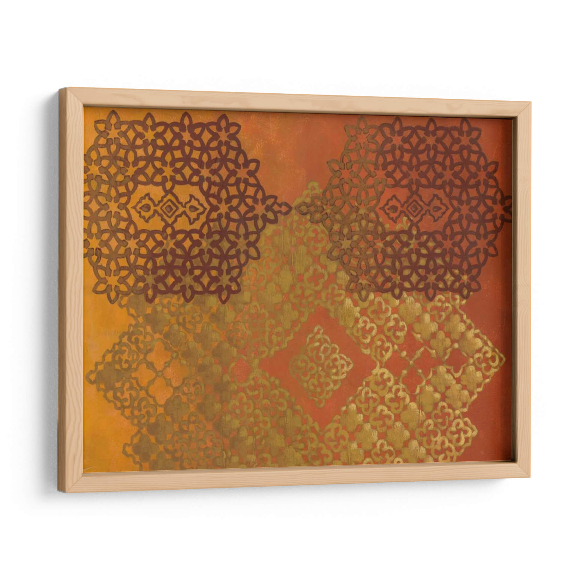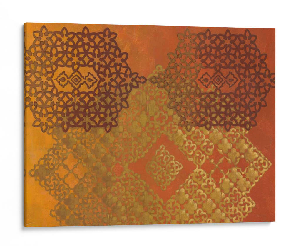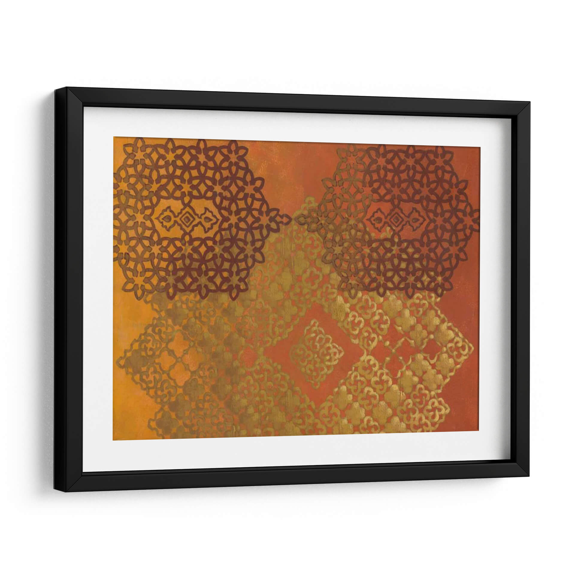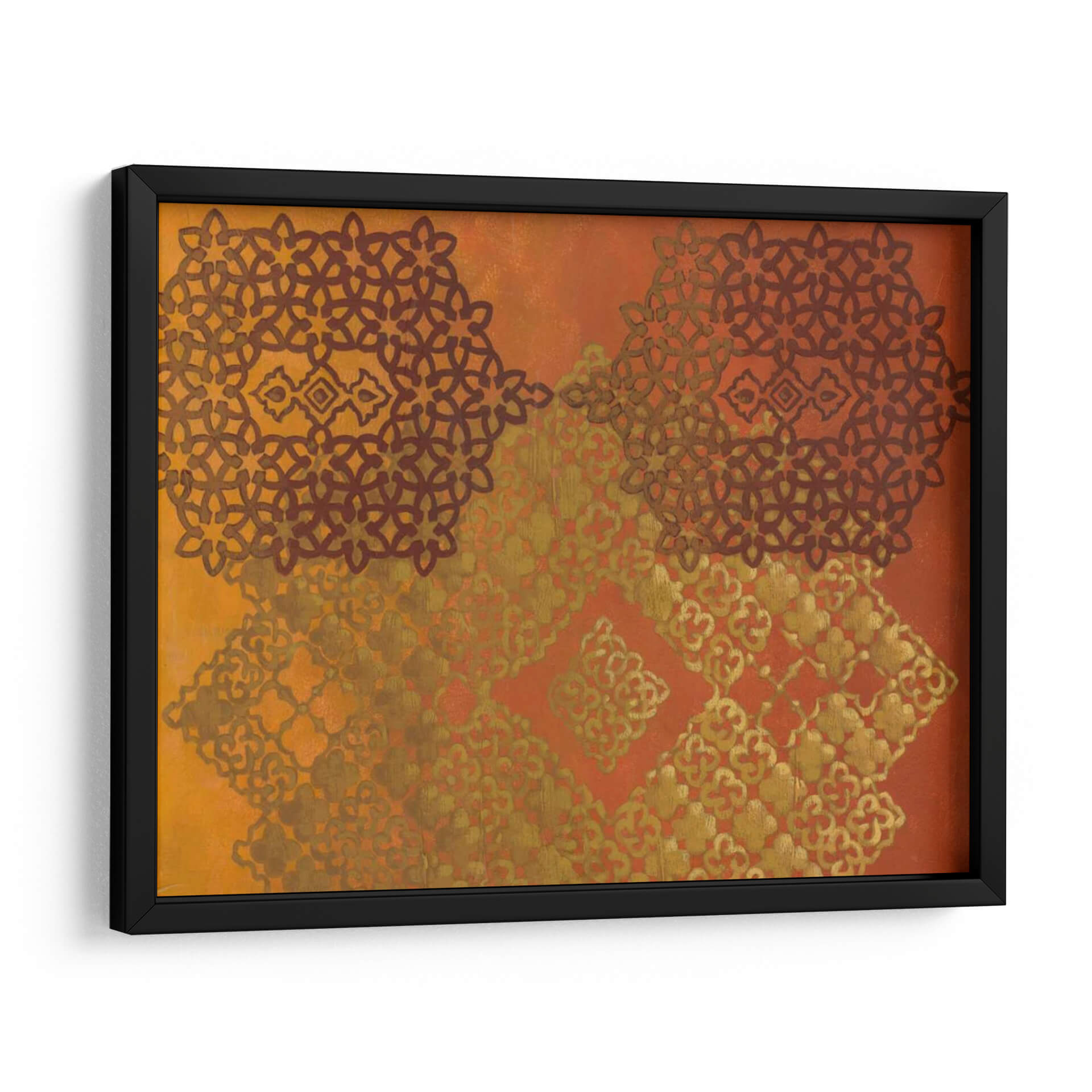 Embellece tu hogar con la cautivadora obra de arte 'Henna II De Oro' de Chariklia Zarris. Esta pieza abstracta fusiona intrincados patrones geométricos en tonos dorados y terracota, creando una sensación de calidez y sofisticación. Los detalles delicados y la paleta de colores terrosos, que van desde el ocre vibrante hasta el marrón profundo, evocan una atmósfera acogedora y rica. La composición presenta una superposición de motivos inspirados en el arte de la henna, con formas circulares y romboidales que se entrelazan de manera armoniosa. El estilo contemporáneo y la ejecución magistral de Zarris aportan una dimensión única a cualquier espacio. Ideal para quienes buscan añadir un toque de elegancia bohemia o un acento exótico a su sala de estar, dormitorio u oficina. Este cuadro decorativo es una invitación a la contemplación y un reflejo de la belleza atemporal. Transforma tus paredes en un lienzo de expresión y estilo con esta obra maestra.