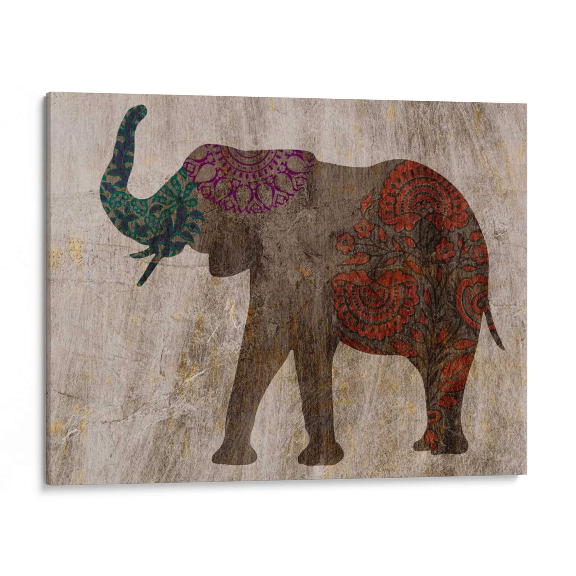 Sumérgete en la majestuosidad y el simbolismo de 'Icono Atesorado II', una obra de arte contemporáneo de Sharon Chandler que fusiona la fuerza de la naturaleza con patrones intrincados. Este cuadro decorativo presenta la silueta icónica de un elefante, reimaginada con texturas ricas y colores vibrantes. El fondo texturizado, con matices terrosos y toques dorados, evoca una sensación de antigüedad y profundidad, contrastando bellamente con los detalles ornamentales que adornan el cuerpo del elefante. Los patrones de inspiración oriental en tonos verde esmeralda, morado y rojo carmesí añaden un toque exótico y espiritual a la pieza, creando un impacto visual fascinante. La composición central y el estilo distintivo de Chandler hacen de esta obra un punto focal ideal para cualquier espacio que busque un toque de elegancia y misticismo. Es una pieza que invita a la contemplación, perfecta para salas de estar modernas, estudios de yoga o cualquier rincón donde desees infundir calma y belleza.