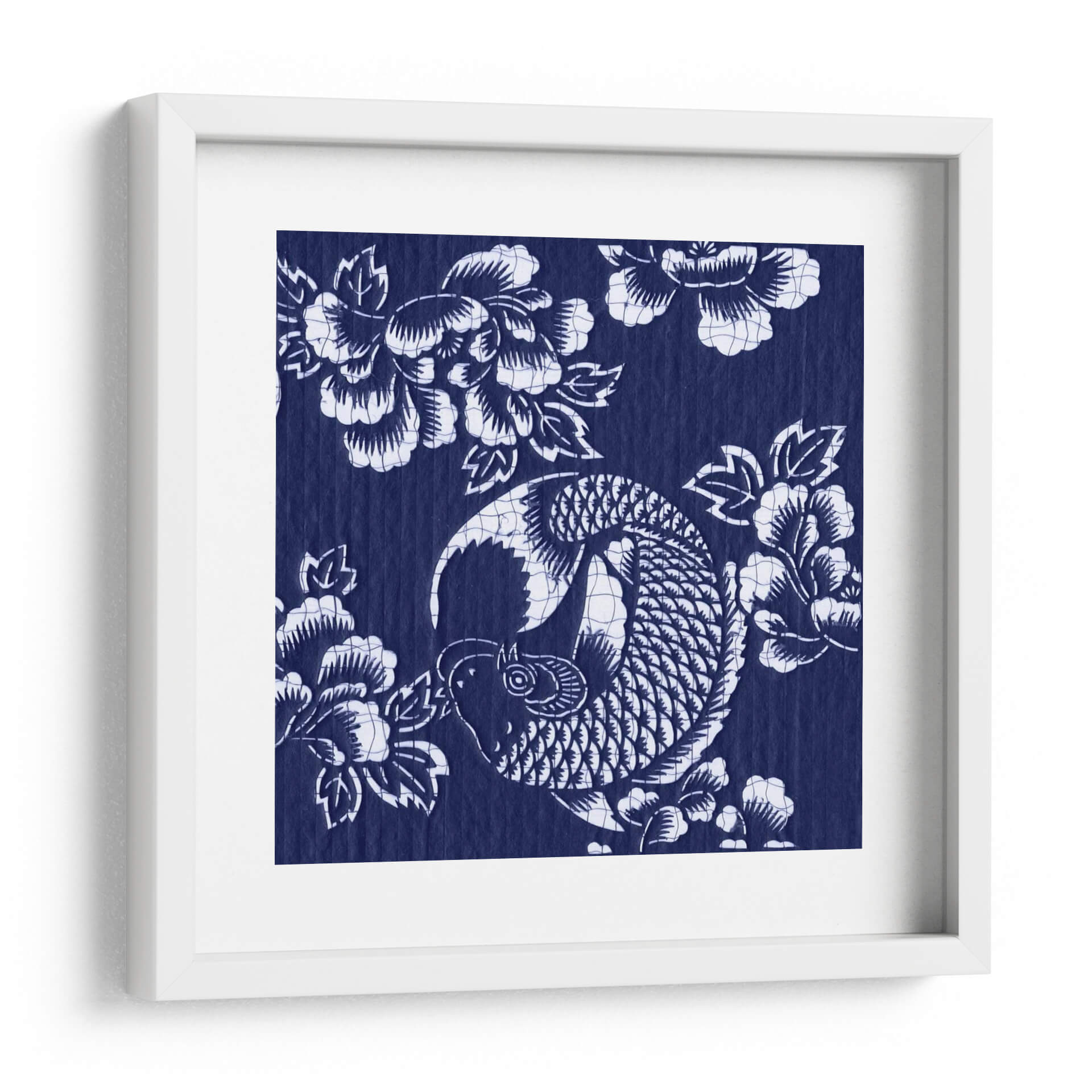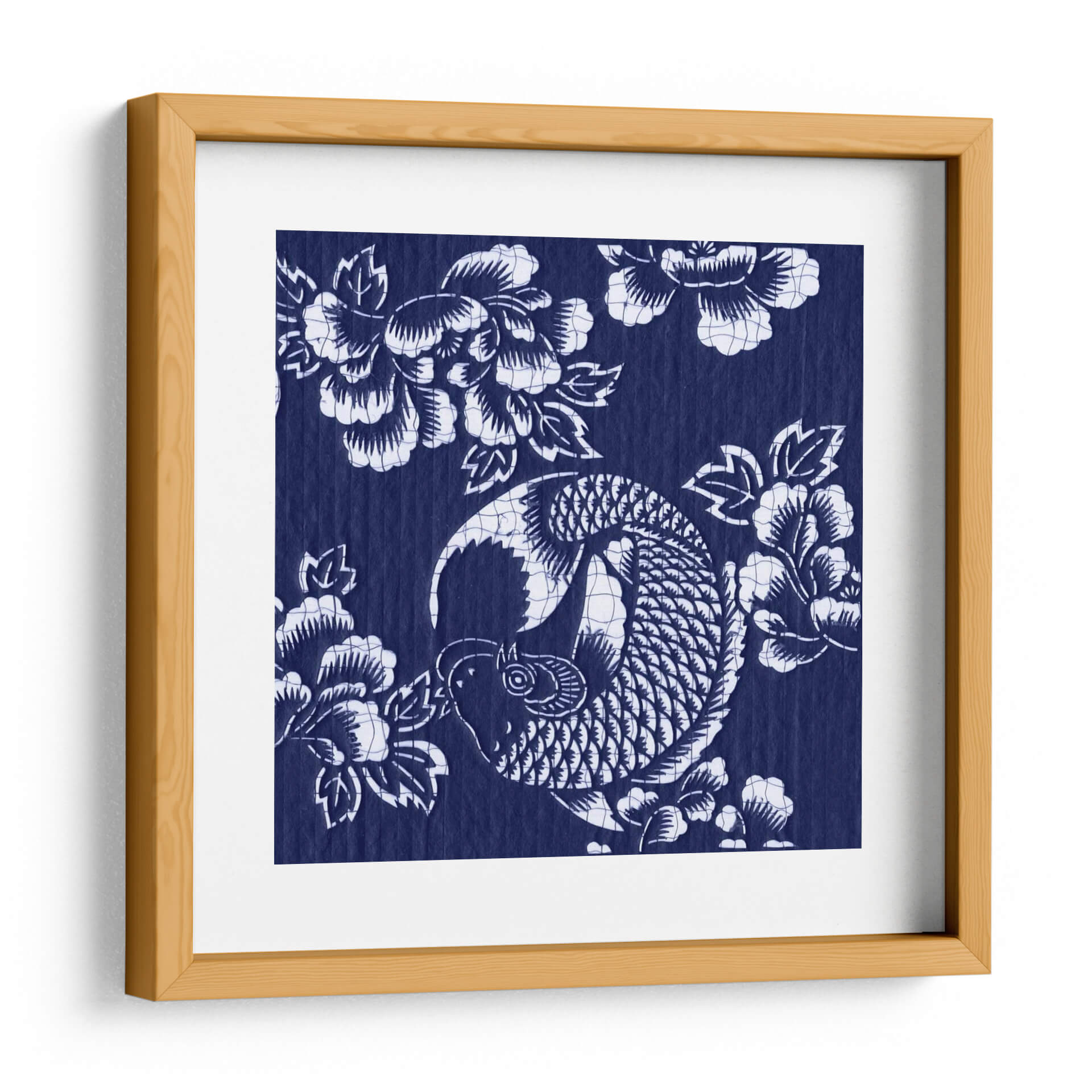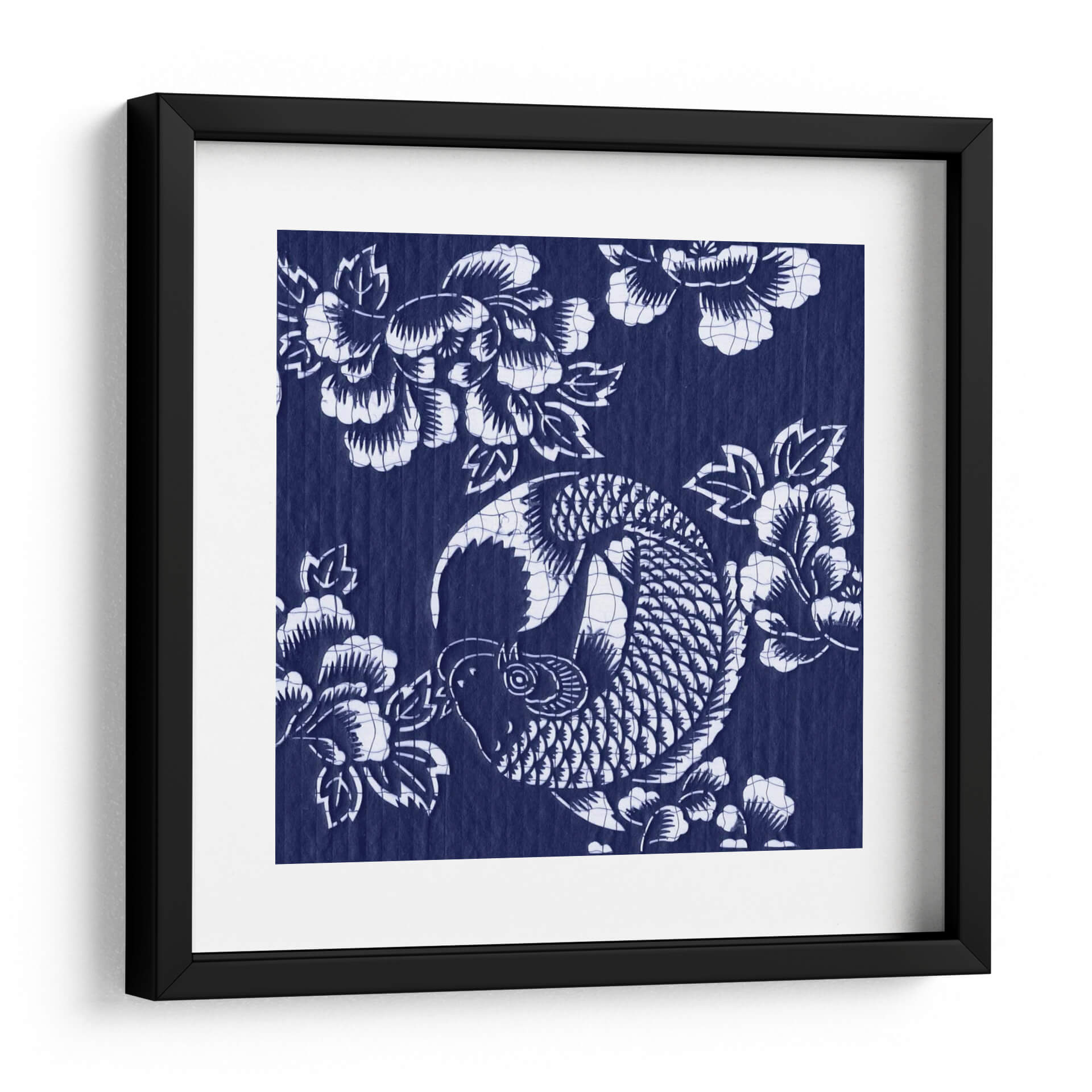 Sumérgete en la serenidad y la elegancia con "Índigo Carpa Katagami III", una obra de arte que captura la esencia de la cultura japonesa a través de un diseño intrincado y cautivador. Este cuadro decorativo presenta una estilizada carpa koi, símbolo de perseverancia y buena fortuna, nadando grácilmente entre flores de peonía, que representan prosperidad y belleza. La paleta de colores se centra en un vibrante y profundo índigo, contrastado con el blanco puro de los motivos, creando un efecto visual impactante y atemporal. Su estilo, que evoca las técnicas tradicionales de grabado japonés Katagami, aporta una textura y profundidad únicas a la pieza. La composición circular de la carpa y la disposición orgánica de las flores crean un equilibrio visual armonioso, transmitiendo una sensación de calma y fluidez. Este lienzo es ideal para añadir un toque de sofisticación y significado a cualquier espacio, ya sea una sala de estar moderna, un sereno dormitorio o una oficina que busque inspiración. "Índigo Carpa Katagami III" no es solo una decoración, es una invitación a la contemplación y un recordatorio de la belleza que se encuentra en la naturaleza y la tradición. Transforma tu hogar en un oasis de tranquilidad y estilo con esta pieza excepcional.