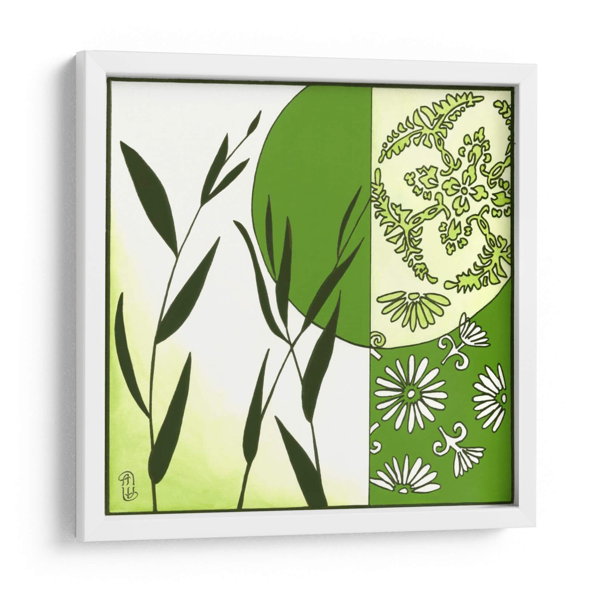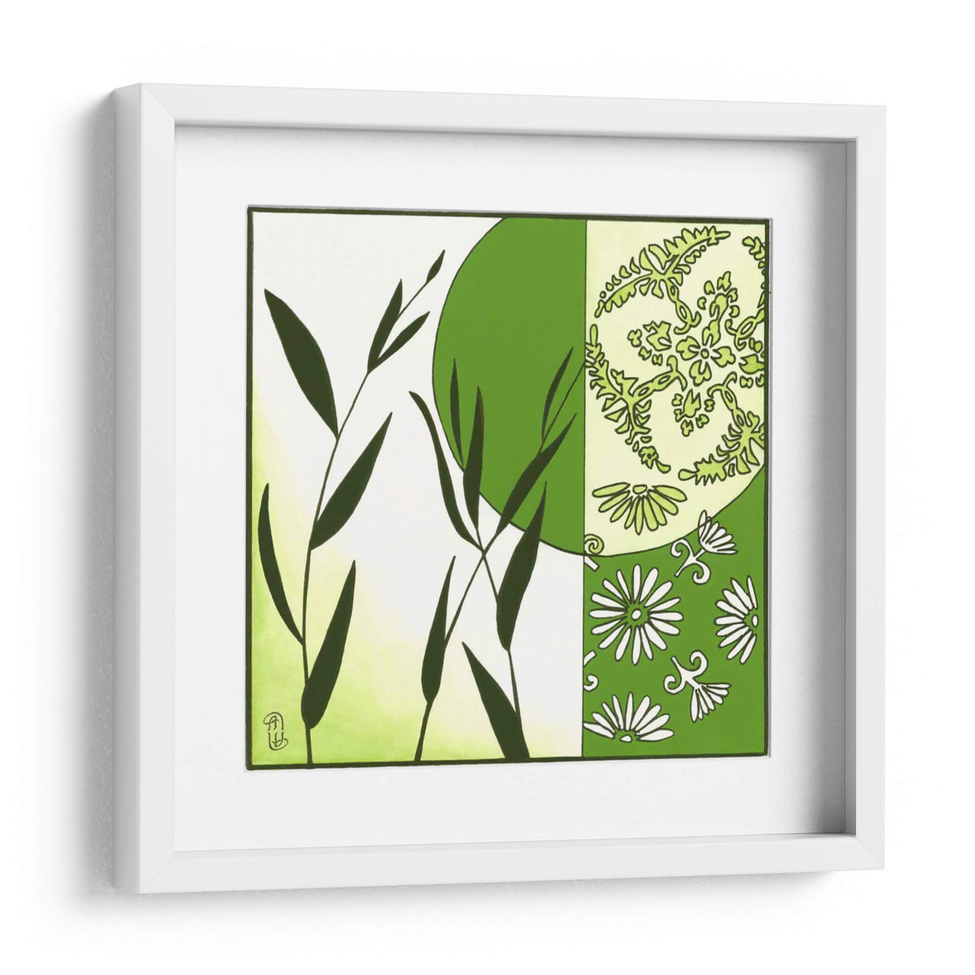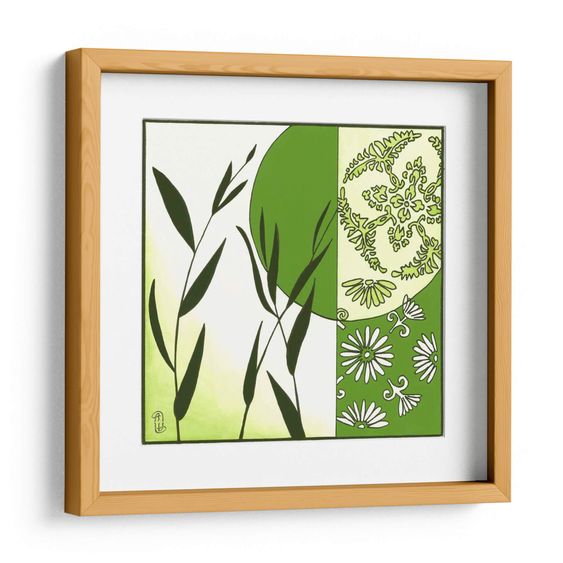Sumérgete en la serena belleza de "Kimono Garden Iv", una cautivadora obra de arte de Megan Meagher que evoca la tranquilidad de un jardín japonés. Esta pieza presenta un díptico visual, donde la delicadeza de las cañas de bambú en silueta oscura sobre un fondo degradado de verdes vibrantes contrasta con un panel derecho adornado con motivos florales intrincados y un estilo que recuerda a los patrones tradicionales japoneses. La paleta de verdes, desde el lima brillante hasta el esmeralda profundo, crea una atmósfera fresca y revitalizante, perfecta para infundir calma en cualquier espacio. El estilo es una fascinante mezcla de lo gráfico y lo orgánico, con líneas limpias y formas fluidas que dan vida a la composición. "Kimono Garden Iv" es ideal para añadir un toque de sofisticación natural y un aire de serenidad a tu sala de estar, dormitorio o estudio, convirtiéndose en un punto focal que invita a la contemplación y al bienestar. Descubre la armonía y el arte contemporáneo con esta pieza única.