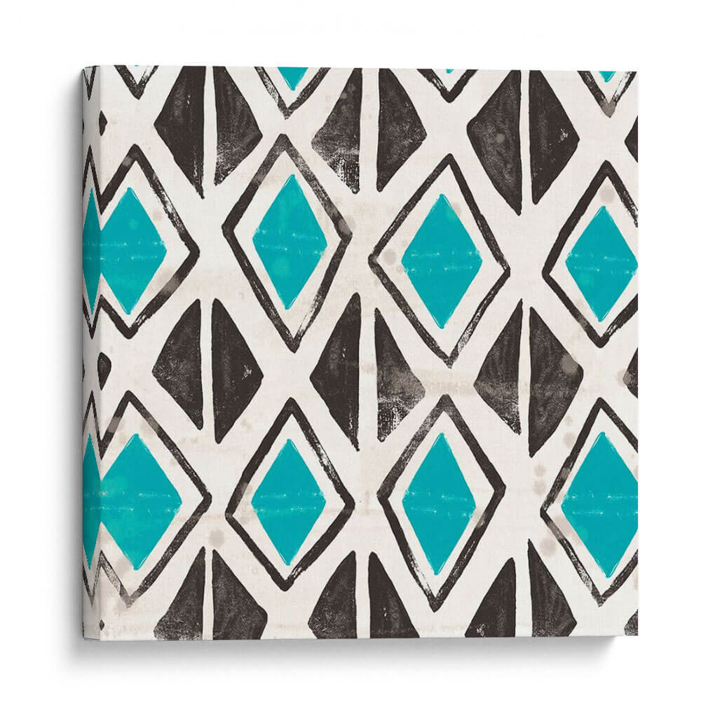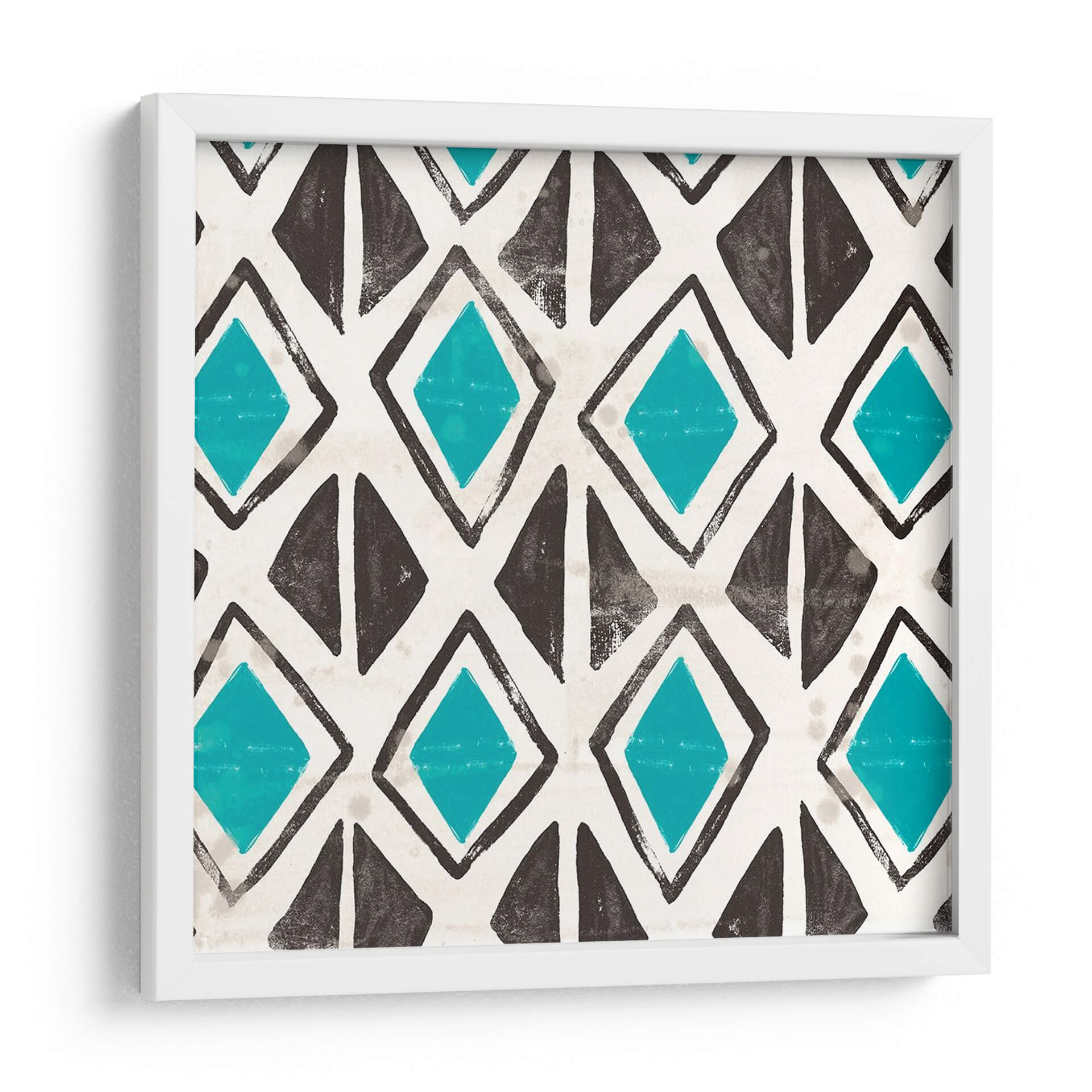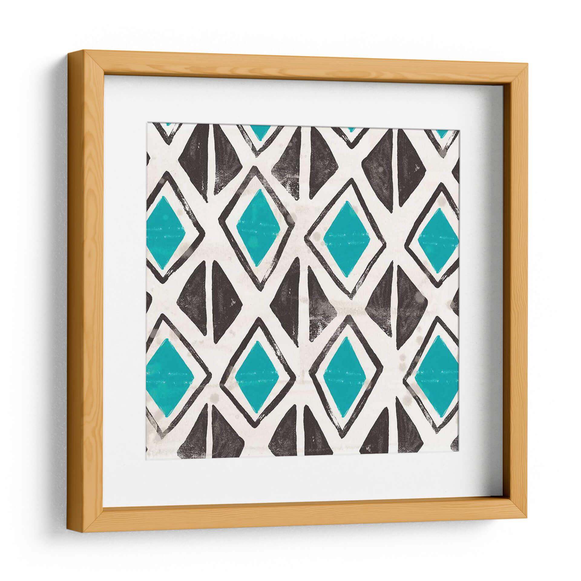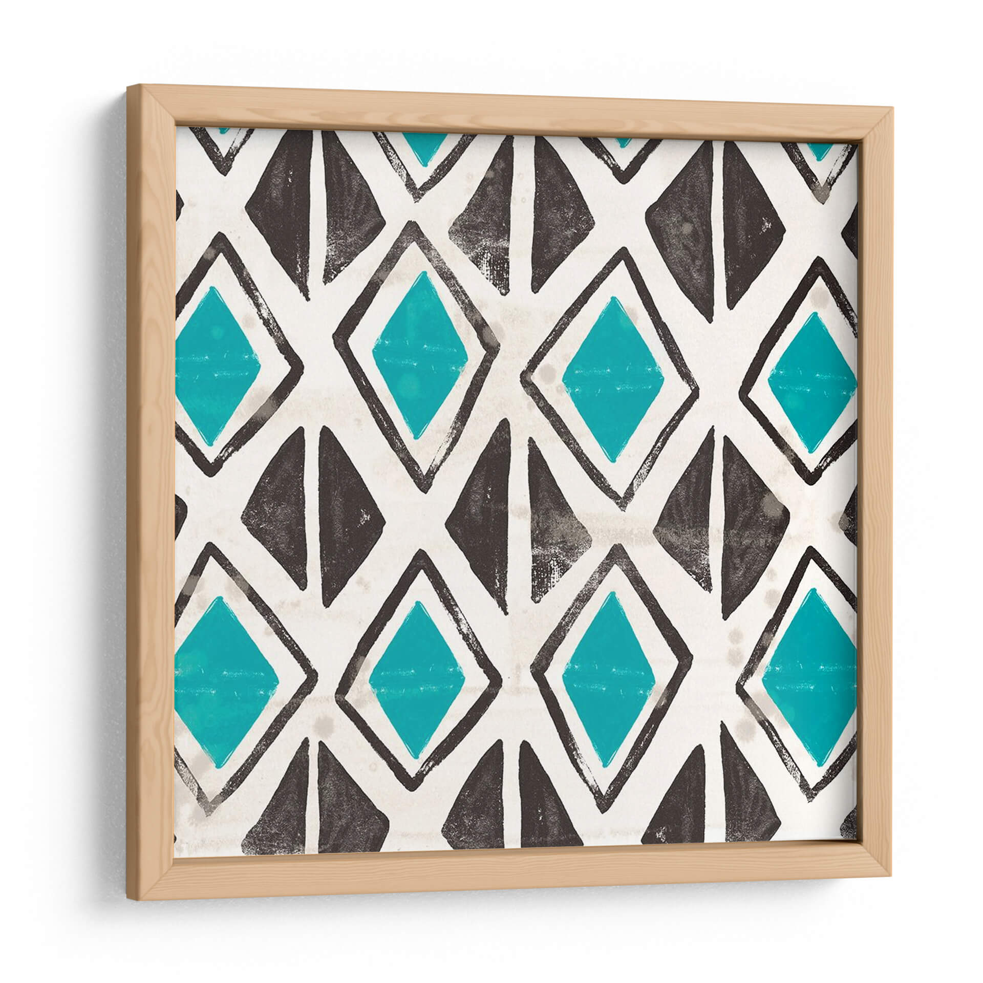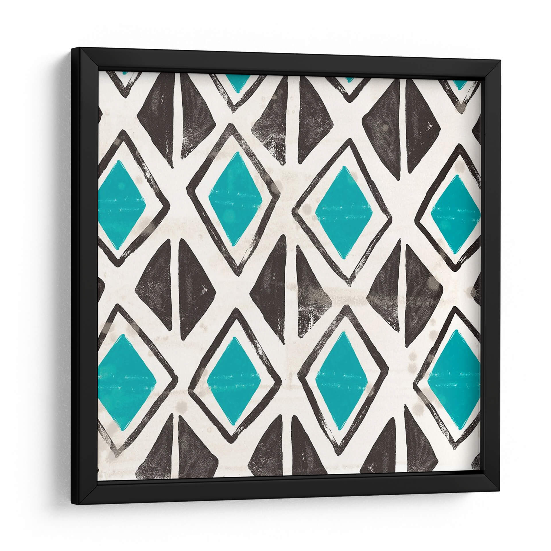 Sumérgete en la cautivadora abstracción geométrica de "Kitwe Iv", una obra de arte contemporáneo de June Erica Vess que fusiona audaces formas con una paleta de colores vibrante. Este cuadro decorativo presenta un patrón repetitivo de diamantes en un llamativo tono turquesa, intercalados con figuras triangulares y romboidales en un oscuro gris carbón, todo sobre un fondo texturizado de color crema o blanco roto. La composición, aunque abstracta, evoca una sensación de ritmo y orden, invitando a la contemplación. Los trazos parecen tener una cualidad de sello o estarcido, añadiendo una textura visual y una autenticidad artesanal a la pieza. "Kitwe Iv" es ideal para infundir energía y un toque de estilo étnico o tribal moderno a cualquier espacio, ya sea una sala de estar, un dormitorio o una oficina. Su diseño versátil permite que funcione como un punto focal dinámico o como un complemento sofisticado a una decoración existente. Descubre cómo este cuadro decorativo puede transformar tu hogar con su diseño geométrico único y su vibrante contraste de colores, creando un ambiente lleno de carácter y estilo.