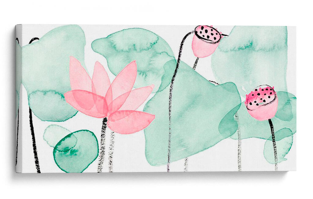 Sumérgete en la serenidad y la belleza natural con "Lotus En La Naturaleza Iv", una obra de arte contemporáneo de Melissa Wang. Este cuadro decorativo captura la delicadeza de los lotos en un entorno acuático, con trazos suaves y una paleta de colores que evoca calma y frescura. Las hojas verde menta, pintadas con una técnica que recuerda a la acuarela, contrastan elegantemente con los vibrantes tonos rosados de los capullos y flores de loto, creando una atmósfera etérea y pacífica. Las líneas negras sutiles añaden un toque moderno y definen la composición, que se distribuye armónicamente sobre un fondo blanco inmaculado. Es la pieza perfecta para infundir tranquilidad en tu sala de estar, dormitorio o estudio, aportando un toque de naturaleza estilizada a cualquier espacio. "Lotus En La Naturaleza Iv" no es solo una decoración; es una invitación a la contemplación y al bienestar, ideal para quienes buscan un arte que combine elegancia, simplicidad y una conexión profunda con el mundo natural. Descubre cómo esta pieza puede transformar tu hogar en un oasis de paz.