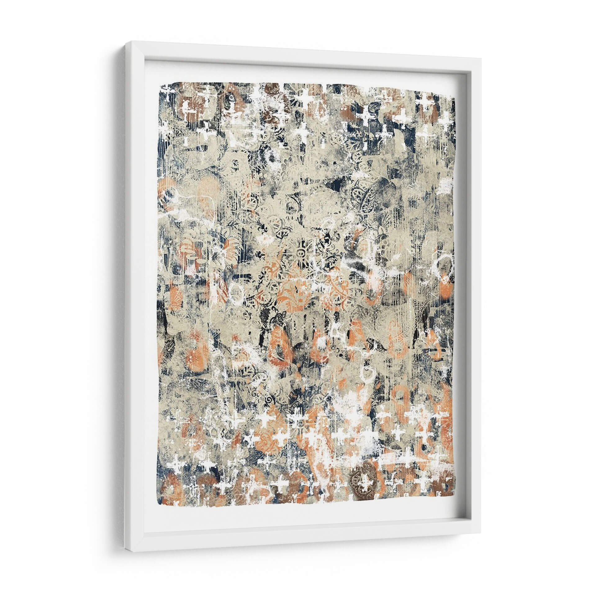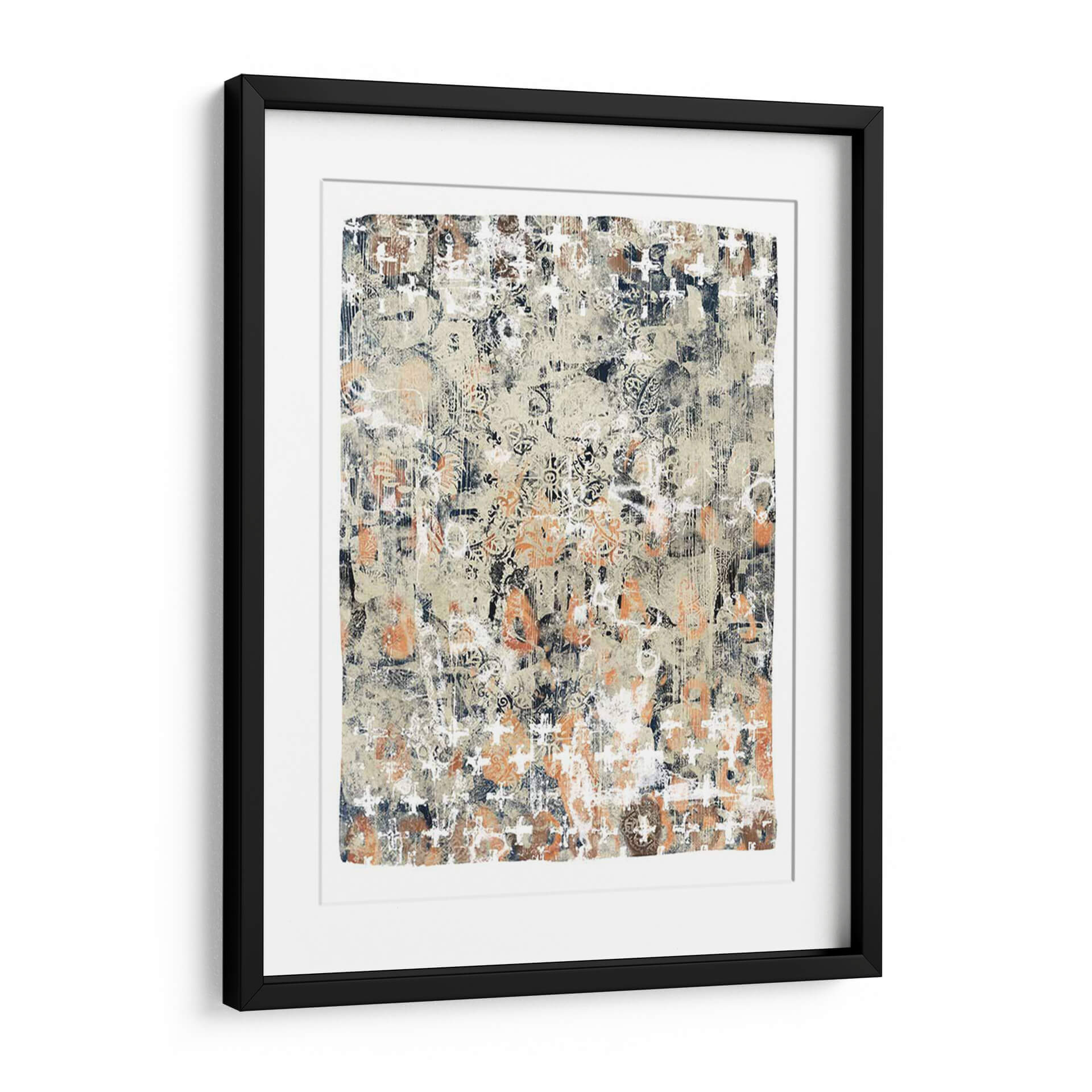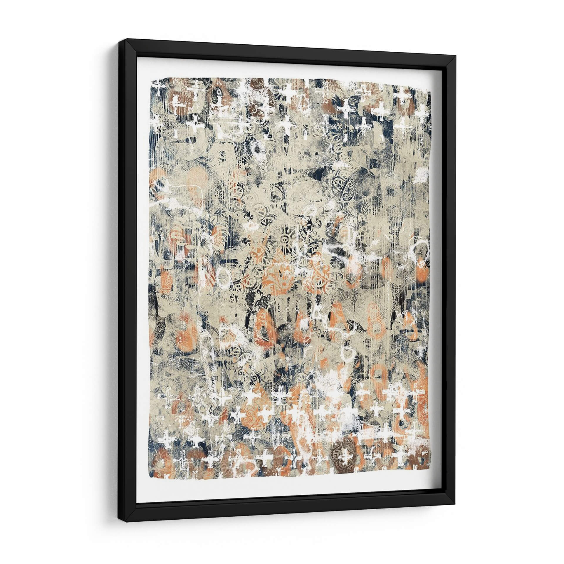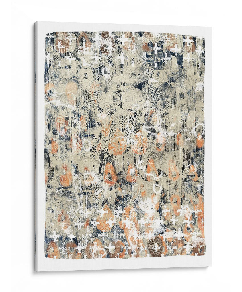 Sumérgete en la profundidad textural y el encanto étnico de 'Mezcla Global I', una obra de arte contemporáneo que fusiona patrones intrincados con una paleta de colores tierra y acentos vibrantes. Este cuadro decorativo abstracto evoca una sensación de historia y viaje, con capas de diseño que recuerdan a textiles antiguos o mapas descoloridos por el tiempo. La composición es rica y detallada, ofreciendo a cada espectador un nuevo descubrimiento visual con cada mirada. Los tonos cálidos de beige y naranja se entrelazan con profundos azules marinos y blancos desgastados, creando un equilibrio dinámico que atrae la atención sin abrumar. 'Mezcla Global I' es perfecta para añadir un toque de sofisticación bohemia o un interés cultural a cualquier sala de estar, estudio u oficina. Su estilo versátil permite integrarla en decoraciones modernas, rústicas o eclécticas, convirtiéndola en un punto focal cautivador que estimula la conversación y la imaginación. Transforma tu espacio con esta pieza única que celebra la diversidad y la belleza de las influencias globales, aportando calidez, carácter y una narrativa visual fascinante a tu hogar.