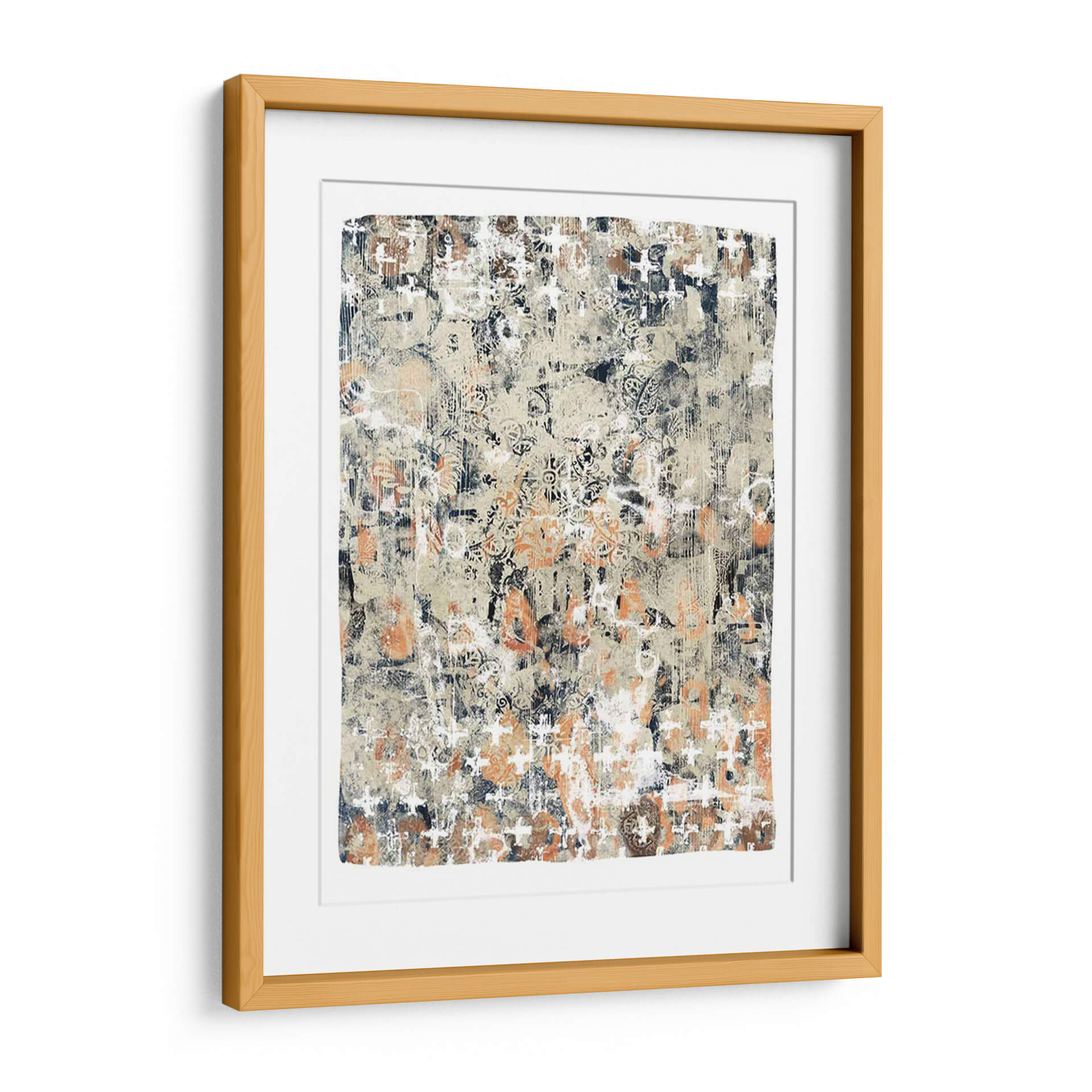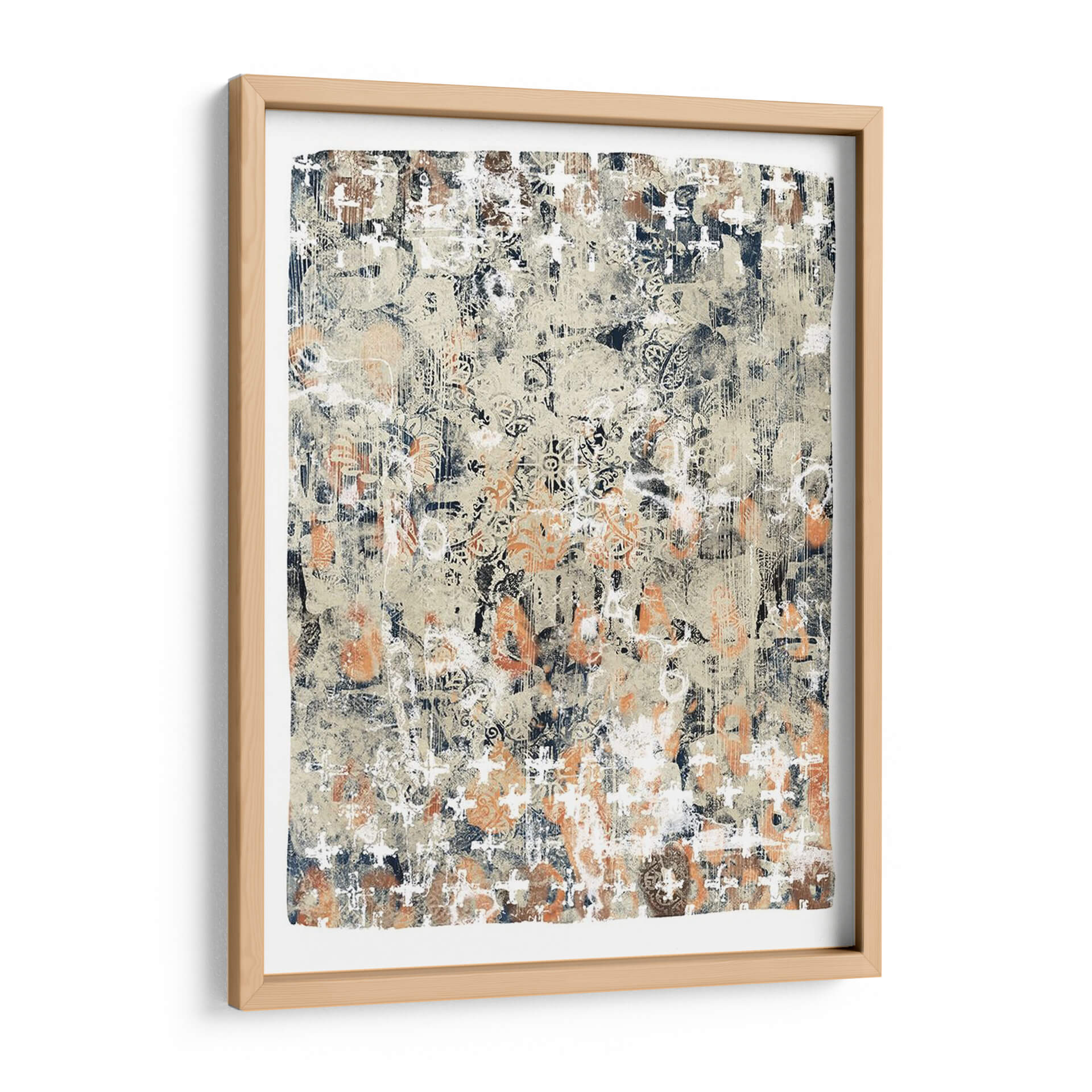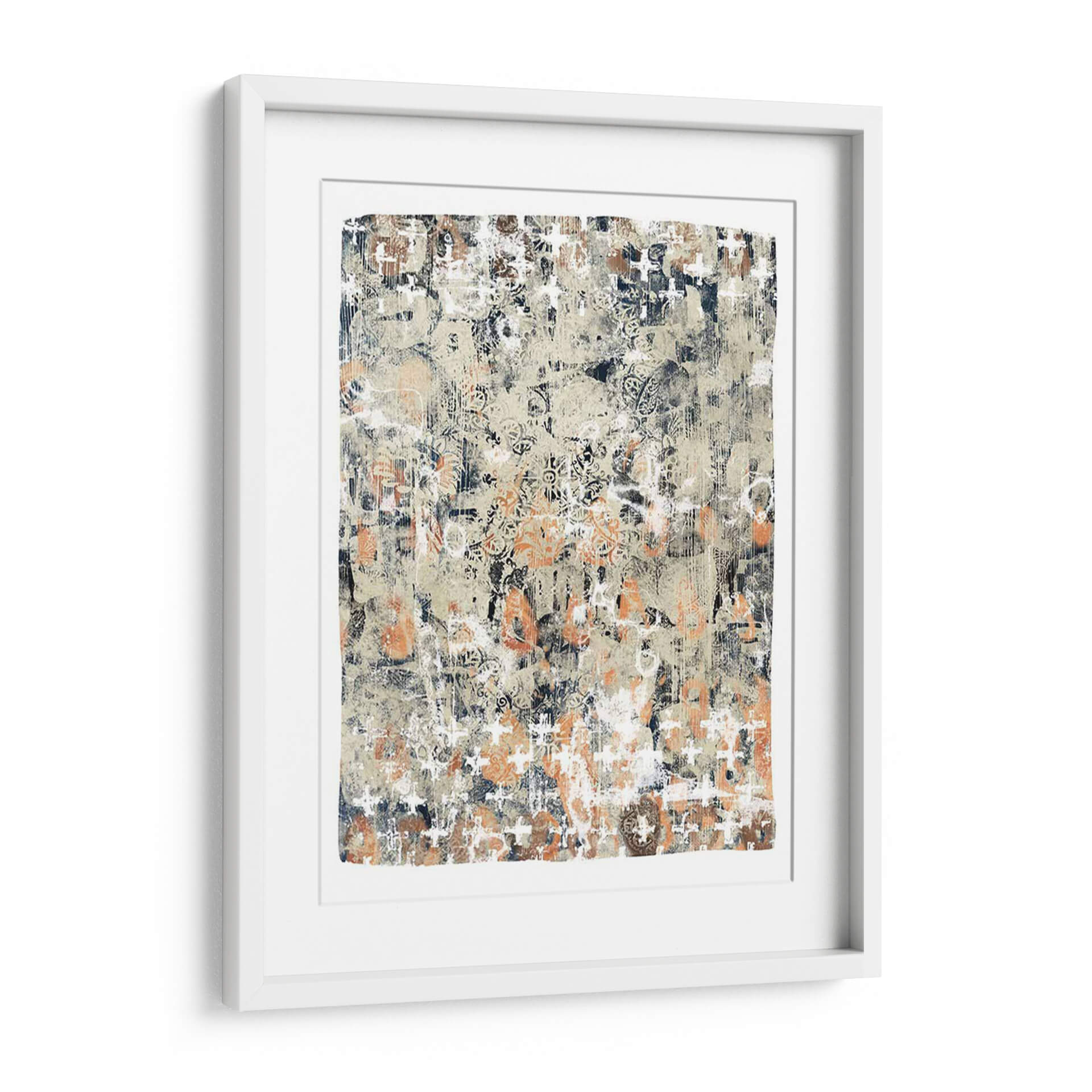 Sumérgete en la profundidad textural y el encanto étnico de 'Mezcla Global I', una obra de arte contemporáneo que fusiona patrones intrincados con una paleta de colores tierra y acentos vibrantes. Este cuadro decorativo abstracto evoca una sensación de historia y viaje, con capas de diseño que recuerdan a textiles antiguos o mapas descoloridos por el tiempo. La composición es rica y detallada, ofreciendo a cada espectador un nuevo descubrimiento visual con cada mirada. Los tonos cálidos de beige y naranja se entrelazan con profundos azules marinos y blancos desgastados, creando un equilibrio dinámico que atrae la atención sin abrumar. 'Mezcla Global I' es perfecta para añadir un toque de sofisticación bohemia o un interés cultural a cualquier sala de estar, estudio u oficina. Su estilo versátil permite integrarla en decoraciones modernas, rústicas o eclécticas, convirtiéndola en un punto focal cautivador que estimula la conversación y la imaginación. Transforma tu espacio con esta pieza única que celebra la diversidad y la belleza de las influencias globales, aportando calidez, carácter y una narrativa visual fascinante a tu hogar.