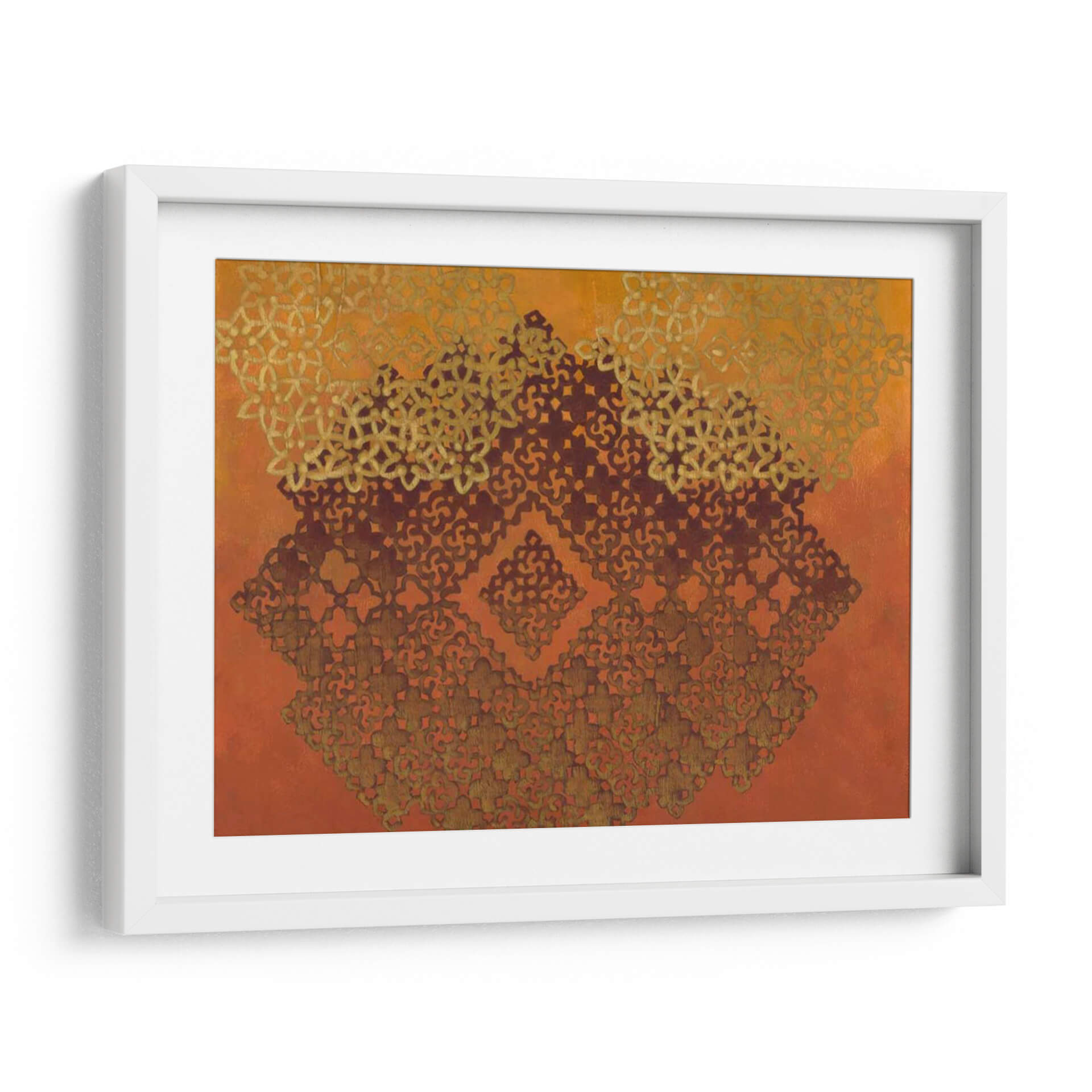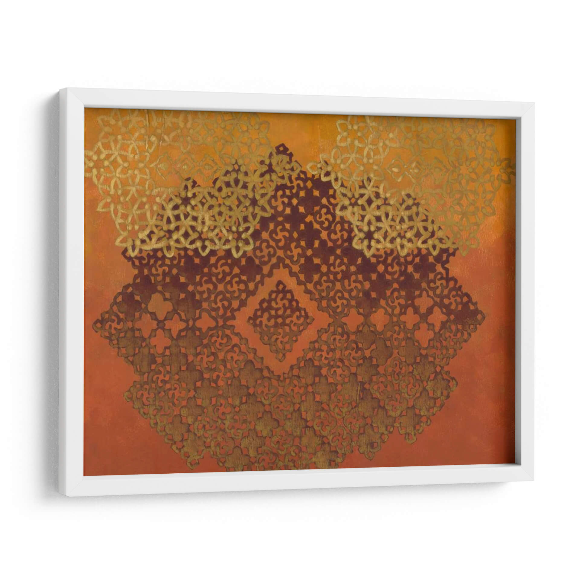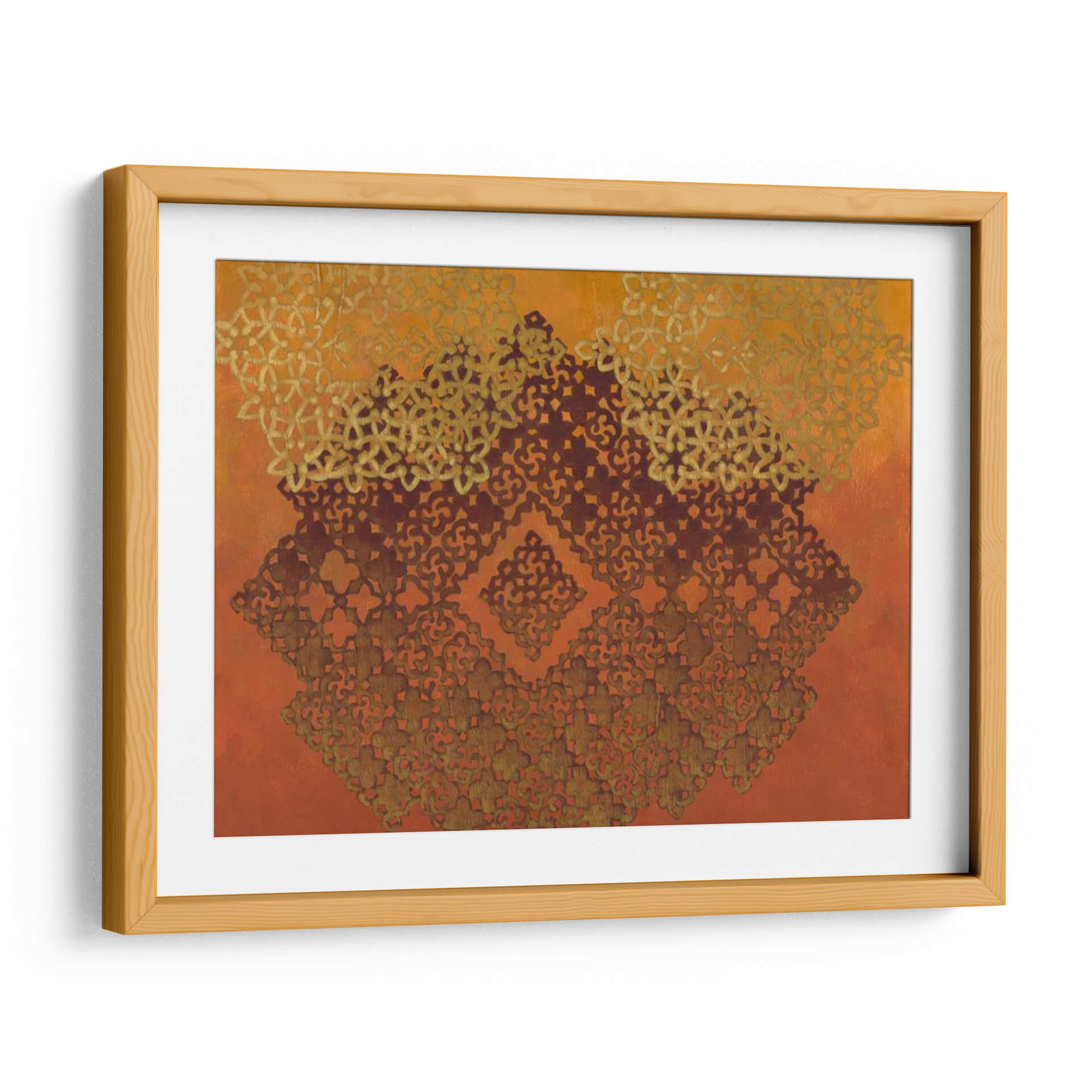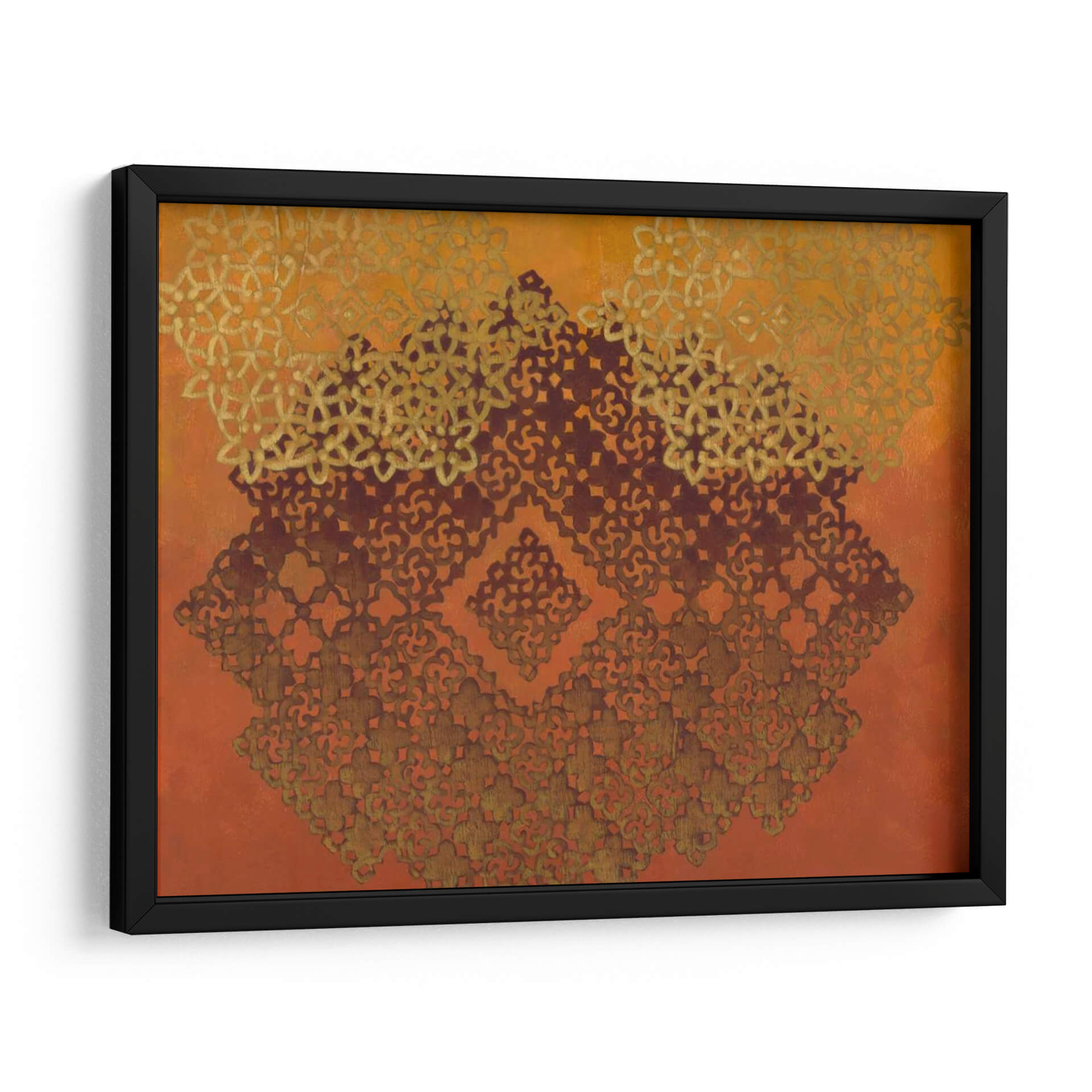 Sumérgete en la riqueza visual de "Oro De La Alheña I", una obra de arte contemporáneo que evoca la calidez y la sofisticación. Esta pieza se caracteriza por su intrincado patrón geométrico, que parece emerger de un fondo texturizado en tonos naranjas y dorados vibrantes. La composición juega con capas de ornamentación, creando una sensación de profundidad y movimiento, como un tejido ancestral o un diseño de mosaico en evolución. El uso del dorado añade un toque de lujo y luminosidad, capturando la luz y añadiendo un brillo sutil a cualquier espacio. Los tonos terrosos y cálidos predominantes invitan a la introspección y al confort, haciendo de este cuadro decorativo una adición perfecta para salones, dormitorios o estudios que buscan un punto focal elegante y acogedor. La técnica empleada, con sus texturas sutiles, sugiere una profundidad táctil que invita a ser admirada de cerca. "Oro De La Alheña I" es más que una decoración; es una invitación a la contemplación y a la apreciación de la belleza intrincada y atemporal, ideal para quienes valoran el arte que combina la tradición con una sensibilidad moderna y un diseño cautivador que se adapta a diversos estilos decorativos.