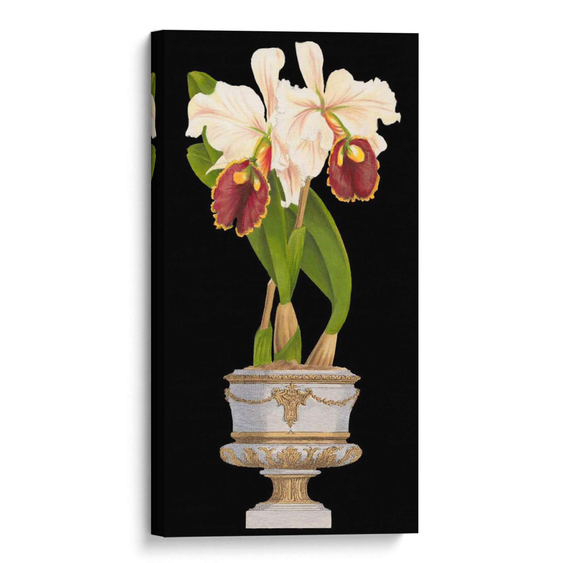 Embellece tu espacio con el exquisito cuadro decorativo "Orquídeas En Silver I", una obra de Vision Studio que captura la elegancia atemporal de la naturaleza. Esta pieza presenta un detallado estudio de orquídeas, con pétalos blancos y crema que contrastan sutilmente con los vibrantes centros en tonos burdeos y dorados. Las hojas verdes exuberantes y el pedestal ornamentado en tonos plateados y dorados añaden un toque de sofisticación clásica, todo sobre un fondo negro profundo que hace que los colores de las flores resalten con intensidad. La composición es clásica y equilibrada, evocando una sensación de calma, lujo y aprecio por la belleza botánica. Este cuadro decorativo es ideal para añadir un punto focal de refinamiento a salones, comedores, oficinas o cualquier estancia donde se desee un aire de distinción y serenidad. Su estilo detallado, que recuerda a las ilustraciones botánicas antiguas pero con una sensibilidad contemporánea, lo convierte en una adición versátil para decoraciones clásicas, modernas o eclécticas. Descubre la armonía y la delicadeza que "Orquídeas En Silver I" puede aportar a tu hogar, creando un ambiente de tranquilidad y buen gusto. Perfecto para amantes de las flores y el arte detallado que buscan una pieza única.