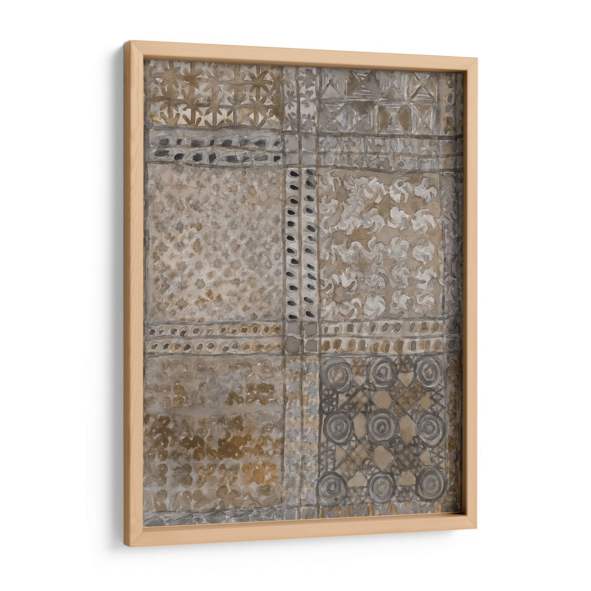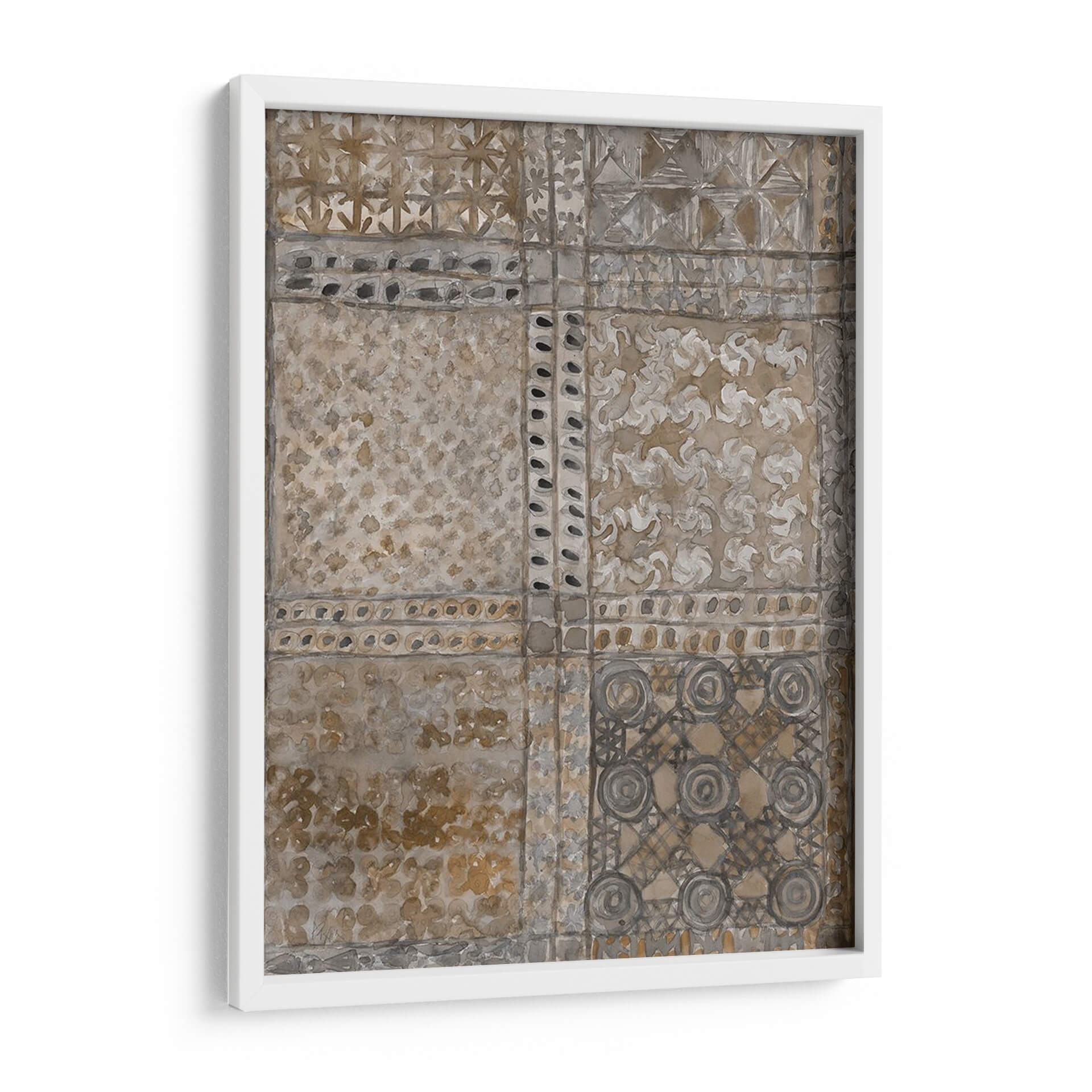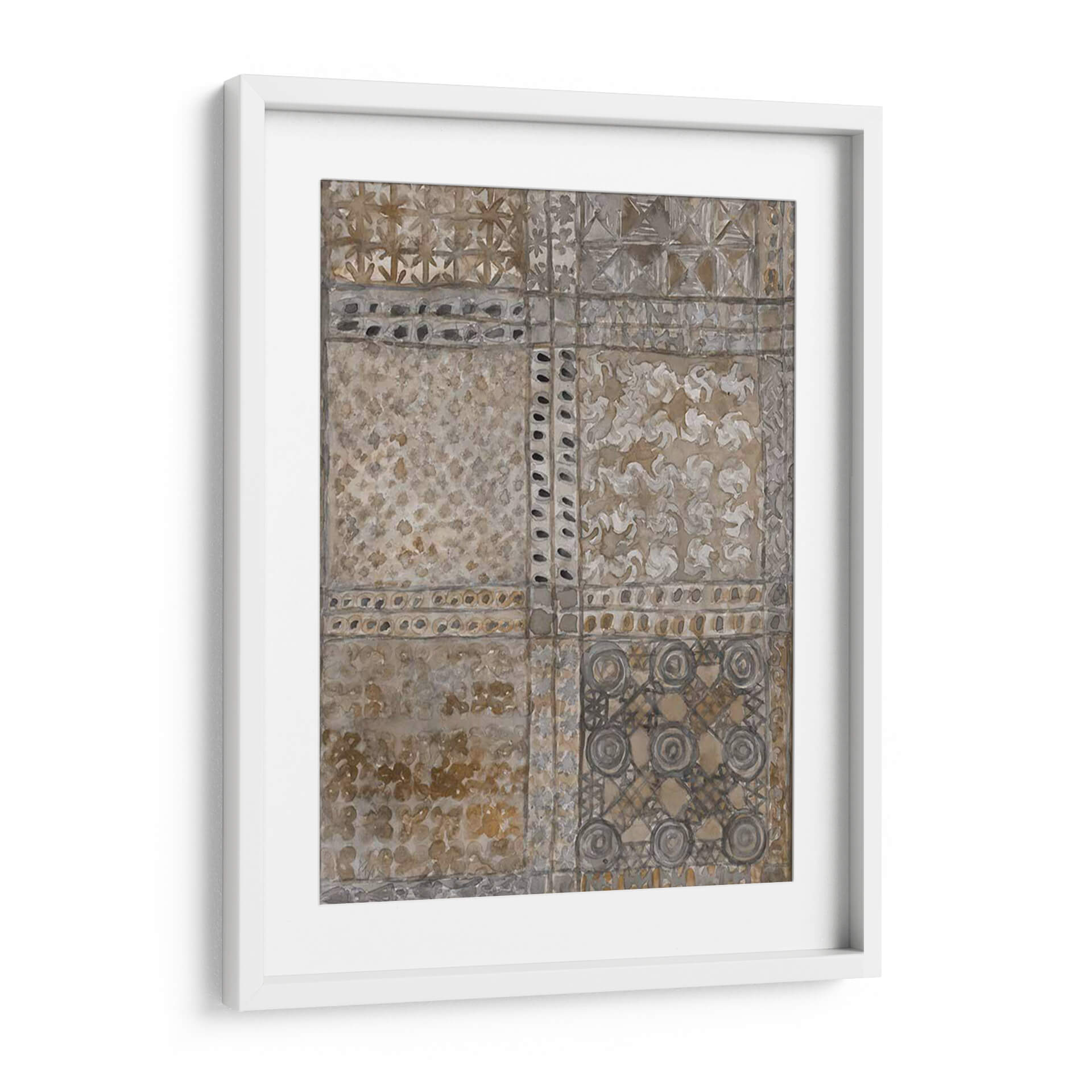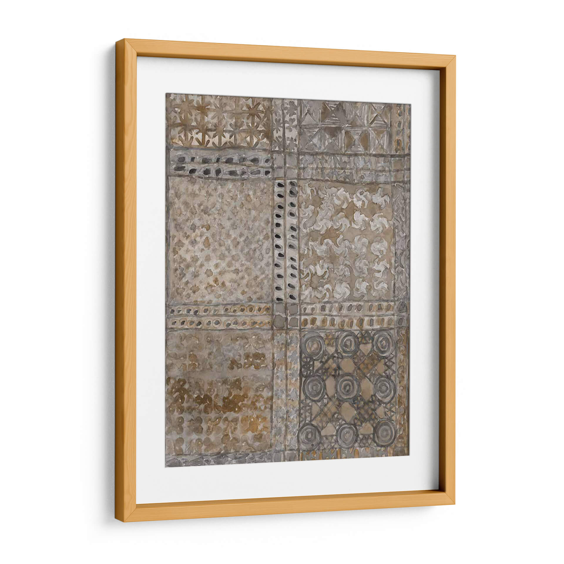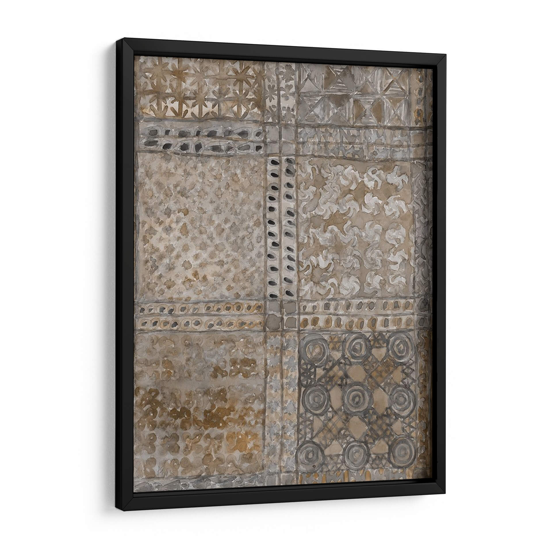 Sumérgete en la rica historia y la estética atemporal con "Paño de Adinkra Envejecido I" de Samuel Dixon. Esta cautivadora obra de arte abstracto evoca la profunda herencia cultural, presentando un diseño inspirado en los tradicionales paños Adinkra de Ghana. La paleta de colores, dominada por tonos tierra, ocres y grises tenues, crea una atmósfera de serenidad y sofisticación. Los intrincados patrones, organizados en un diseño de cuadrícula, invitan a la contemplación, cada sección revelando texturas y motivos sutiles que recuerdan a tejidos antiguos y grabados. La técnica, que imita el aspecto envejecido y desgastado, añade una capa de autenticidad y carácter, como si la pieza contara historias de generaciones pasadas. "Paño de Adinkra Envejecido I" es más que una simple decoración de pared; es una pieza de conversación que aporta calidez, profundidad y un toque de etnicidad refinada a cualquier espacio. Ideal para salones, estudios u oficinas que buscan una decoración con alma y un estilo único. Transforma tu hogar en una galería personal con este impresionante cuadro decorativo que combina la historia africana con el arte contemporáneo.