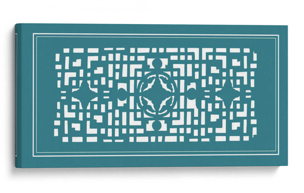 Sumérgete en la serenidad y el diseño geométrico con el cuadro decorativo "Pantalla Shoji En Teal Iv". Esta obra de arte, creada por Vision Studio, presenta un patrón intrincado y simétrico que evoca la estética minimalista y elegante de las pantallas japonesas. La paleta de colores, dominada por un profundo tono teal, aporta una sensación de calma y sofisticación, mientras que los detalles en blanco crean un contraste nítido y moderno. La composición está cuidadosamente equilibrada, con un elemento central que recuerda a un diseño floral estilizado o un mandala, rodeado por un entramado de líneas y formas rectangulares que sugieren orden y armonía. Este cuadro decorativo es ideal para aquellos que buscan infundir paz y un toque de arte contemporáneo en sus espacios. Su diseño limpio y su color relajante lo hacen perfecto para salas de estar, dormitorios o incluso oficinas, donde puede servir como un punto focal sutil pero impactante. Añade una dimensión de tranquilidad y estilo a tu decoración con esta pieza única que combina la tradición oriental con la sensibilidad moderna. Es una invitación a la contemplación y a la apreciación del diseño depurado.
