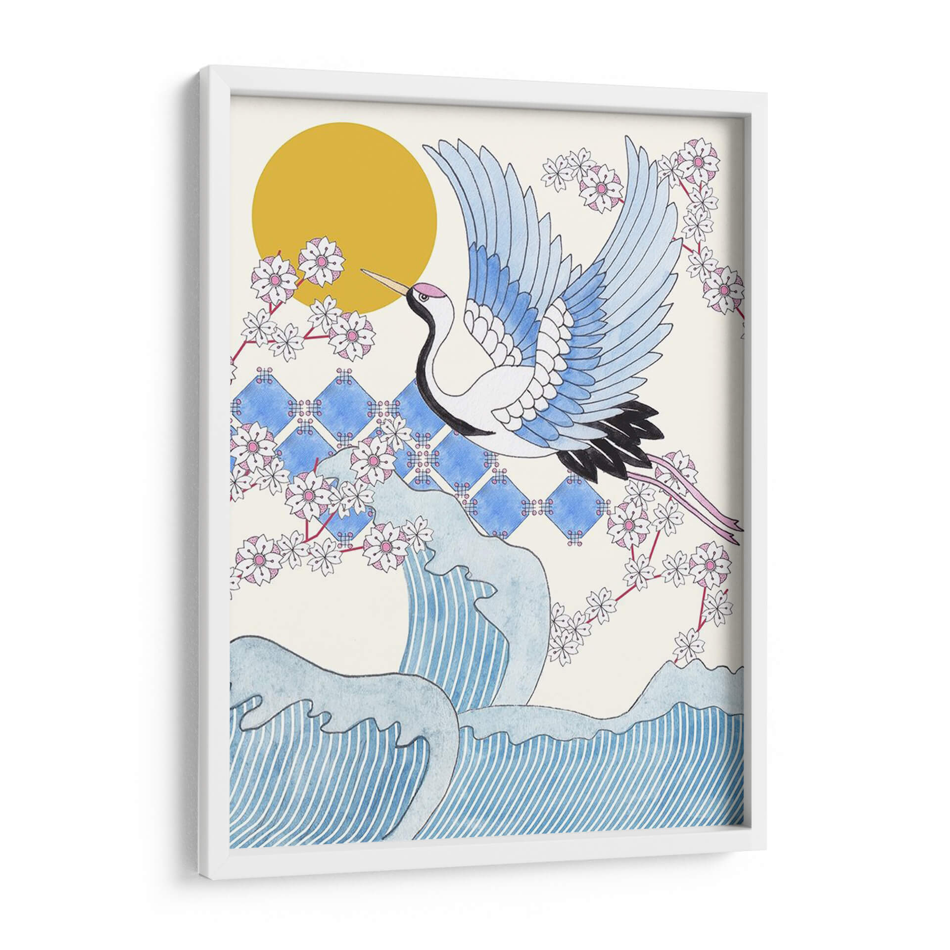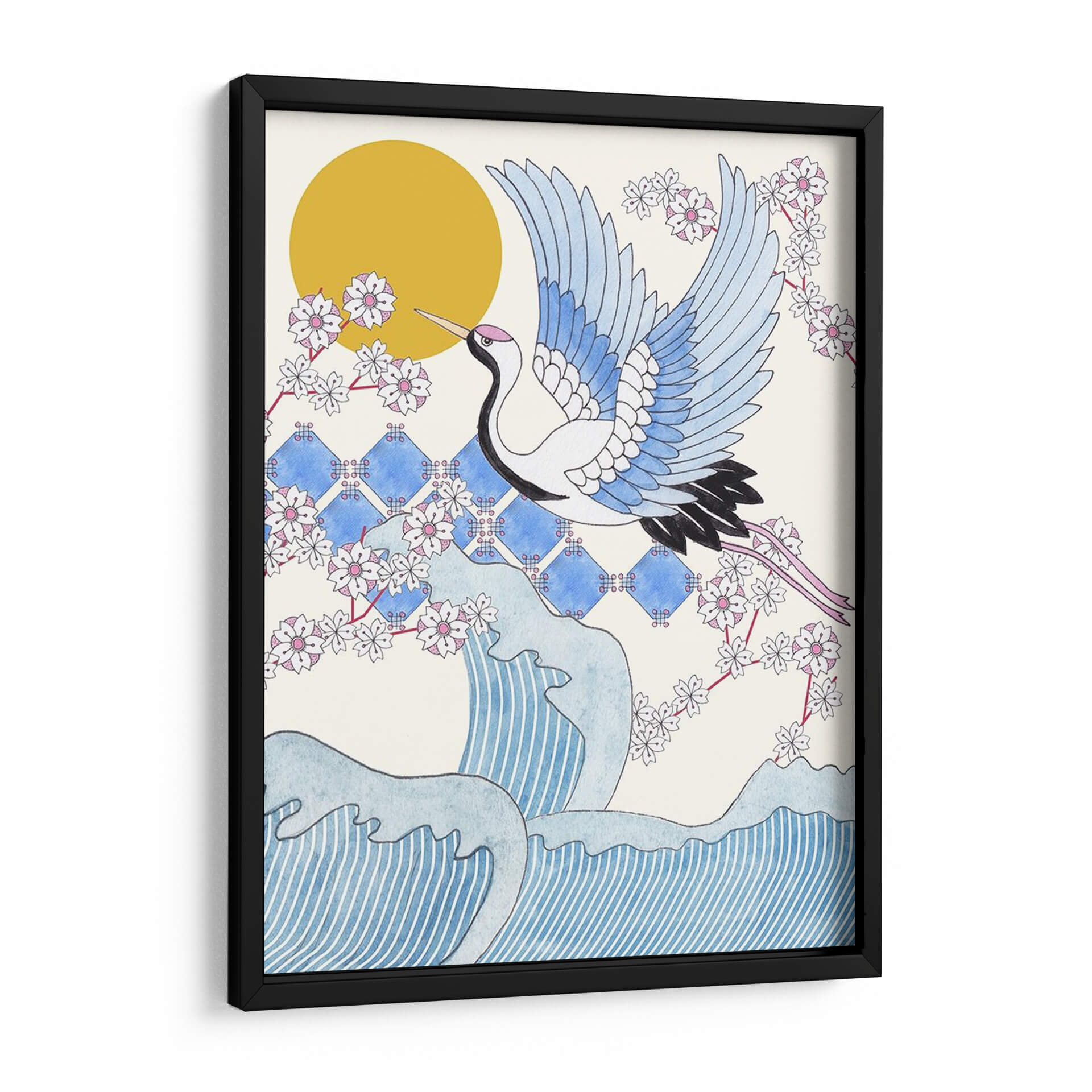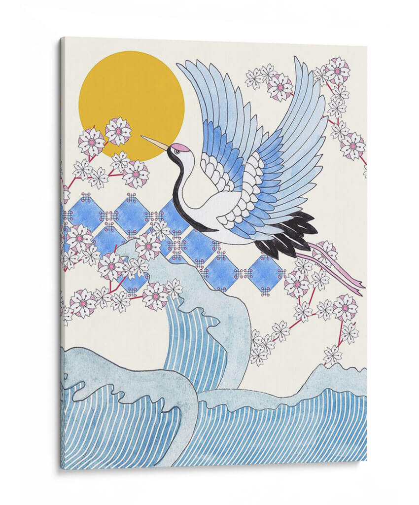 Sumérgete en la serenidad y la belleza etérea de "Pase Por Ii", una obra maestra de Melissa Wang que captura la esencia de la naturaleza y la tradición. Este cuadro decorativo presenta una grulla majestuosa en pleno vuelo, con sus alas extendidas en un cielo sereno, justo por encima de olas estilizadas que evocan el poder y la fluidez del océano. La paleta de colores, dominada por suaves tonos azules, blancos y toques de rosa y amarillo vibrante del sol poniente, crea una atmósfera de calma y armonía. Los delicados detalles de las flores de cerezo en flor, que adornan la parte superior de la composición, añaden un toque de fragilidad y renovación, simbolizando la llegada de la primavera. El fondo, con un patrón geométrico azul en forma de diamante, aporta una estructura sutil y un contraste visual que realza la figura central de la grulla. Este lienzo es ideal para añadir un toque de sofisticación y tranquilidad a cualquier espacio, ya sea una sala de estar moderna, un dormitorio o una oficina. "Pase Por Ii" no es solo una decoración de pared; es una invitación a la contemplación y a la apreciación de la belleza efímera de la vida. Perfecto para quienes buscan arte que combine elegancia asiática con un estilo contemporáneo.