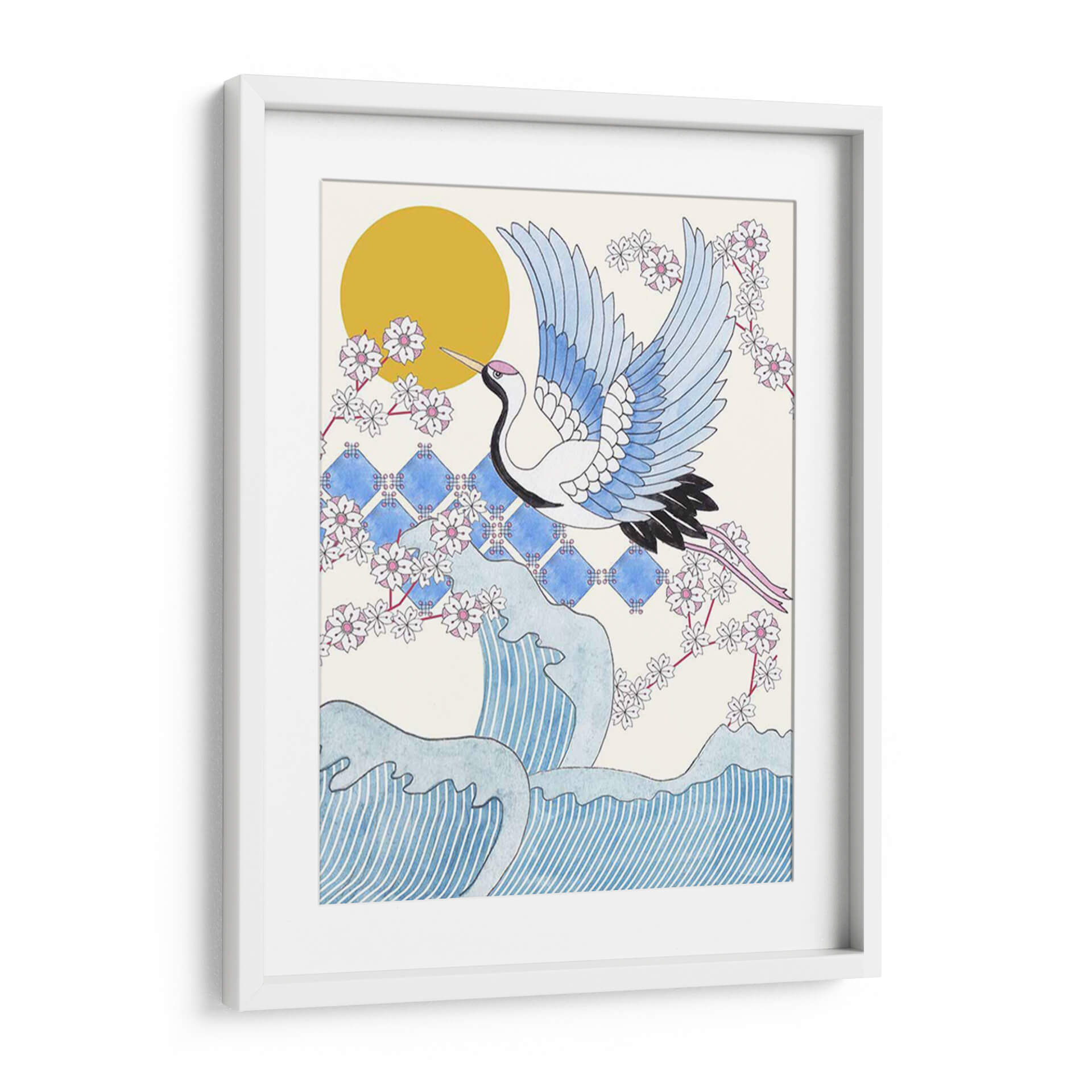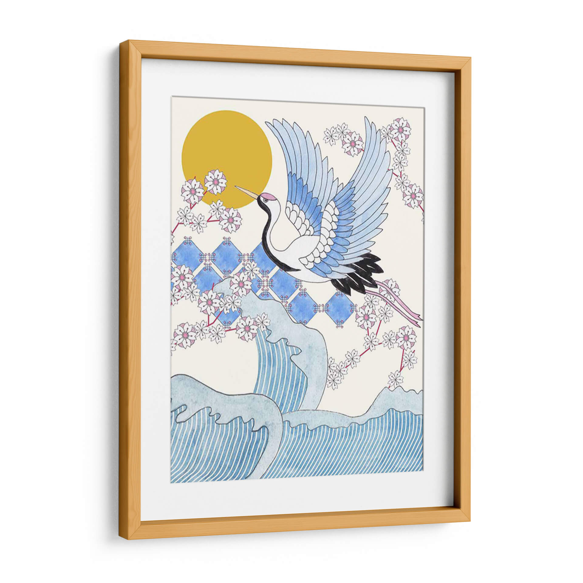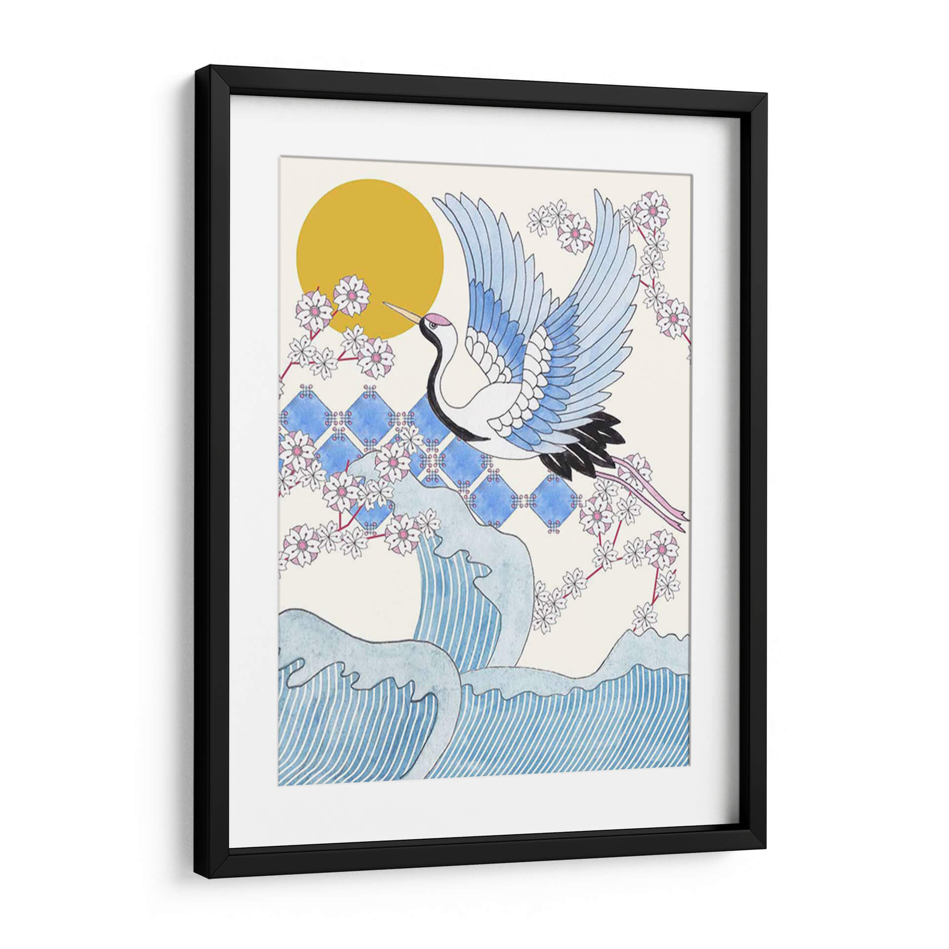 Sumérgete en la serenidad y la belleza etérea de "Pase Por Ii", una obra maestra de Melissa Wang que captura la esencia de la naturaleza y la tradición. Este cuadro decorativo presenta una grulla majestuosa en pleno vuelo, con sus alas extendidas en un cielo sereno, justo por encima de olas estilizadas que evocan el poder y la fluidez del océano. La paleta de colores, dominada por suaves tonos azules, blancos y toques de rosa y amarillo vibrante del sol poniente, crea una atmósfera de calma y armonía. Los delicados detalles de las flores de cerezo en flor, que adornan la parte superior de la composición, añaden un toque de fragilidad y renovación, simbolizando la llegada de la primavera. El fondo, con un patrón geométrico azul en forma de diamante, aporta una estructura sutil y un contraste visual que realza la figura central de la grulla. Este lienzo es ideal para añadir un toque de sofisticación y tranquilidad a cualquier espacio, ya sea una sala de estar moderna, un dormitorio o una oficina. "Pase Por Ii" no es solo una decoración de pared; es una invitación a la contemplación y a la apreciación de la belleza efímera de la vida. Perfecto para quienes buscan arte que combine elegancia asiática con un estilo contemporáneo.