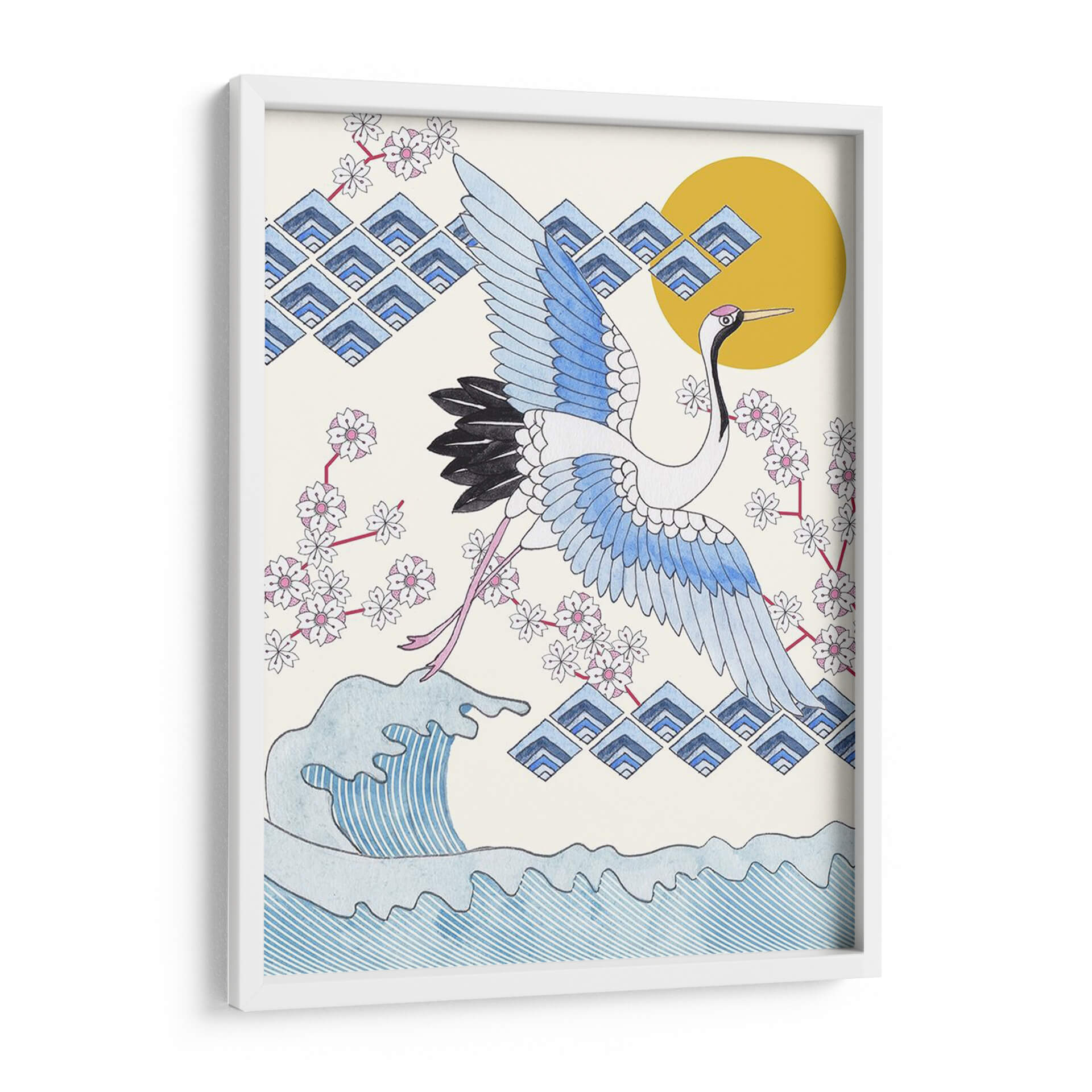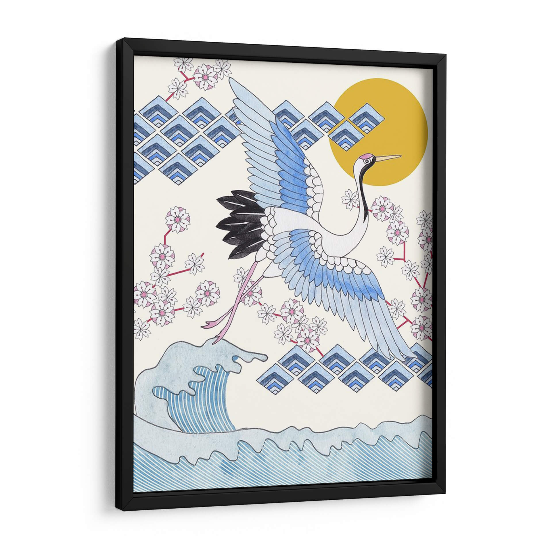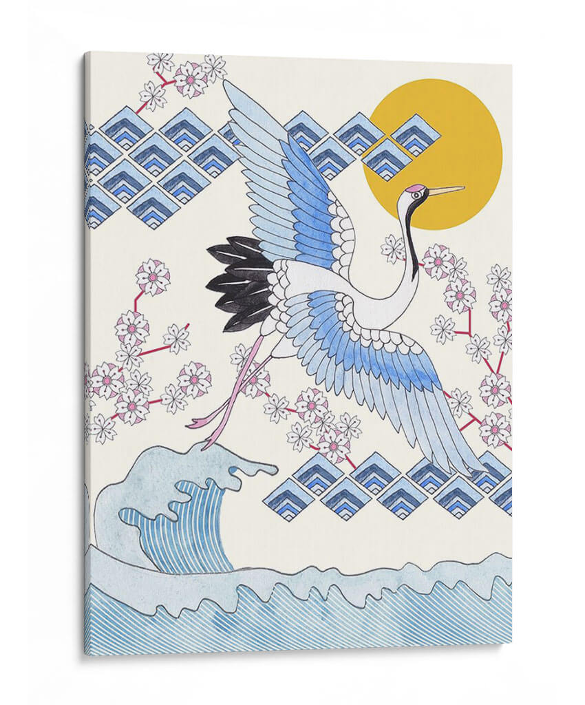 Captura la serenidad y la belleza etérea de la naturaleza con "Pase Por Iii", una obra de arte de Melissa Wang que evoca la tradición y la calma. Este cuadro decorativo presenta una grulla majestuosa en pleno vuelo, con sus alas extendidas en un gesto de libertad, sobre un mar de olas estilizadas que recuerdan al arte ukiyo-e japonés. La paleta de colores, dominada por suaves tonos azules, blancos y un vibrante sol amarillo, crea una atmósfera de paz y armonía. Los delicados cerezos en flor salpican la composición, añadiendo un toque de fragilidad y belleza efímera, contrastando con la fuerza y elegancia de la grulla. Las formas geométricas en azul que flanquean la escena aportan un elemento de orden y diseño contemporáneo, fusionando lo orgánico con lo estructurado. "Pase Por Iii" es una pieza que invita a la contemplación, perfecta para añadir un toque de sofisticación y serenidad a cualquier espacio, ya sea un salón moderno, un dormitorio tranquilo o una oficina que busque inspiración. Transmite una sensación de viaje y aspiración, ideal para quienes buscan un arte que inspire paz y fortaleza.