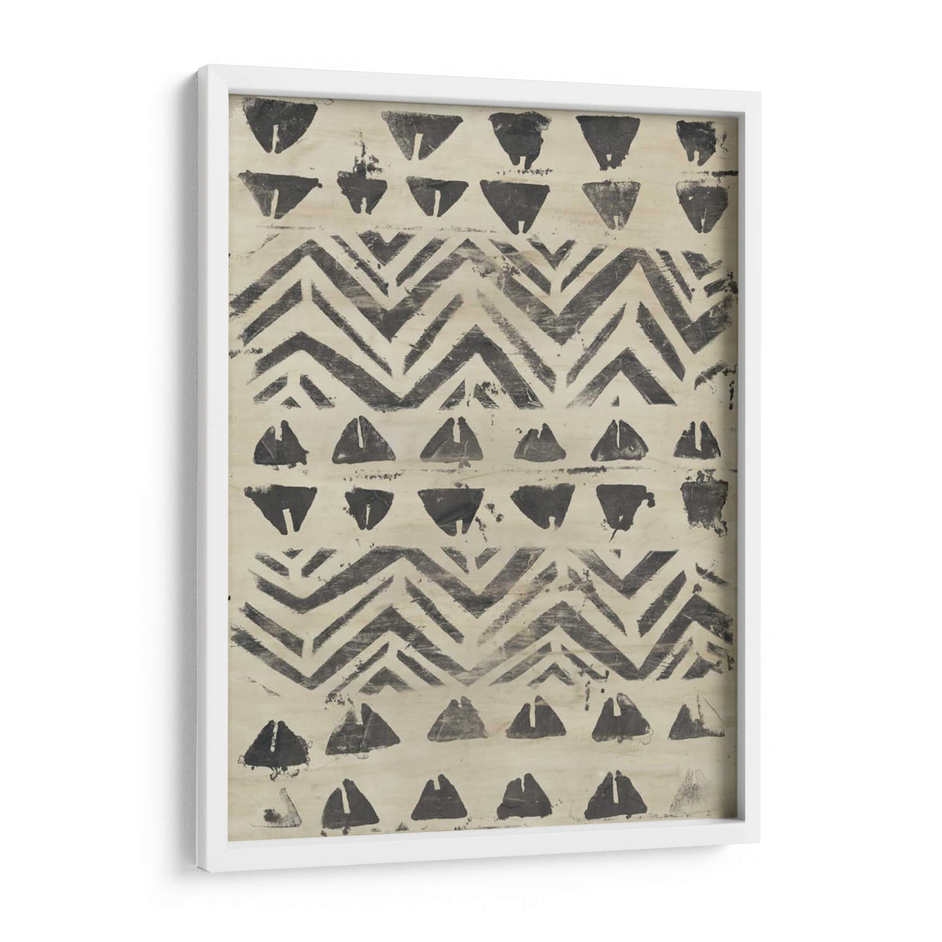 Sumérgete en la estética única de 'Patrón Bazar I', una obra de arte contemporáneo de June Erica Vess que fusiona lo tribal con lo moderno. Este cuadro decorativo presenta un cautivador patrón geométrico en tonos neutros de blanco roto y gris oscuro, evocando una sensación de calma y sofisticación. La composición se organiza en filas de formas triangulares y zigzags, aplicadas con una textura que sugiere técnicas de estarcido o sellado, aportando una profundidad visual intrigante y un aire artesanal. Su diseño abstracto y orgánico lo convierte en una pieza versátil, ideal para complementar una amplia gama de estilos decorativos, desde el bohemio hasta el escandinavo o minimalista. La sutileza de su paleta de colores permite que se integre armoniosamente en cualquier habitación, añadiendo un toque de interés visual sin abrumar el espacio. 'Patrón Bazar I' es perfecto para crear un punto focal elegante en tu sala de estar, aportar serenidad a tu dormitorio o añadir carácter a tu oficina. Descubre cómo este cuadro decorativo puede transformar tu hogar, infundiendo tus paredes con una narrativa visual que inspira y relaja.