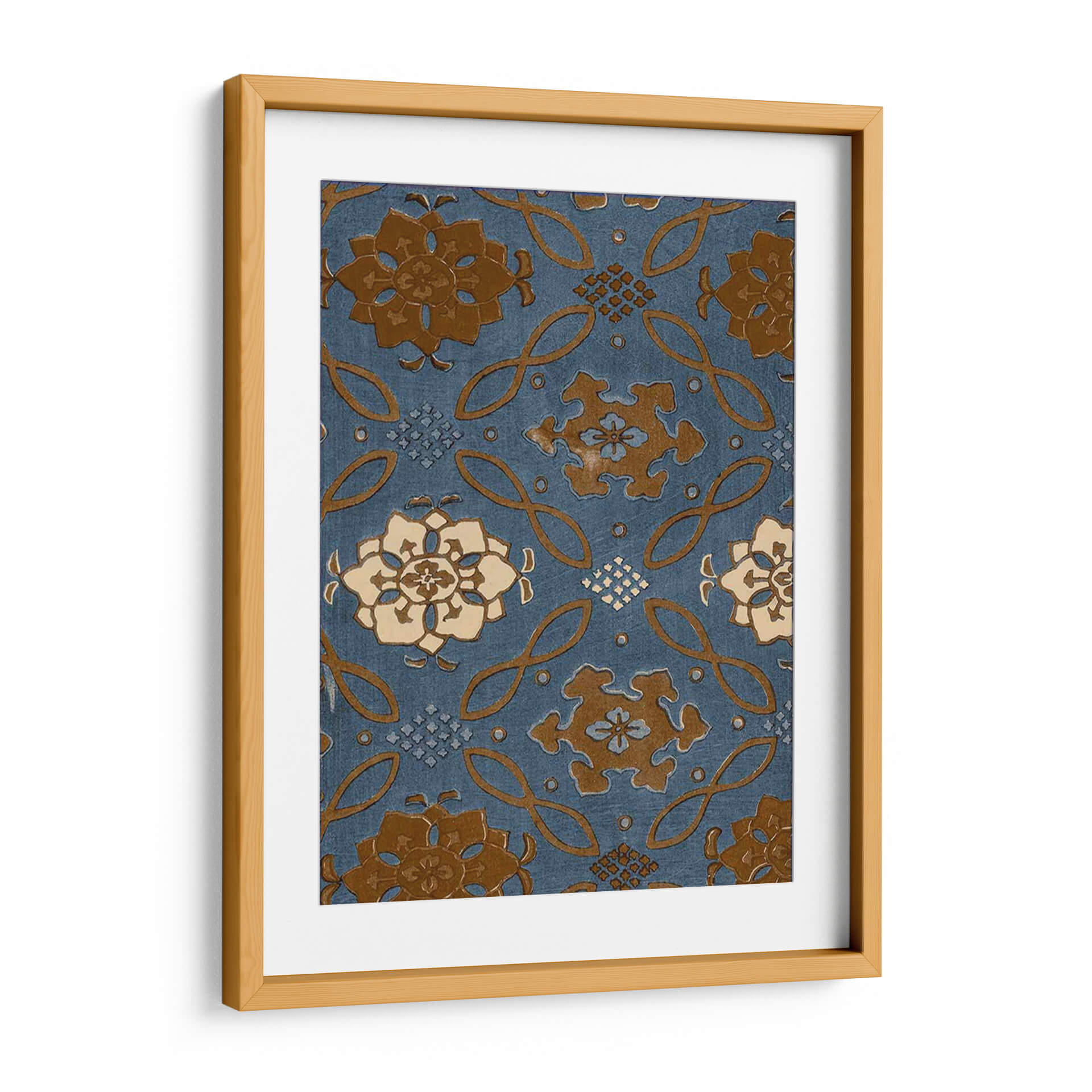 Sumérgete en la elegancia atemporal de "Patrones Japoneses V", una obra de arte que evoca la rica tradición estética de Japón con un toque contemporáneo. Este cuadro decorativo presenta un intrincado diseño de motivos florales y formas geométricas entrelazadas, ejecutado en una paleta de colores serena y sofisticada. Los tonos azules profundos actúan como telón de fondo, sobre los cuales destacan patrones en tonos ocre y crema, creando un contraste visual armonioso y llamativo. La composición, inspirada en el arte textil y la artesanía japonesa, transmite una sensación de orden, equilibrio y refinamiento. Cada elemento está cuidadosamente dispuesto, generando un ritmo visual que cautiva la mirada y invita a la contemplación. Es una pieza ideal para añadir un toque de distinción y calma a cualquier espacio, desde una sala de estar moderna hasta un sereno rincón de meditación en tu hogar u oficina. "Patrones Japoneses V" no es solo una decoración, sino una ventana a la belleza serena y la profundidad cultural, perfecta para quienes aprecian el diseño y la historia en su entorno. Transforma tu pared en una obra de arte que narra historias de tradición y estilo.