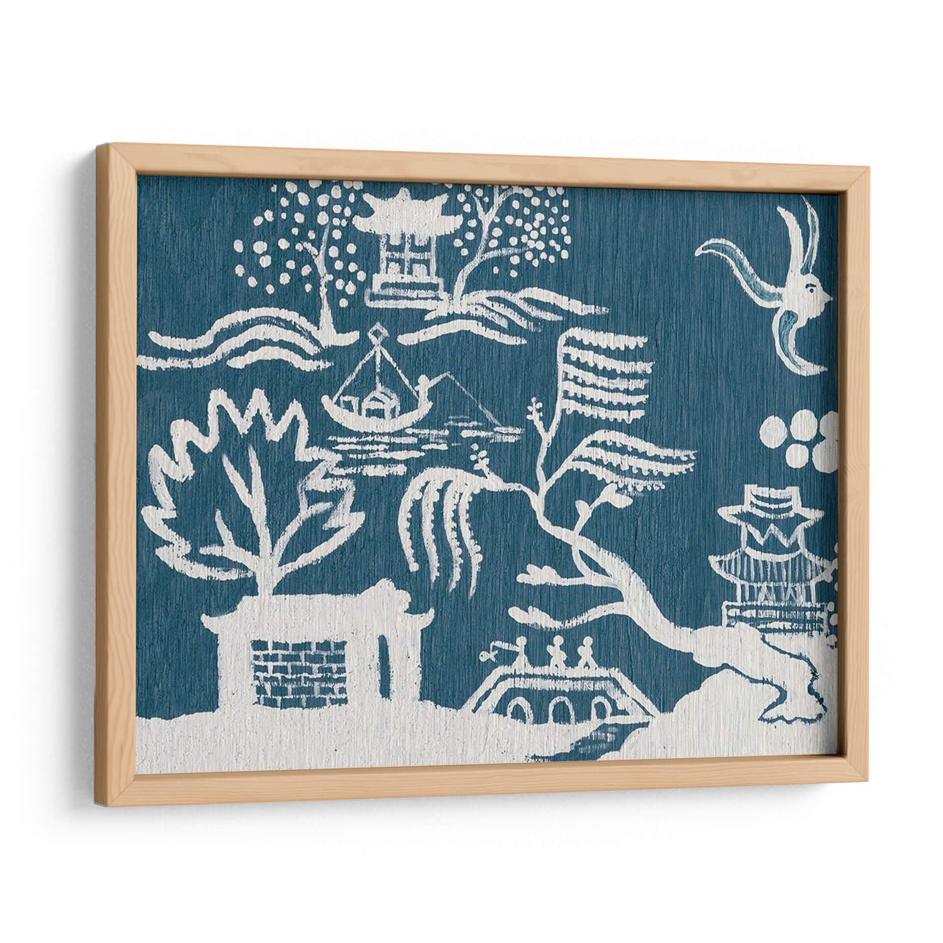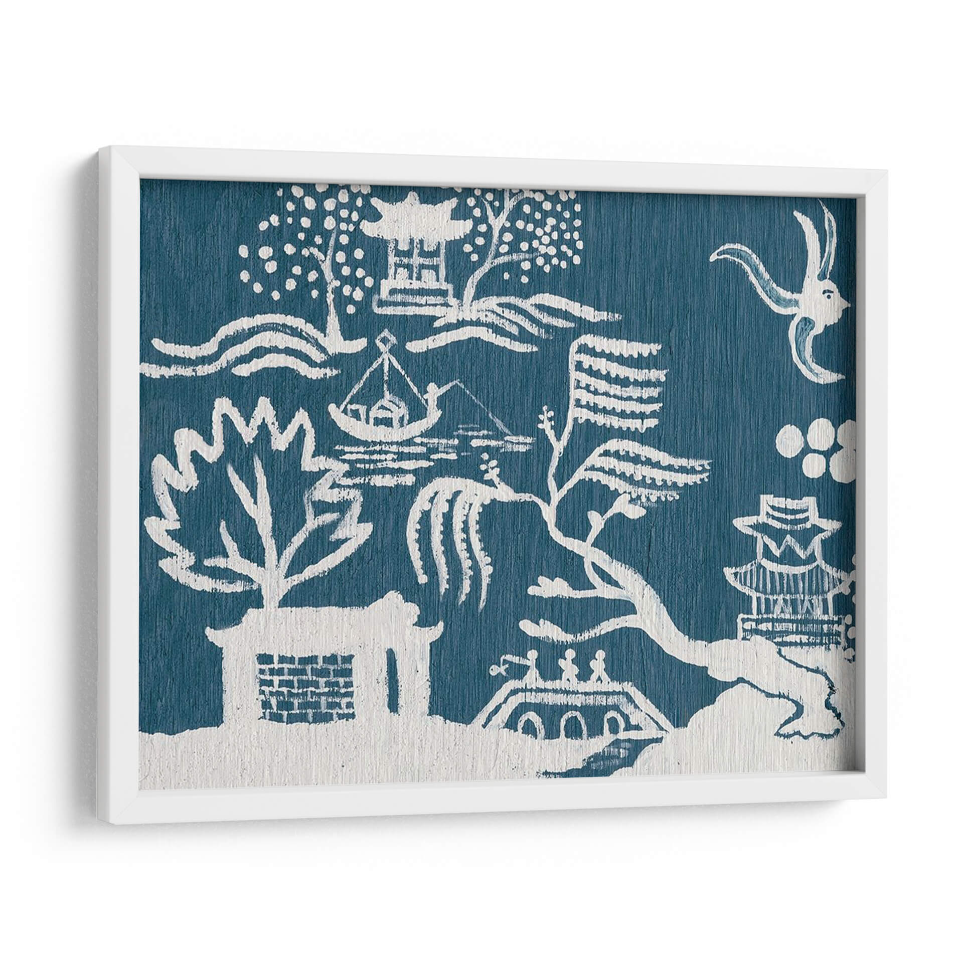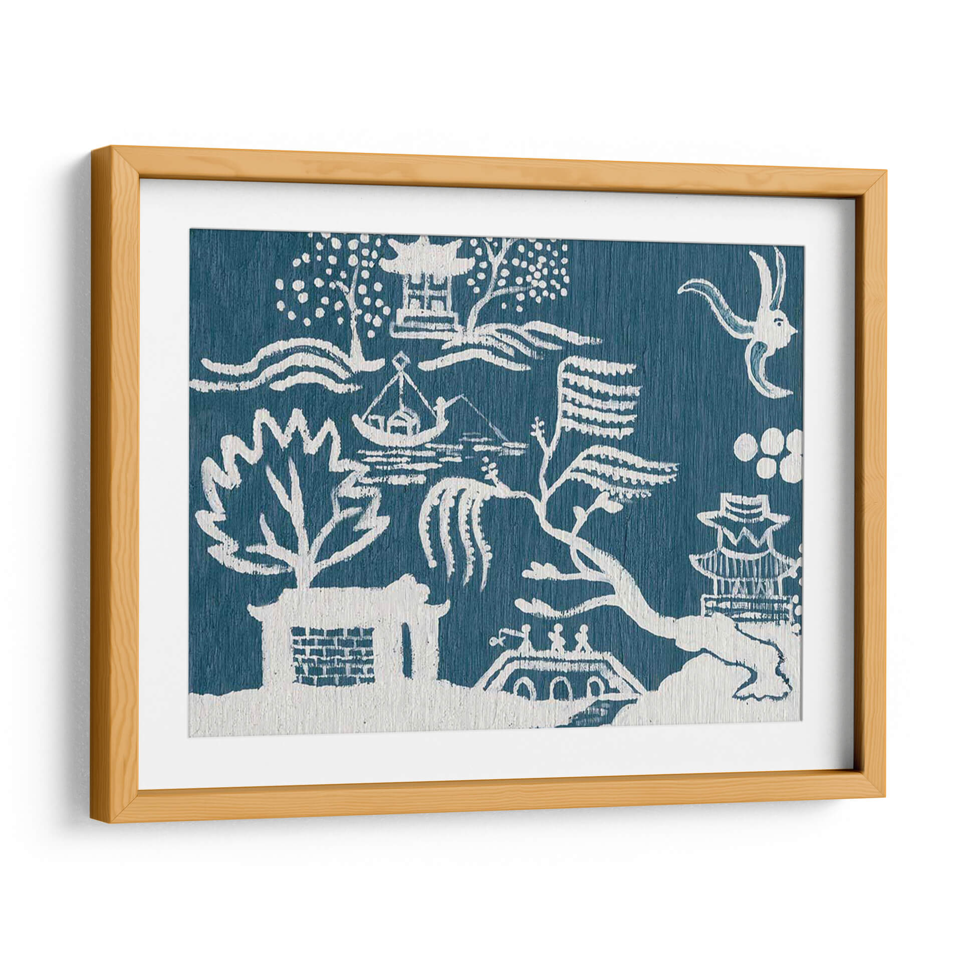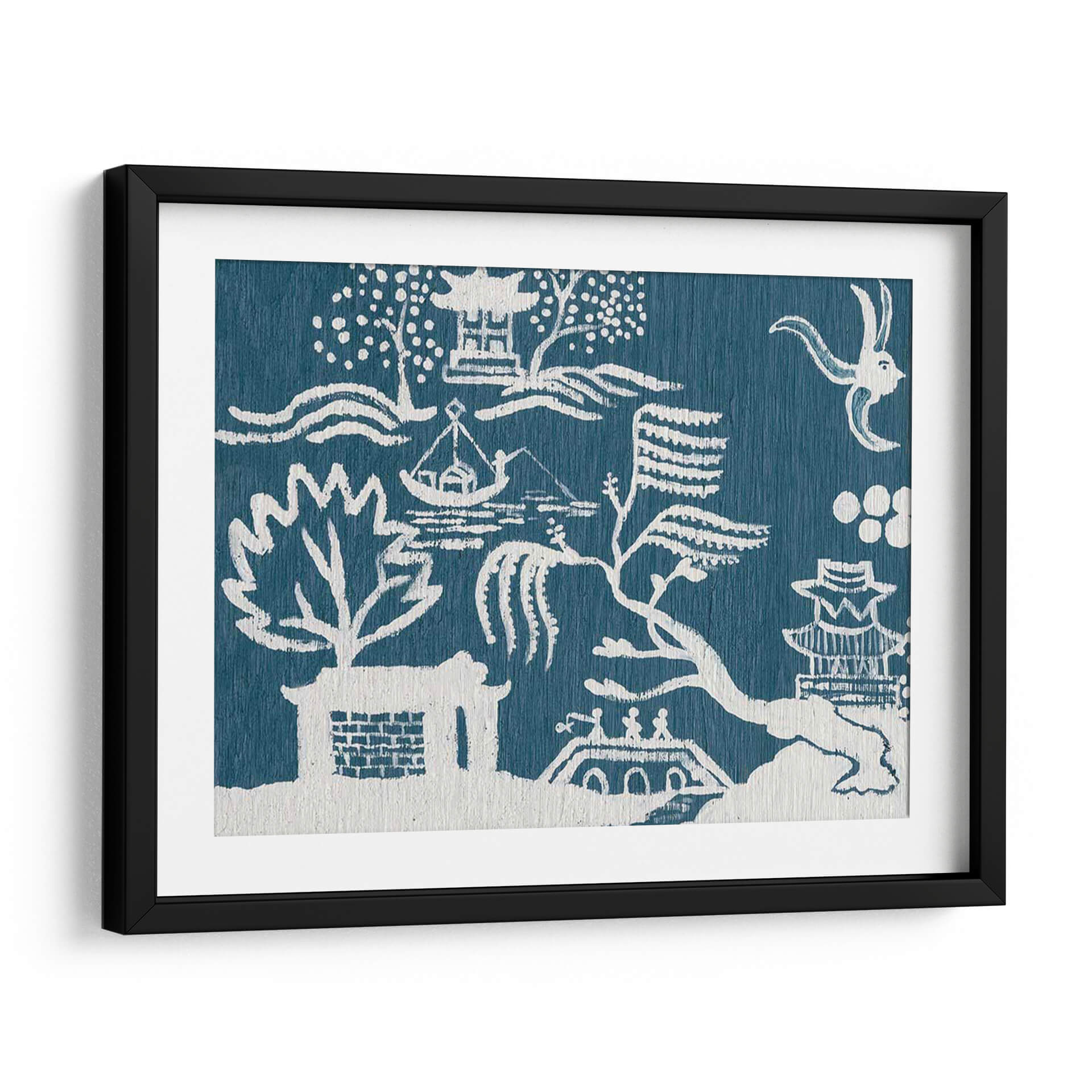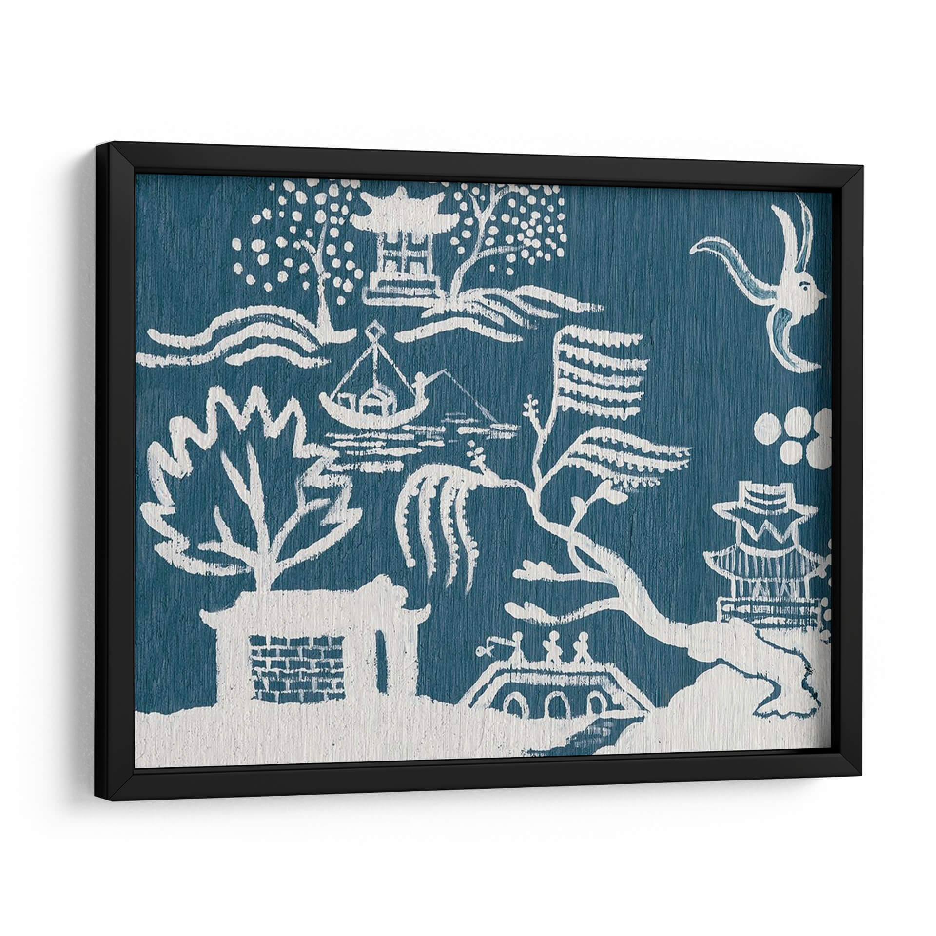 Sumérgete en la serenidad y el encanto de 'Sala De Té I', una obra de arte de Alicia Ludwig que transporta tu espacio a un oasis de tranquilidad. Este cuadro decorativo presenta un diseño inspirado en la estética oriental, con siluetas blancas sobre un vibrante fondo azul cobalto. La composición evoca un paisaje sereno con elementos arquitectónicos tradicionales como pagodas y puentes, árboles estilizados y un bote navegando en aguas tranquilas. Cada detalle está representado con un trazo delicado pero definido, creando una sensación de calma y armonía. Los colores contrastantes de azul profundo y blanco puro generan un impacto visual equilibrado, ideal para añadir un toque de sofisticación y paz a cualquier habitación. Perfecto para salas de estar, dormitorios o estudios, este cuadro decorativo es una invitación a la contemplación y al disfrute de la belleza serena del arte asiático. Transforma tu hogar en un santuario de estilo y serenidad con esta pieza única y evocadora, diseñada para inspirar y calmar los sentidos.