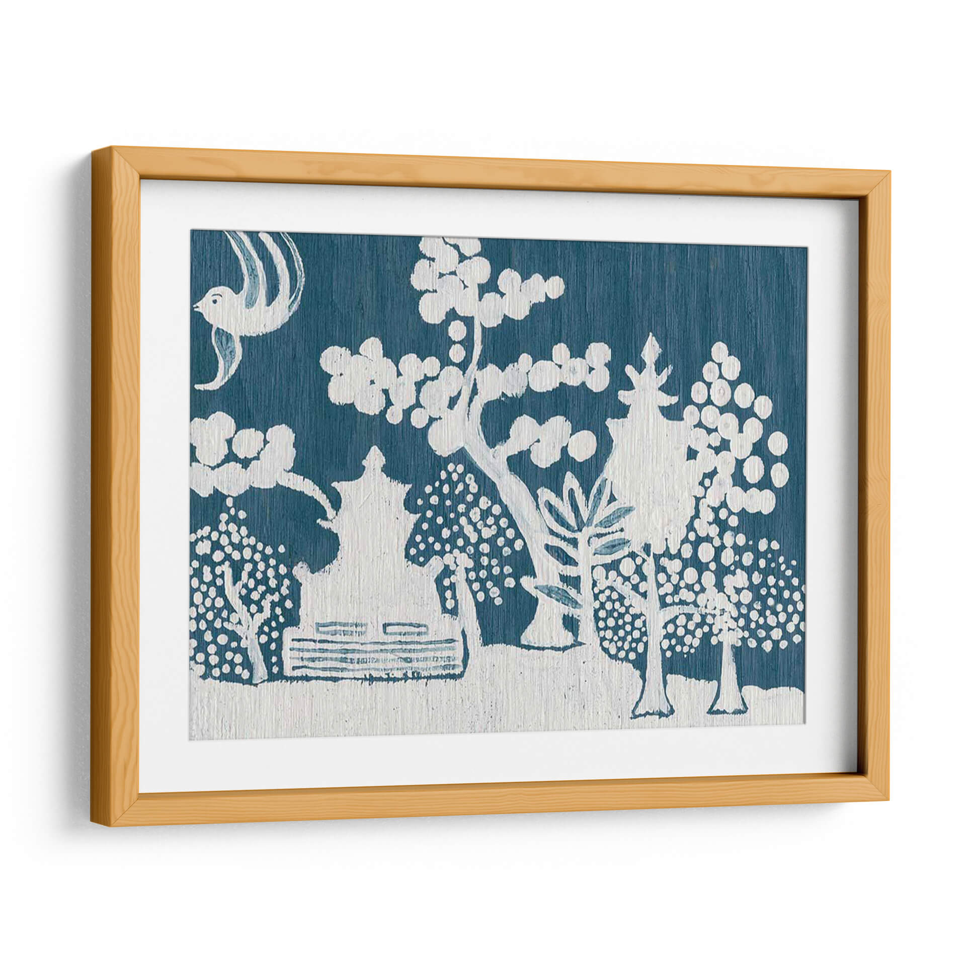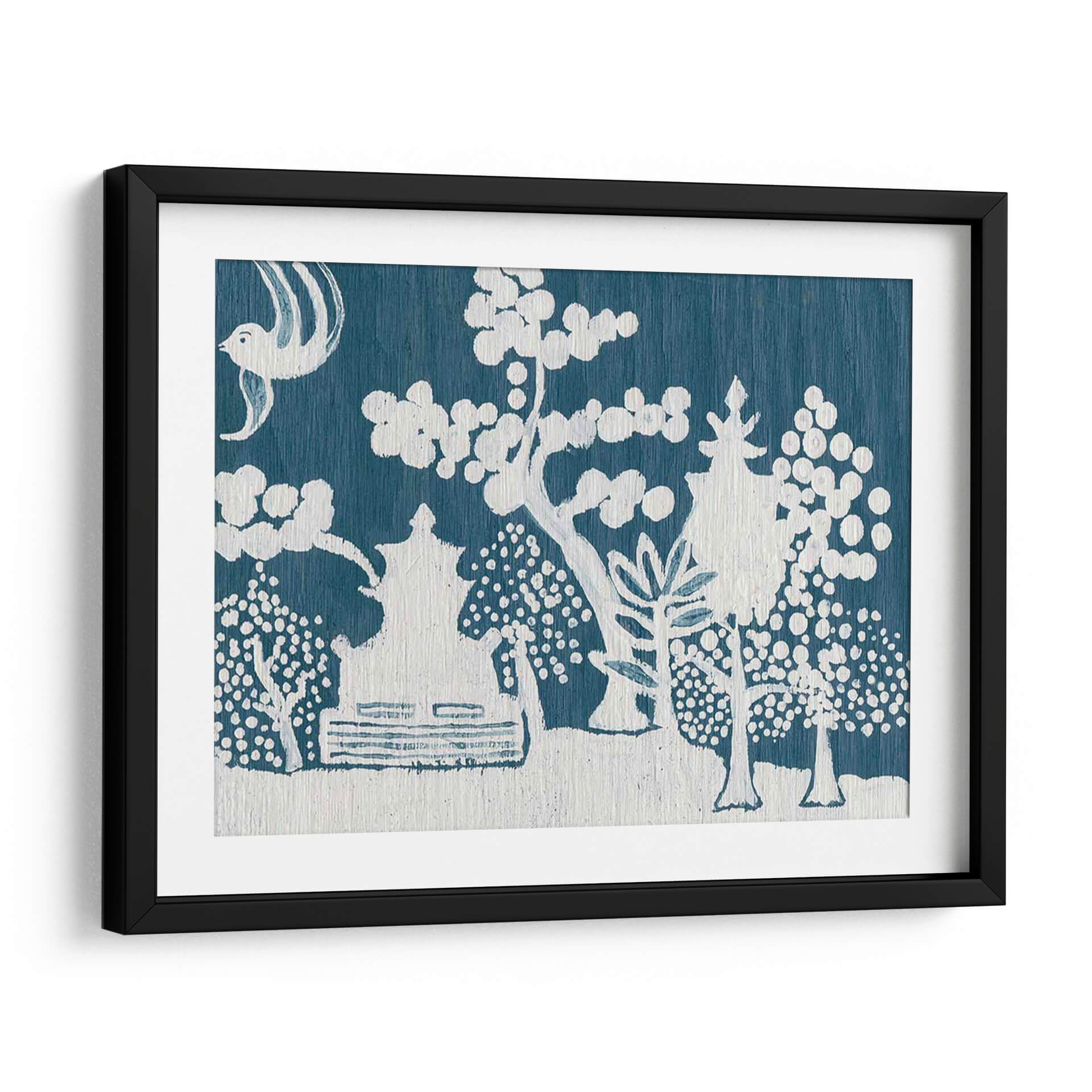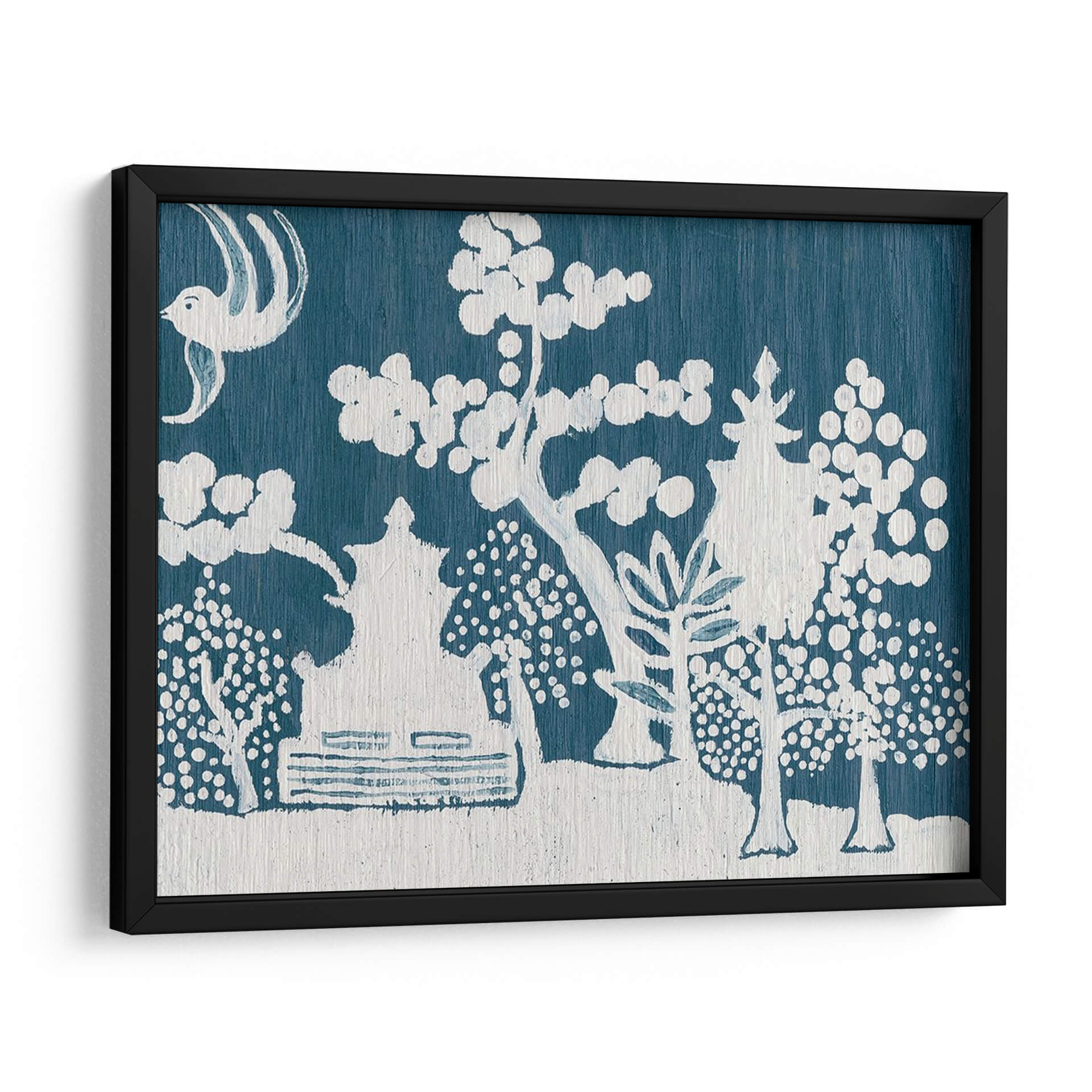 Sumérgete en la serenidad y el encanto de "Sala De Té Ii", una obra de arte de Alicia Ludwig que evoca la tranquilidad de un jardín oriental. Este cuadro decorativo, con su distintiva paleta de azules profundos y blancos puros, crea una atmósfera de calma y sofisticación. La composición presenta elementos estilizados de la naturaleza, incluyendo árboles frondosos con follaje puntillista, estructuras arquitectónicas que sugieren pabellones de té, y un delicado pájaro en vuelo, todo ello renderizado con un estilo que recuerda a las técnicas de impresión tradicionales o al arte de papel cortado. La simplicidad de las formas y la fuerte contraposición de colores aportan un toque moderno y atemporal a esta pieza. Ideal para añadir un acento de paz y elegancia a tu sala de estar, dormitorio o estudio, "Sala De Té Ii" es una invitación a la contemplación y al disfrute de la belleza serena. Su diseño versátil se integra perfectamente en decoraciones contemporáneas, minimalistas o de inspiración asiática, convirtiéndose en un punto focal que inspira relajación y bienestar en cualquier espacio. Descubre cómo este cuadro puede transformar tu hogar en un oasis de tranquilidad.
