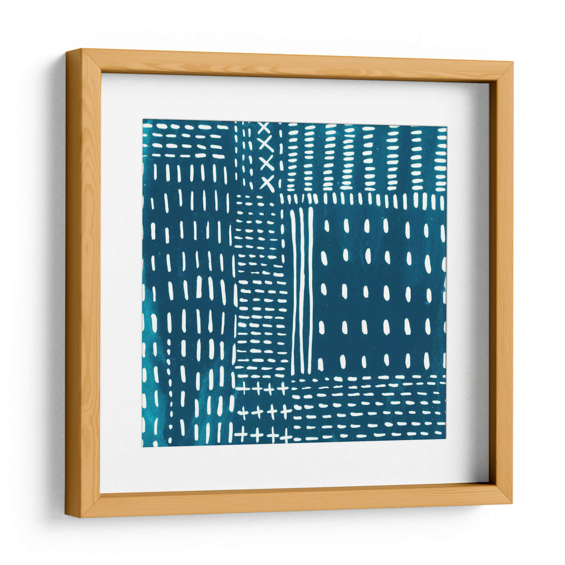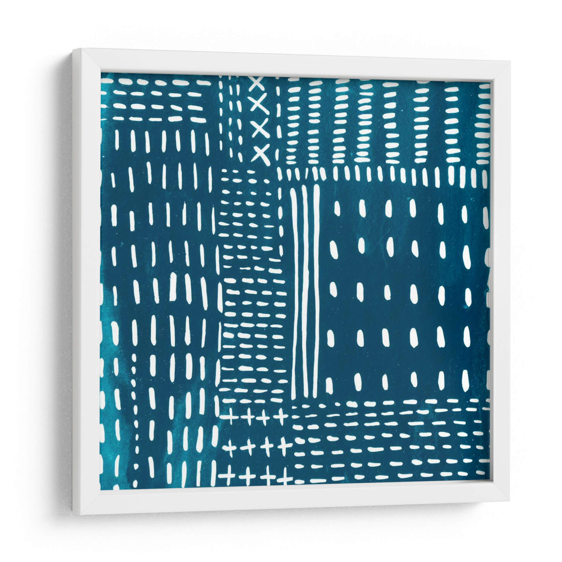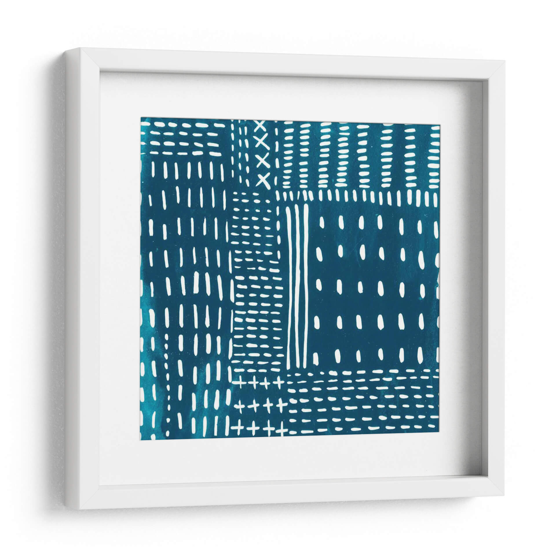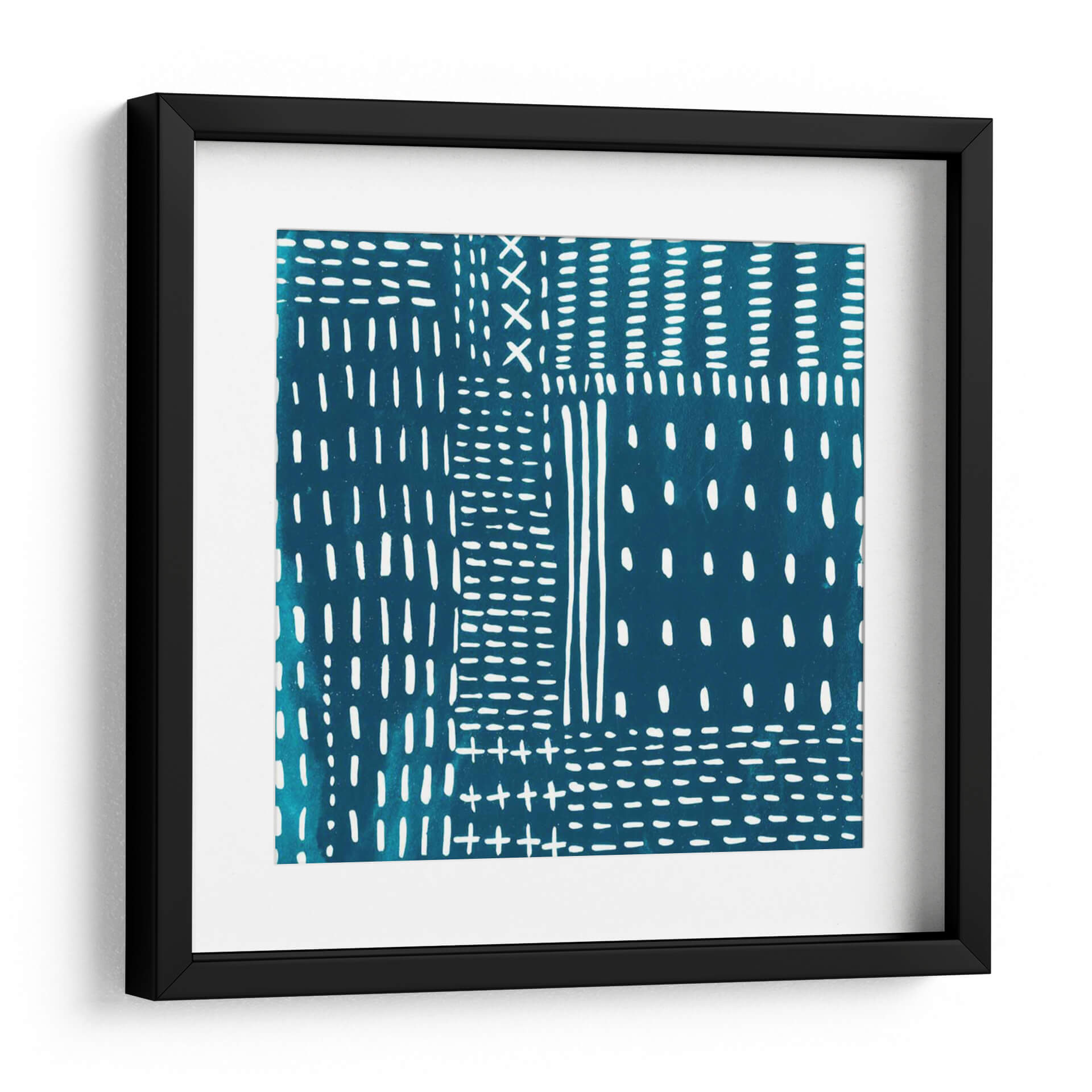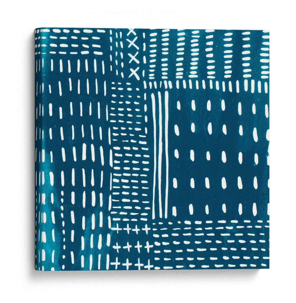 Sumérgete en la serenidad y el orden visual con "Sashiko Stitches III", una obra de arte abstracto que evoca la tranquilidad de las puntadas tradicionales japonesas. Este cuadro decorativo presenta un cautivador patrón de líneas y puntos en blanco sobre un profundo y rico fondo azul índigo, creando un contraste dinámico y a la vez armonioso. La composición se divide en bloques, cada uno con un tratamiento único de "puntadas", que van desde líneas verticales paralelas y agrupaciones de puntos hasta cruces estilizados, imitando la estética del sashiko. Su diseño minimalista y geométrico lo convierte en una pieza versátil, ideal para añadir un toque de sofisticación y calma a cualquier espacio, ya sea una sala de estar moderna, un estudio o un dormitorio. La obra irradia una sensación de artesanía y atención al detalle, invitando a la contemplación y al disfrute de la belleza en la simplicidad. Este cuadro abstracto es perfecto para quienes buscan una decoración de pared que combine arte contemporáneo con un guiño a las tradiciones, aportando una atmósfera de paz y equilibrio.