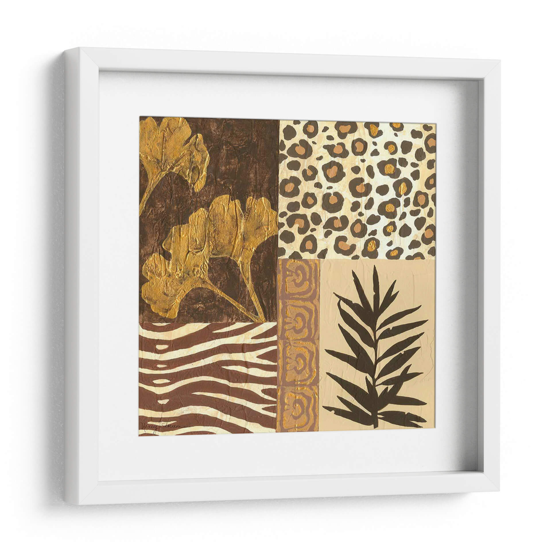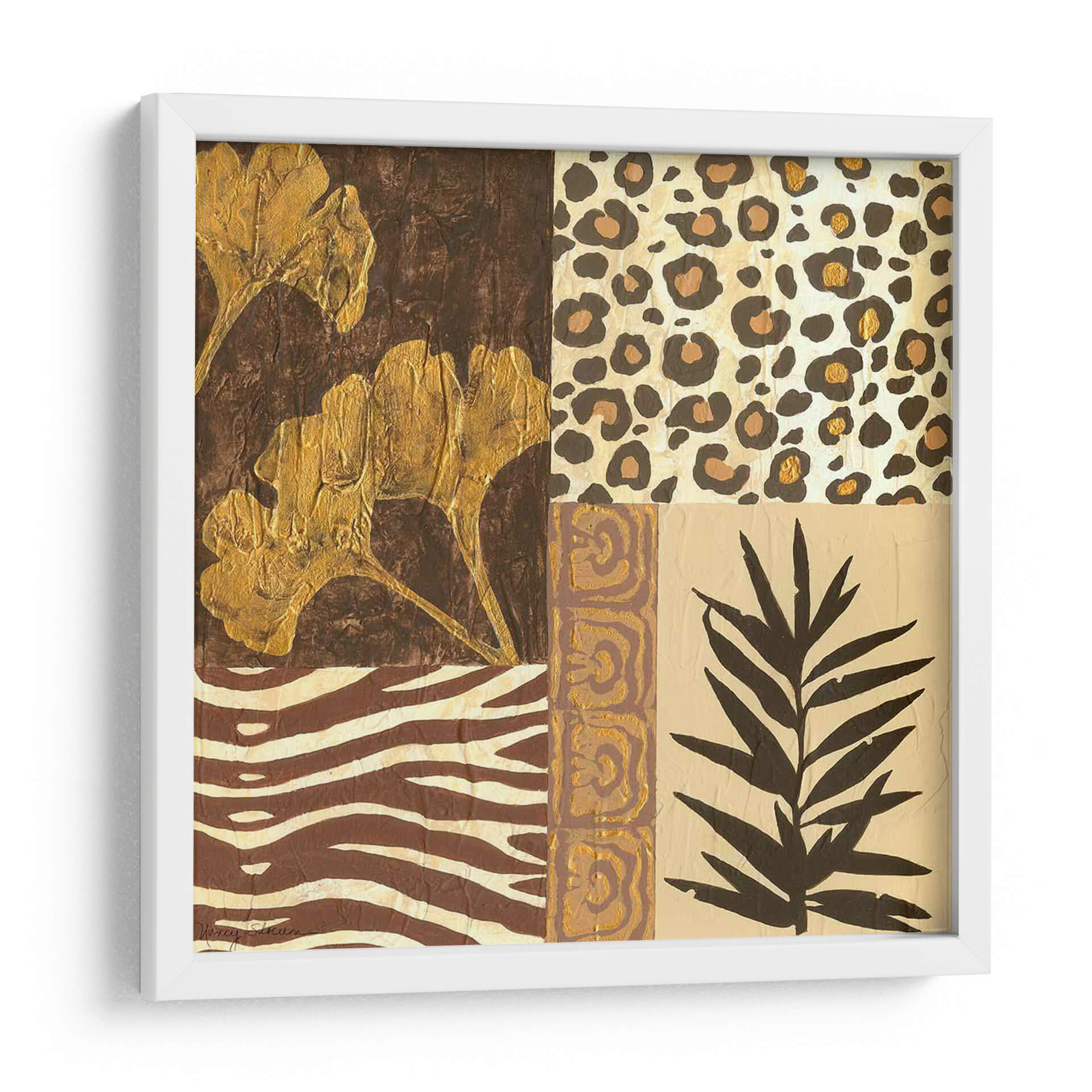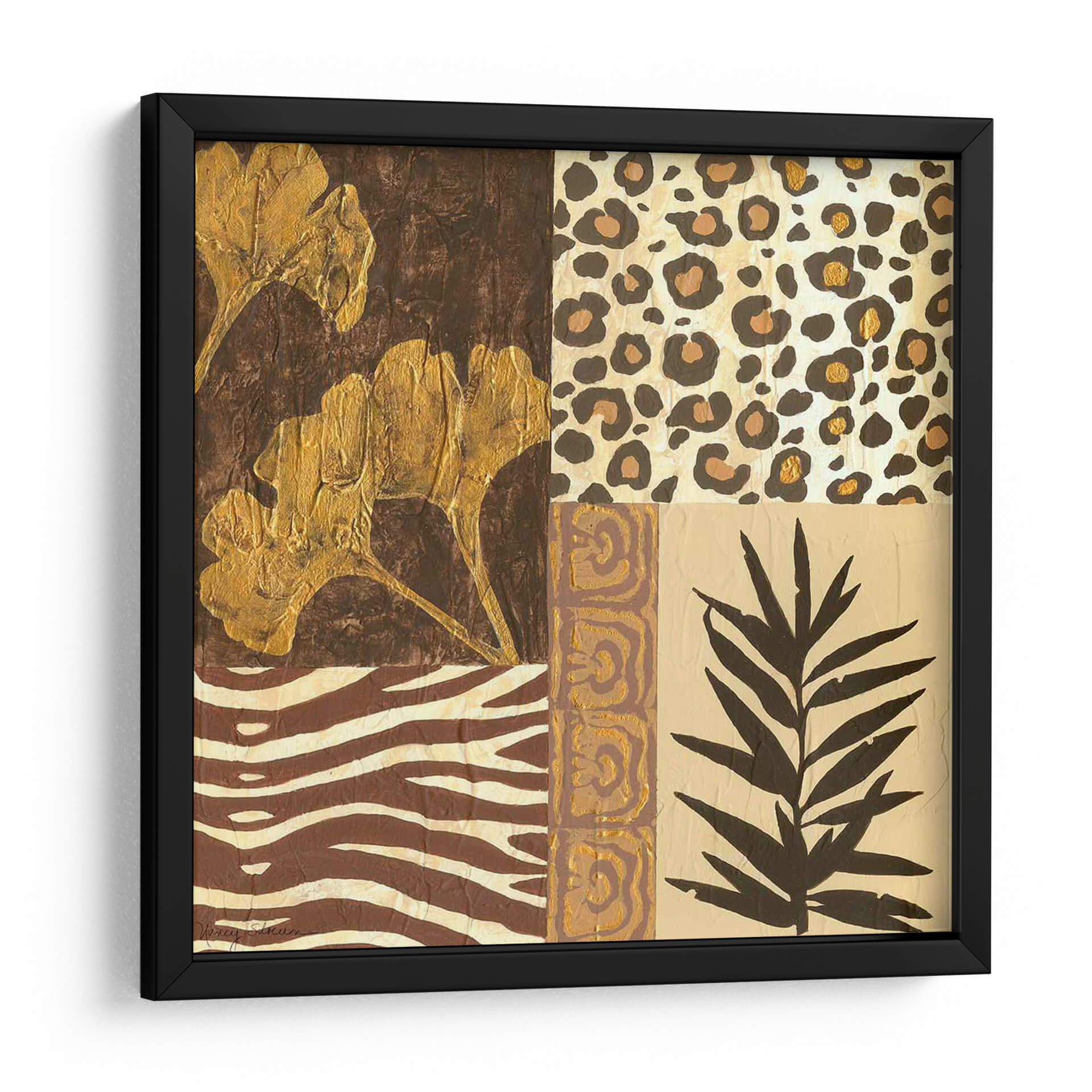 Sumérgete en la estética audaz y terrenal de 'Sofari Sofisticado II' de Nancy Slocum, una obra de arte de pared que evoca la esencia de la naturaleza salvaje con un toque de elegancia moderna. Esta pieza se estructura en un cautivador collage de texturas y patrones, presentando secciones inspiradas en la selva como la piel de leopardo, las rayas de cebra y las delicadas hojas de ginkgo en tonos dorados y marrones. La paleta de colores, dominada por cálidos tonos tierra, ocres y acentos metálicos, crea una atmósfera rica y envolvente. Cada cuadrante de la composición, desde los motivos tribales hasta la silueta de una hoja de palma, aporta una dimensión única, invitando a la contemplación y al descubrimiento. Este cuadro decorativo es ideal para añadir un toque de sofisticación exótica y un punto focal de interés visual a cualquier sala de estar, comedor o estudio. Su diseño versátil lo hace perfecto para interiores contemporáneos, rústicos o de inspiración bohemia, aportando carácter y una conexión con la naturaleza. 'Sofari Sofisticado II' no es solo una decoración, es una declaración de estilo que celebra la belleza salvaje con un refinamiento excepcional, transformando tu espacio en un santuario de diseño y sofisticación.