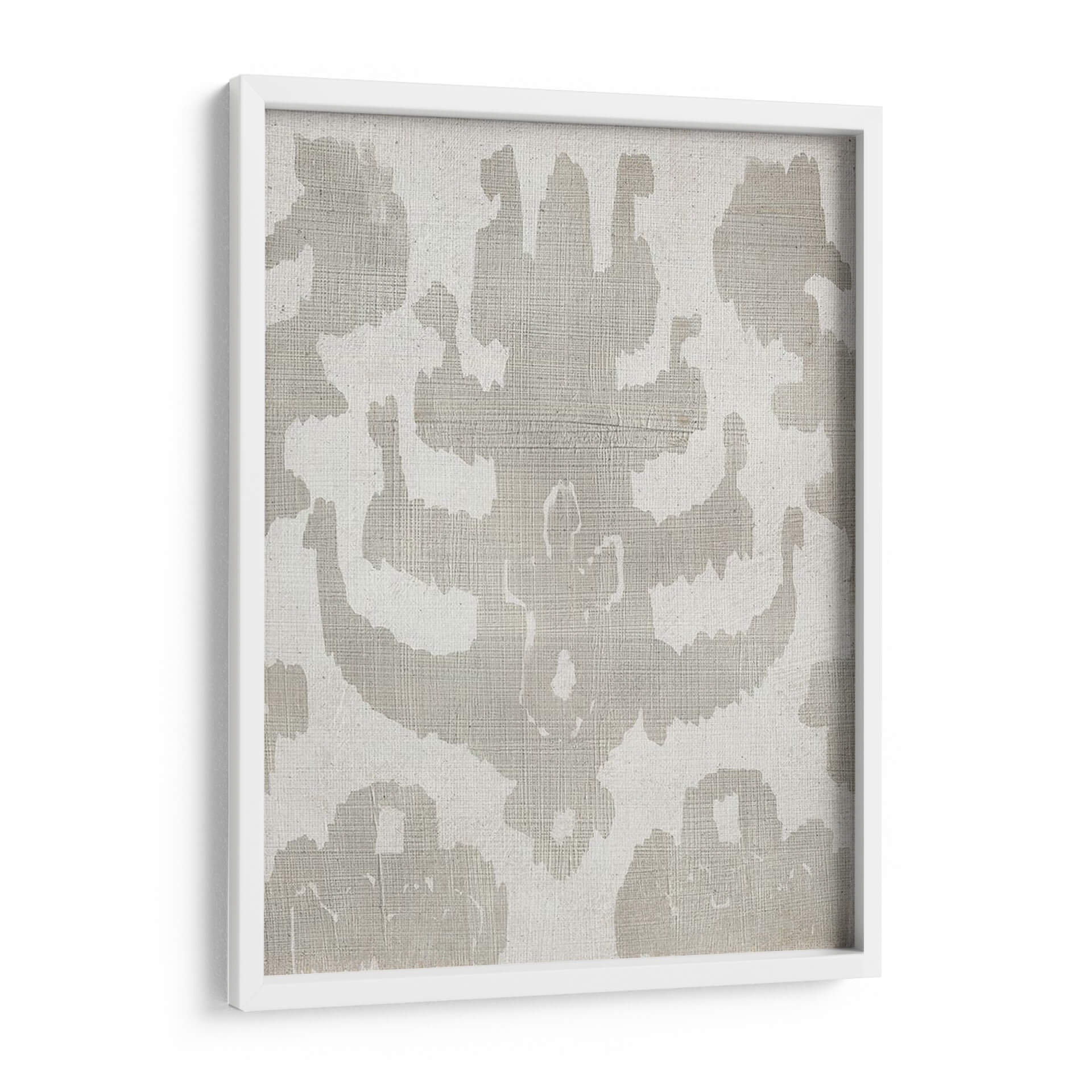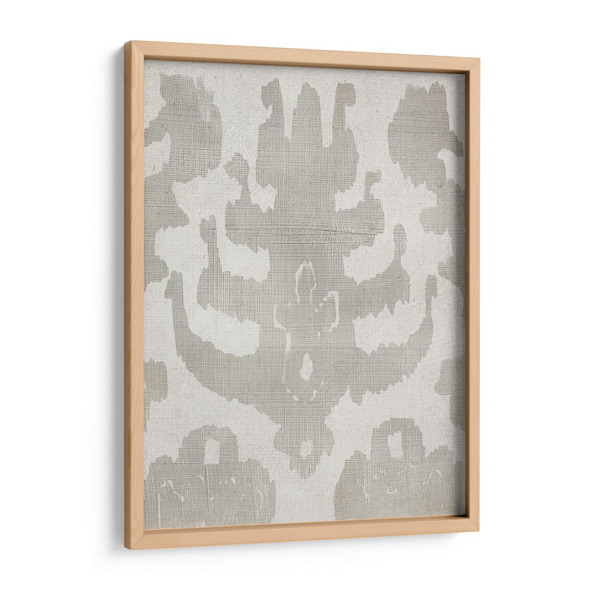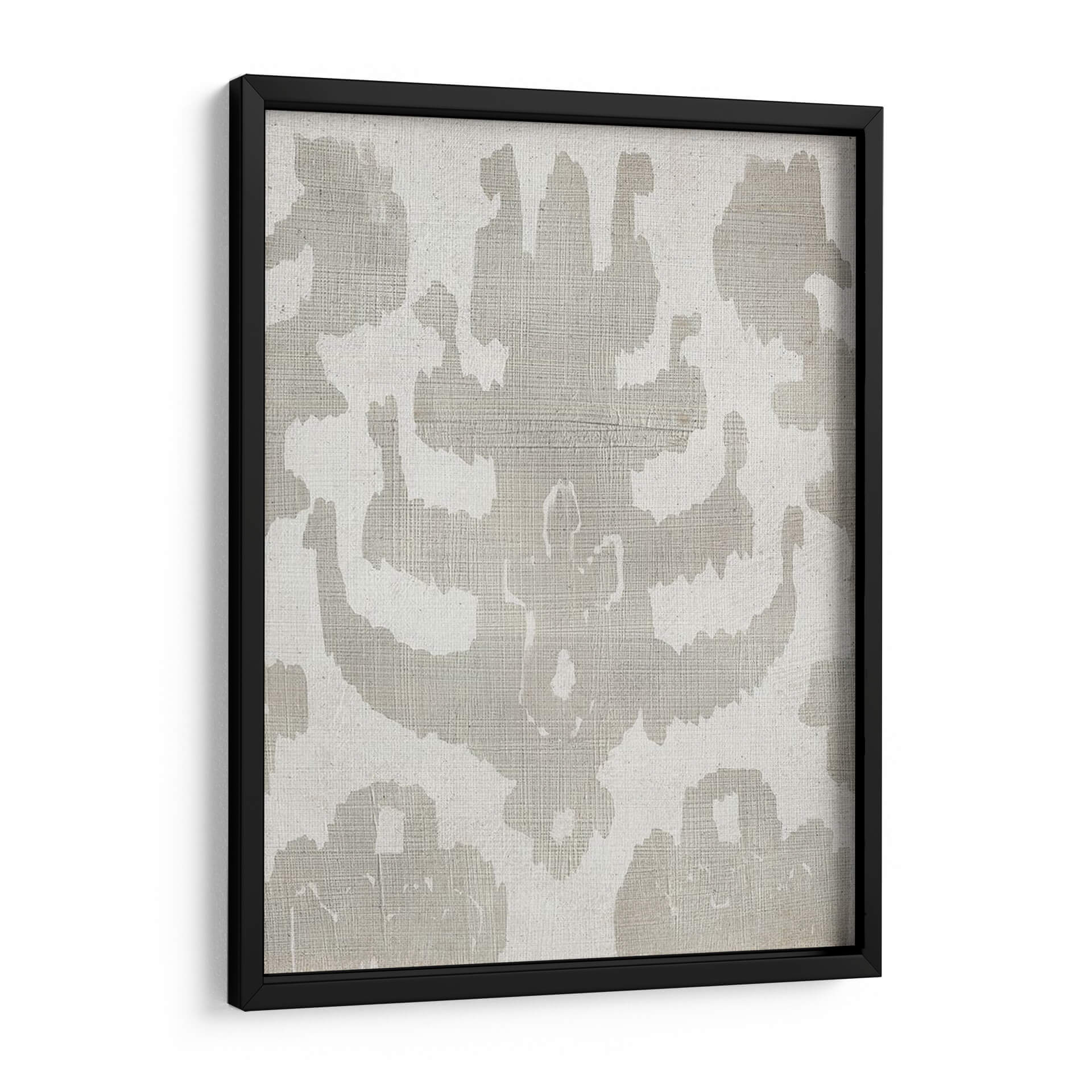 Sumérgete en la sutil elegancia de "Sombra Ikat IV", una obra de arte contemporáneo de Chariklia Zarris que redefine la serenidad y el estilo. Este cuadro decorativo presenta un patrón inspirado en la técnica Ikat, caracterizado por sus formas orgánicas y un diseño que evoca la calidez de los textiles tradicionales, pero con una ejecución moderna y abstracta. La paleta de colores neutros, dominada por tonos beige y grises suaves sobre un fondo texturizado que simula el lino, crea una atmósfera de calma y sofisticación, perfecta para cualquier espacio que busque un toque de refinamiento discreto. La composición, con sus siluetas fluidas y contornos difuminados, invita a la contemplación y añade profundidad visual sin abrumar. Es la pieza ideal para complementar una decoración minimalista, bohemia o escandinava, aportando una textura visual intrigante y un aire de tranquilidad. Este cuadro abstracto es más que una simple decoración; es una invitación a la paz interior y al aprecio por la belleza en sus formas más puras. Añade una dimensión de elegancia atemporal a tu hogar u oficina con esta exquisita creación artística.