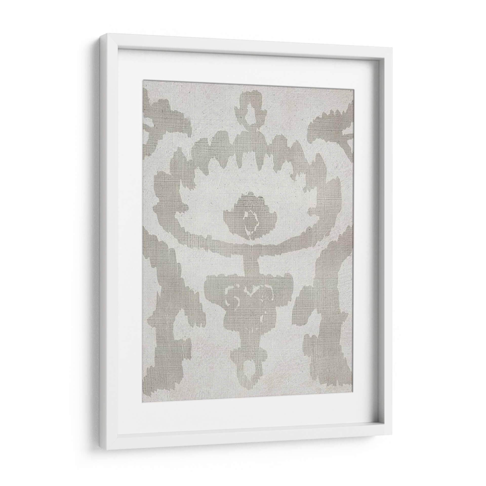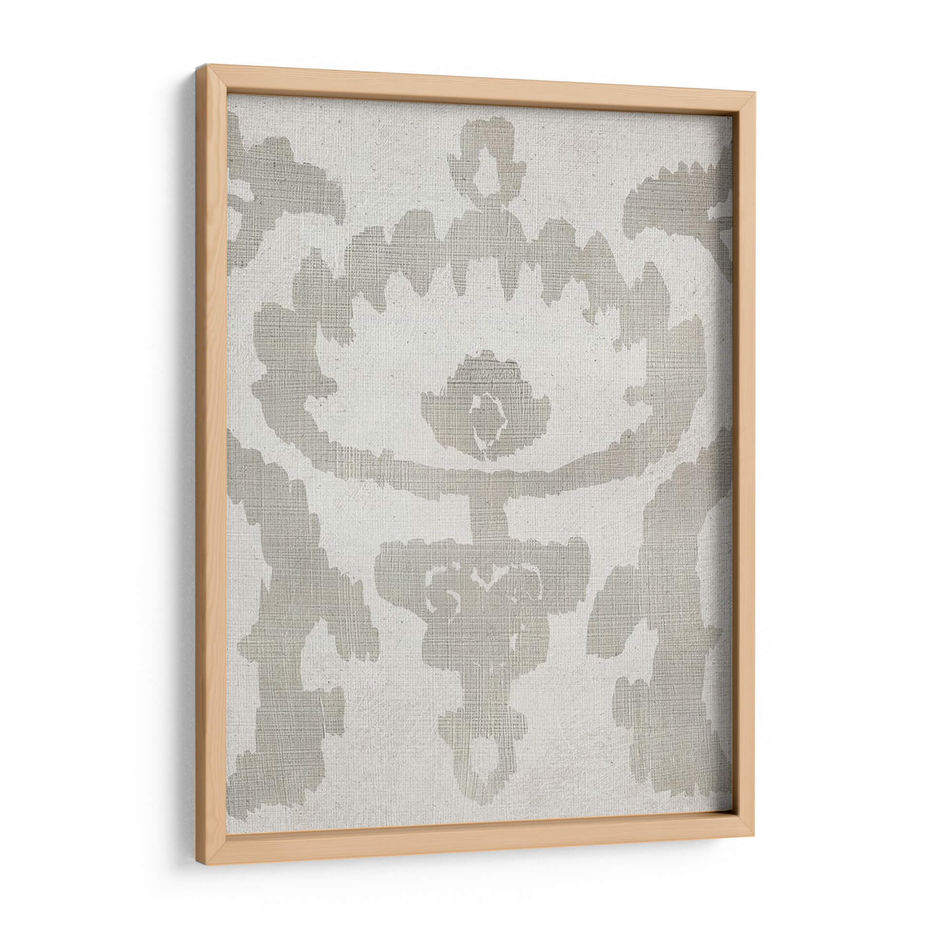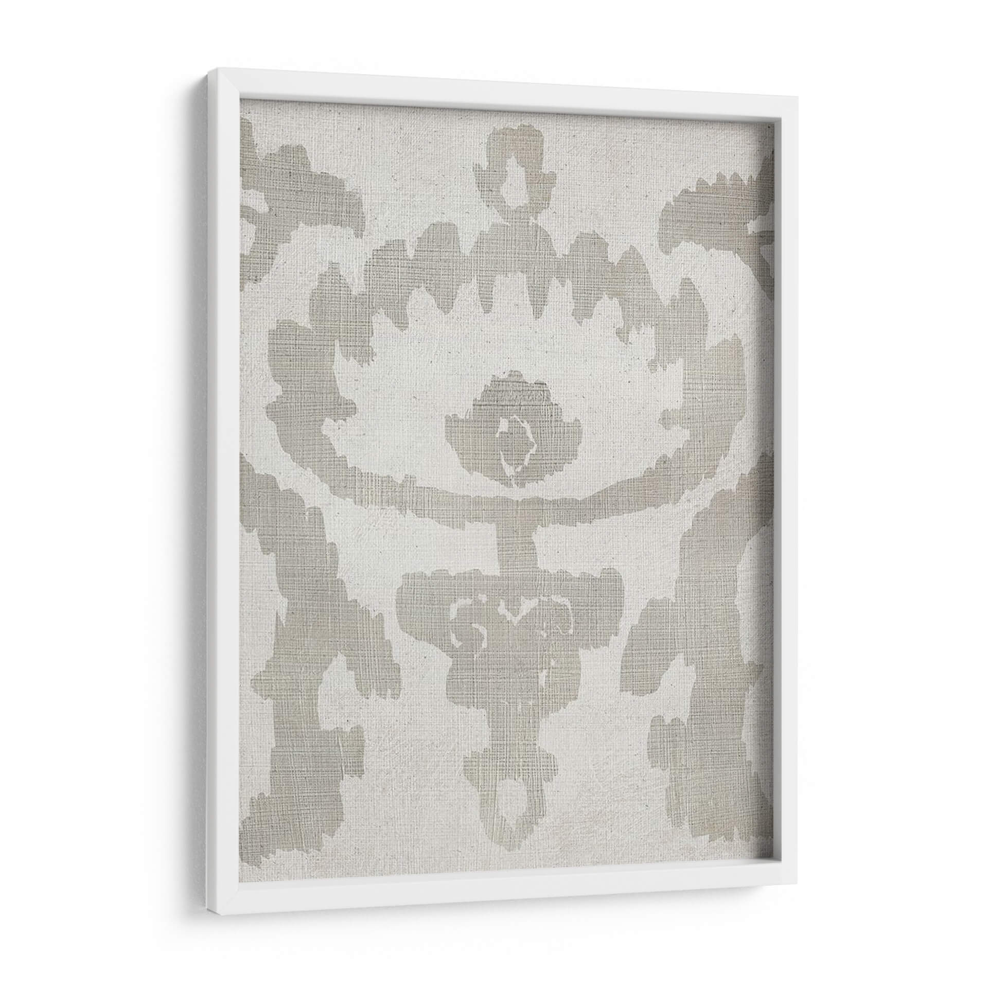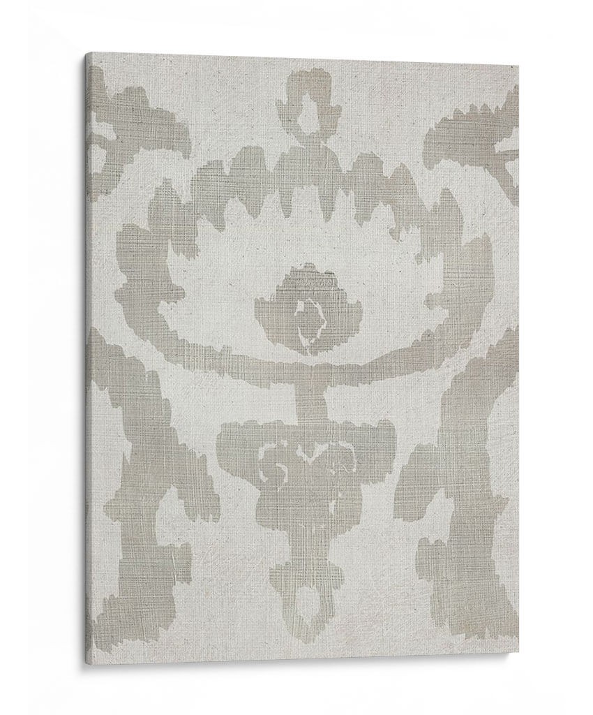 Sumérgete en la serenidad y el estilo atemporal con "Sombra Ikat Vi", una obra de arte abstracta que redefine la elegancia en tu hogar u oficina. Este cuadro decorativo, creado por Chariklia Zarris, presenta un intrincado patrón inspirado en la técnica ikat, ejecutado con una paleta de colores neutros y sofisticados. El diseño se caracteriza por sus formas orgánicas y fluidas, que evocan una sensación de calma y equilibrio, contrastando suavemente sobre un fondo texturizado que añade profundidad y calidez. La composición simétrica y el uso de tonos tierra, principalmente grises suaves y blancos crudos, hacen de esta pieza una adición versátil que complementa una amplia gama de estilos decorativos, desde el minimalista y escandinavo hasta el bohemio o contemporáneo. "Sombra Ikat Vi" no es solo una pieza decorativa; es una invitación a la contemplación, perfecta para crear un punto focal sereno en tu sala de estar, un toque de sofisticación en tu dormitorio o un ambiente de concentración en tu espacio de trabajo. Añade un aire de tranquilidad y refinamiento a tus paredes con este impresionante arte abstracto.