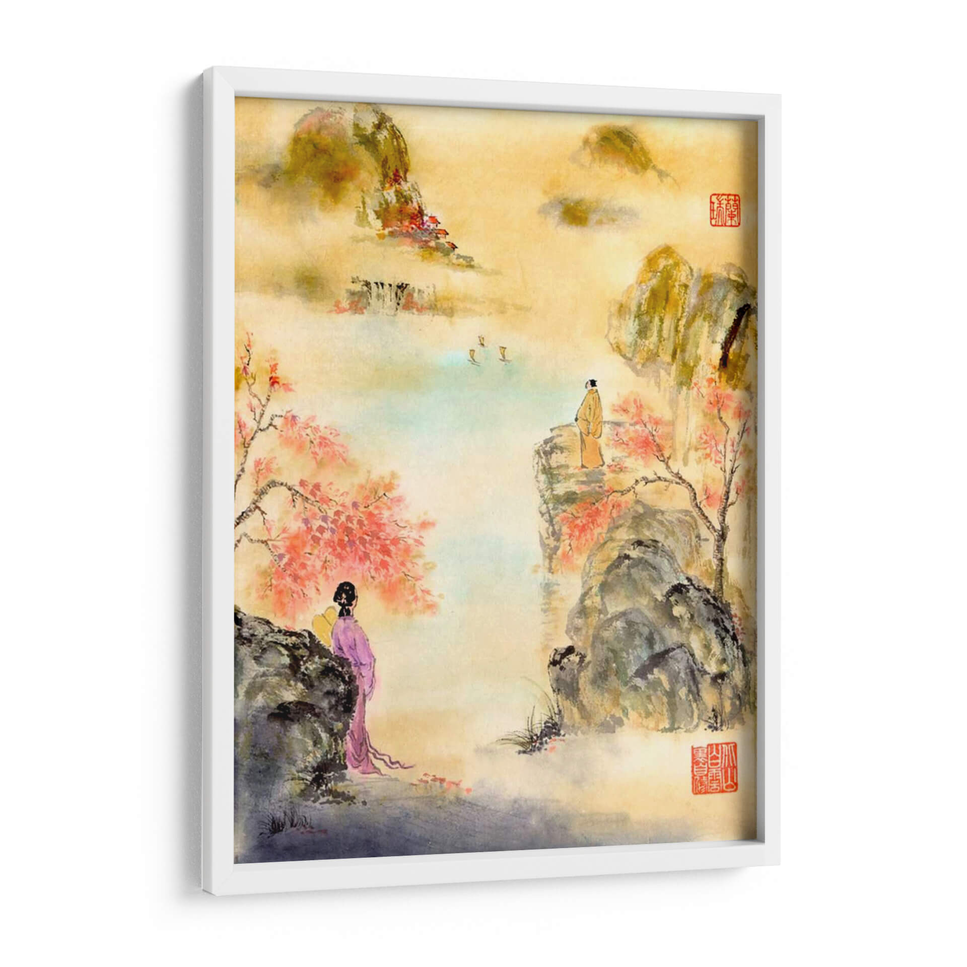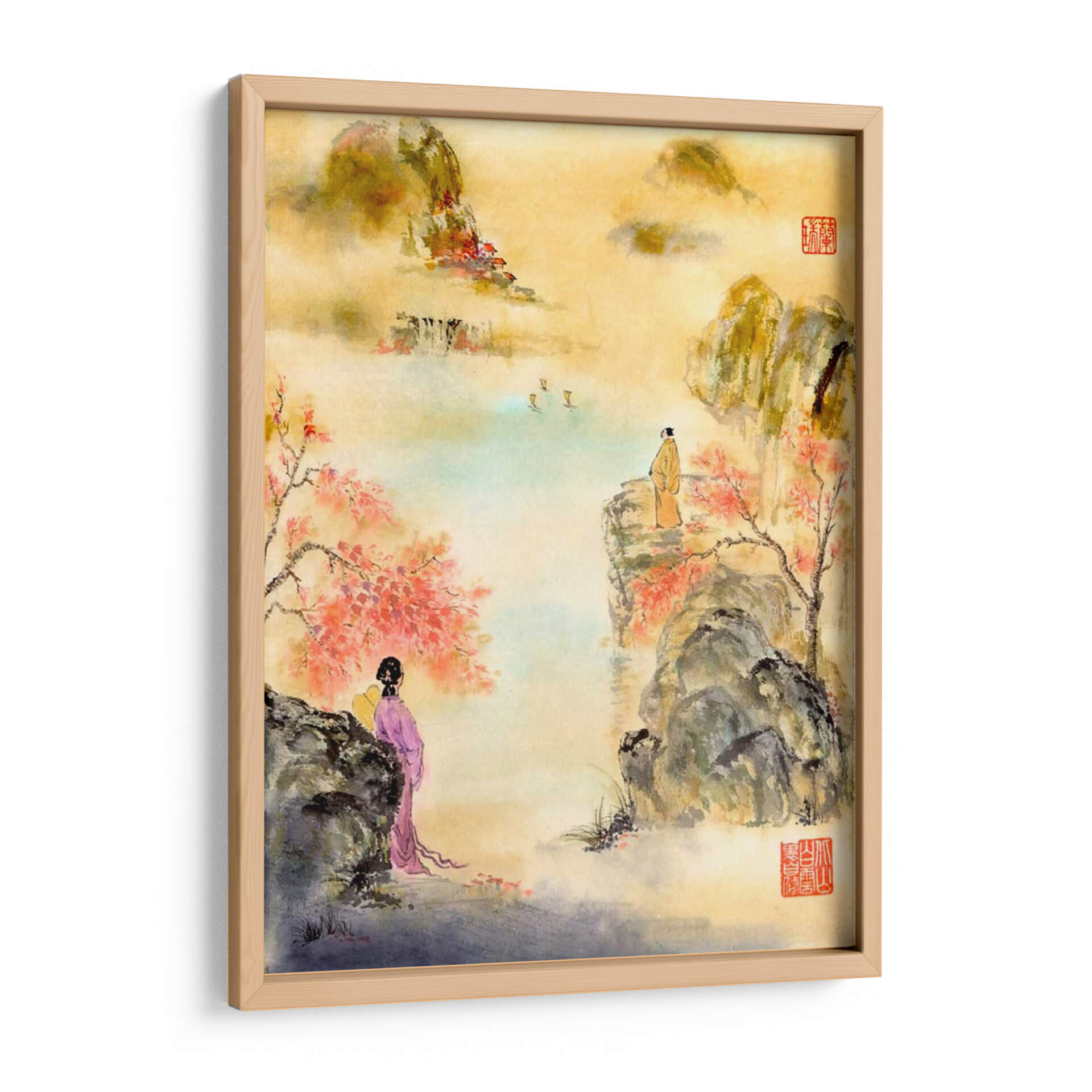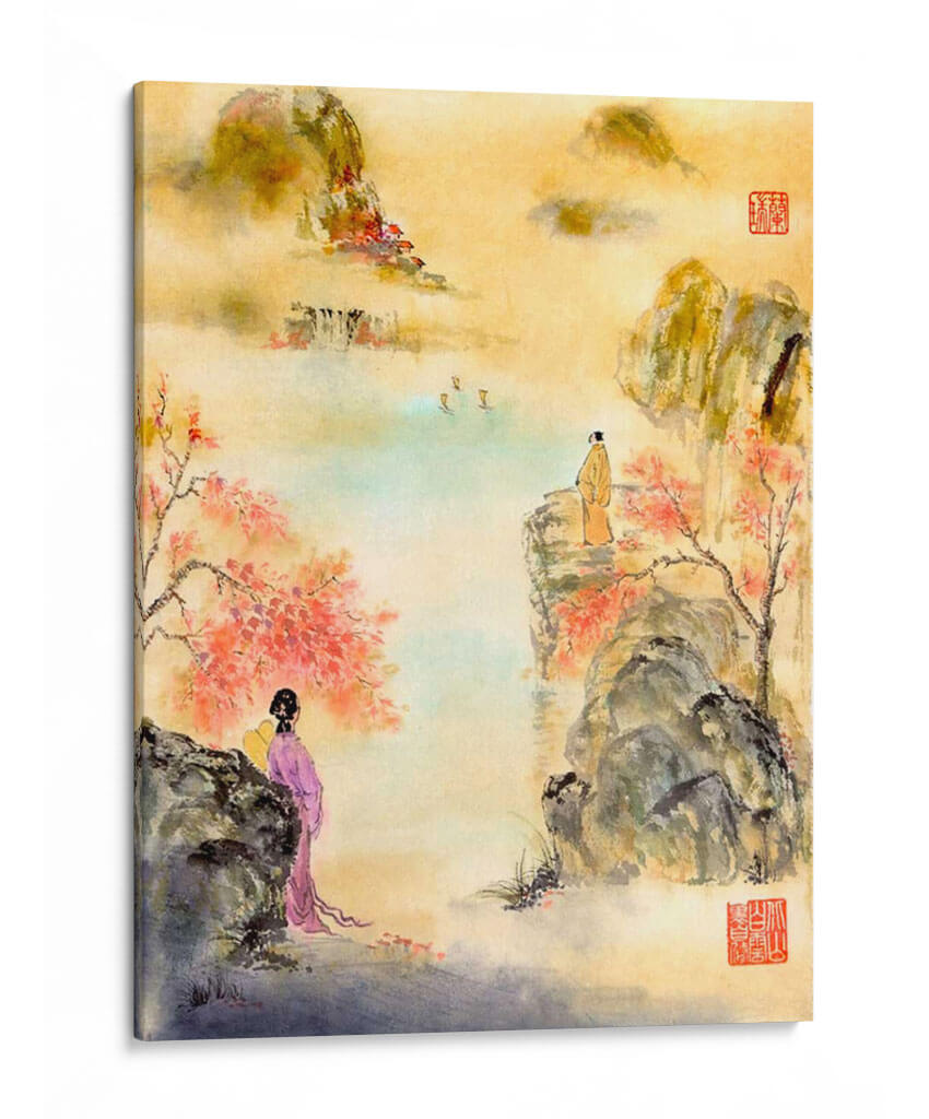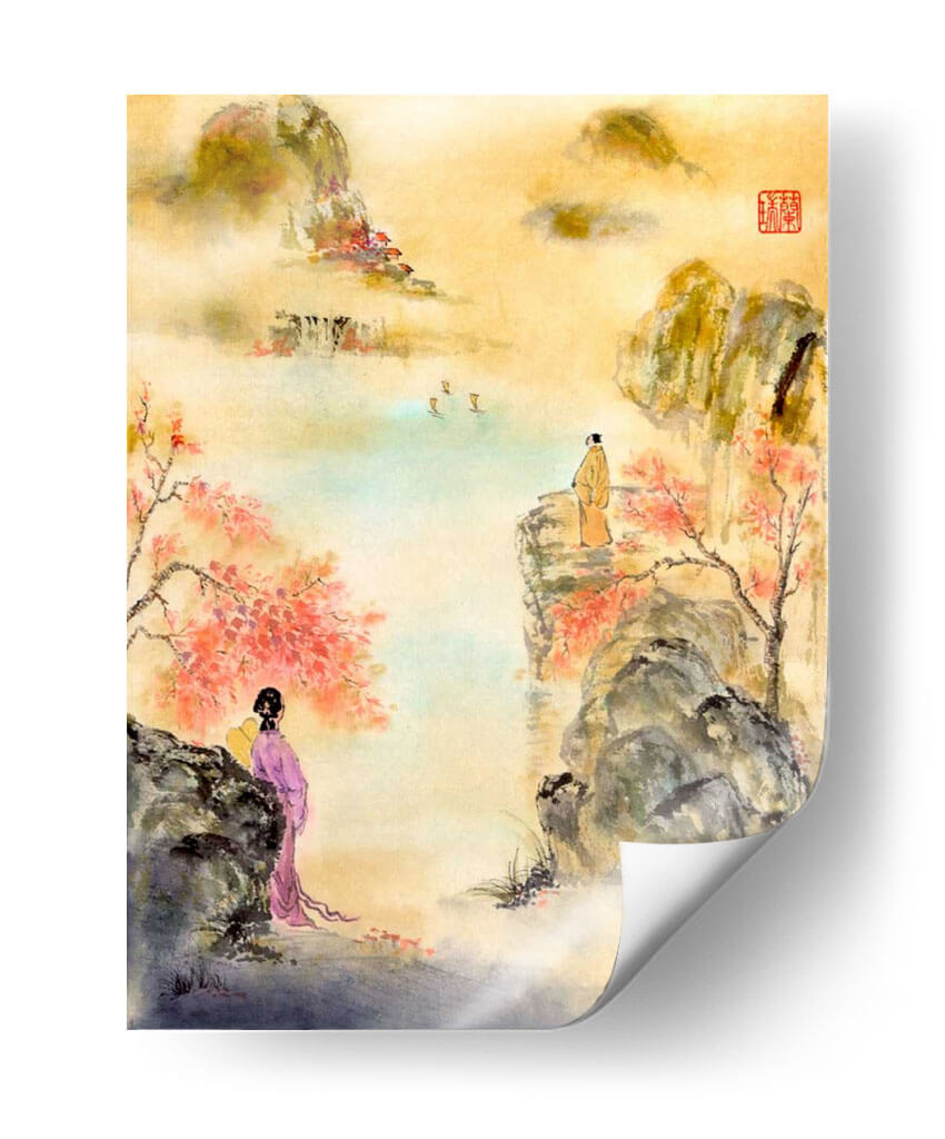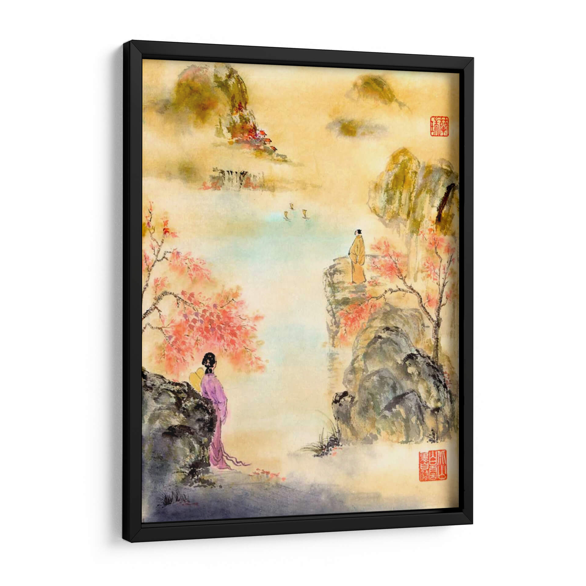 Sumérgete en la serenidad y la belleza atemporal con "Tan Cerca ... Hasta Ahora", una obra de arte que evoca la tradición y la contemplación. Esta pieza captura un momento de profunda conexión con la naturaleza, presentando dos figuras en un paisaje montañoso etéreo, envuelto en brumas doradas y acentuado por la vibrante floración de cerezos o ciruelos. La paleta de colores, dominada por tonos cálidos ocres y amarillos, se complementa con toques de verde suave y el vibrante rosa de la flora, creando una atmósfera de calma y ensueño. El estilo pictórico, inspirado en el arte oriental, utiliza trazos fluidos y una composición que invita a la reflexión sobre la distancia y la proximidad, tanto física como emocional. Cada detalle, desde las delicadas cascadas hasta las siluetas de las montañas y las imponentes formaciones rocosas, contribuye a una narrativa visual sutil pero poderosa. Este cuadro decorativo es ideal para infundir tranquilidad y un toque de sofisticación cultural en salones, estudios o dormitorios, convirtiéndose en un punto focal que inspira paz y admiración. Su estilo lo hace perfecto para complementar decoraciones asiáticas, bohemias o minimalistas.